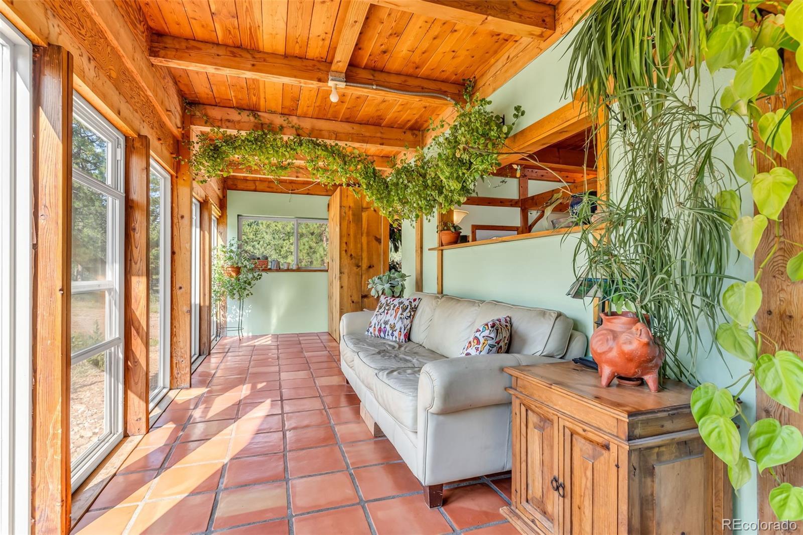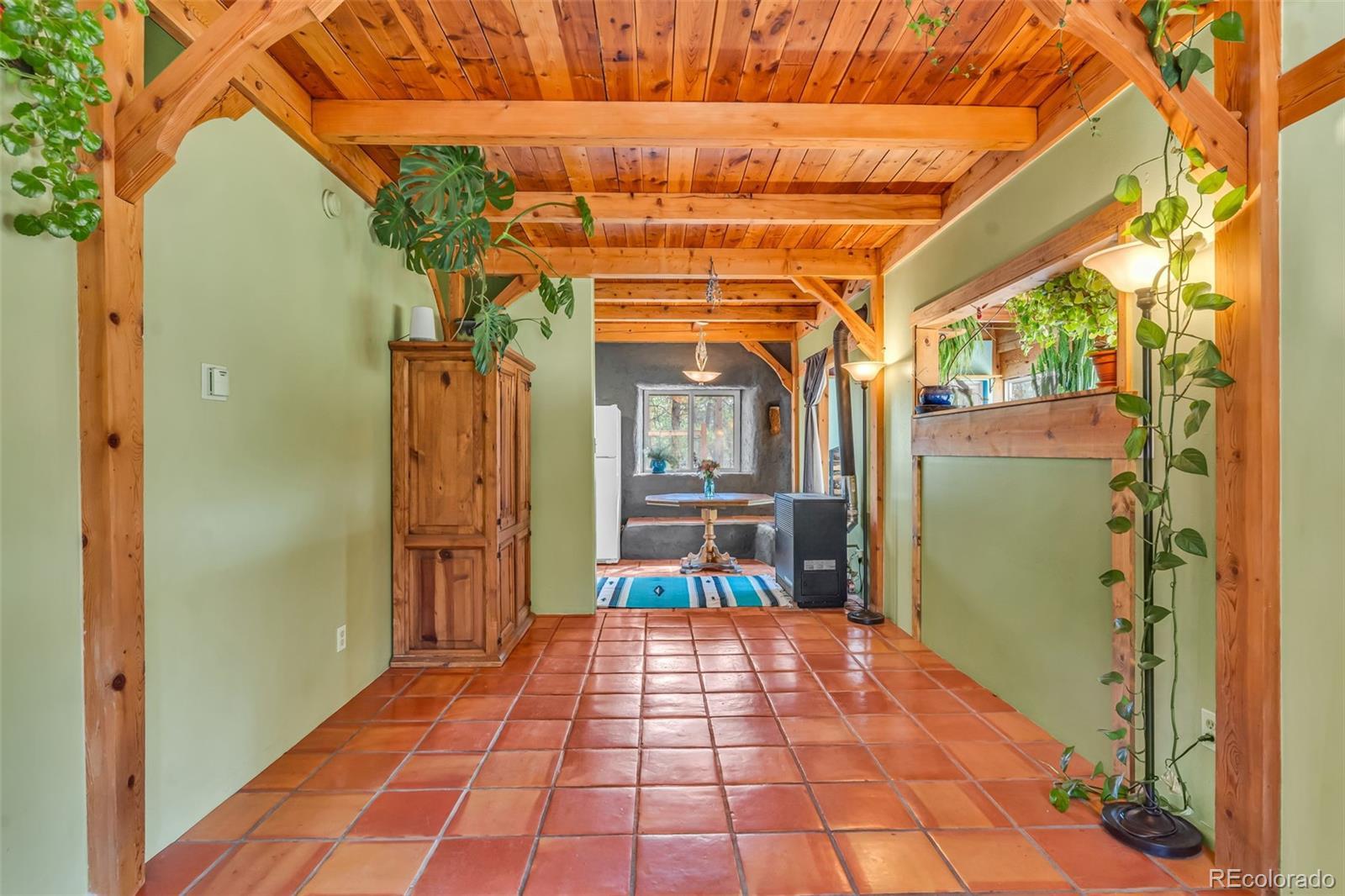 Welcome to a one-of-a-kind, energy-efficient mountain retreat just 15 minutes from the charming town of Westcliffe, Colorado. This 1.5-story, 1,437 sq. ft. straw bale and adobe home combines sustainability with comfort, all set on a sprawling 18.7-acre lot. Featuring 1 bedroom and 1 bathroom, it’s the perfect haven for those seeking privacy, natural beauty, and a smarter way of living. Step inside to a warm and inviting interior highlighted by Mexican-style Saltillo tile floors—valued for both their character and excellent thermal conductivity—paired with rich pine accents throughout. A wood-burning stove anchors the living space, capable of heating the entire home through winter with just a single cord of wood. Designed with sustainability at its core, the home features straw bale construction with 18" exterior walls and passive solar heating via a beautiful solarium, ideal for year-round indoor gardening. Additional amenities include a dog run off the back door, plus a 24x30 oversized 1-car detached garage/shop complete with its own wood-burning stove. Fire mitigation was recently completed, ensuring peace of mind. Unique to this property are rare spring-fed, absolute decreed water rights, which feed an underground cistern connected to the garage. Here, you’ll enjoy the tranquility of rural living with the convenience of year-round access via county-maintained roads. Located just 7 miles from town, you’re never far from a coffee shop, grocery store, or dinner at a local restaurant. With ample acreage, the property is well-suited for horse enthusiasts, remote workers seeking a quiet home office, or anyone dreaming of a sustainable retreat in the Colorado mountains. This home isn’t just a property—it’s an opportunity to live more intentionally, blending comfort, privacy, and energy efficiency in a truly remarkable setting.