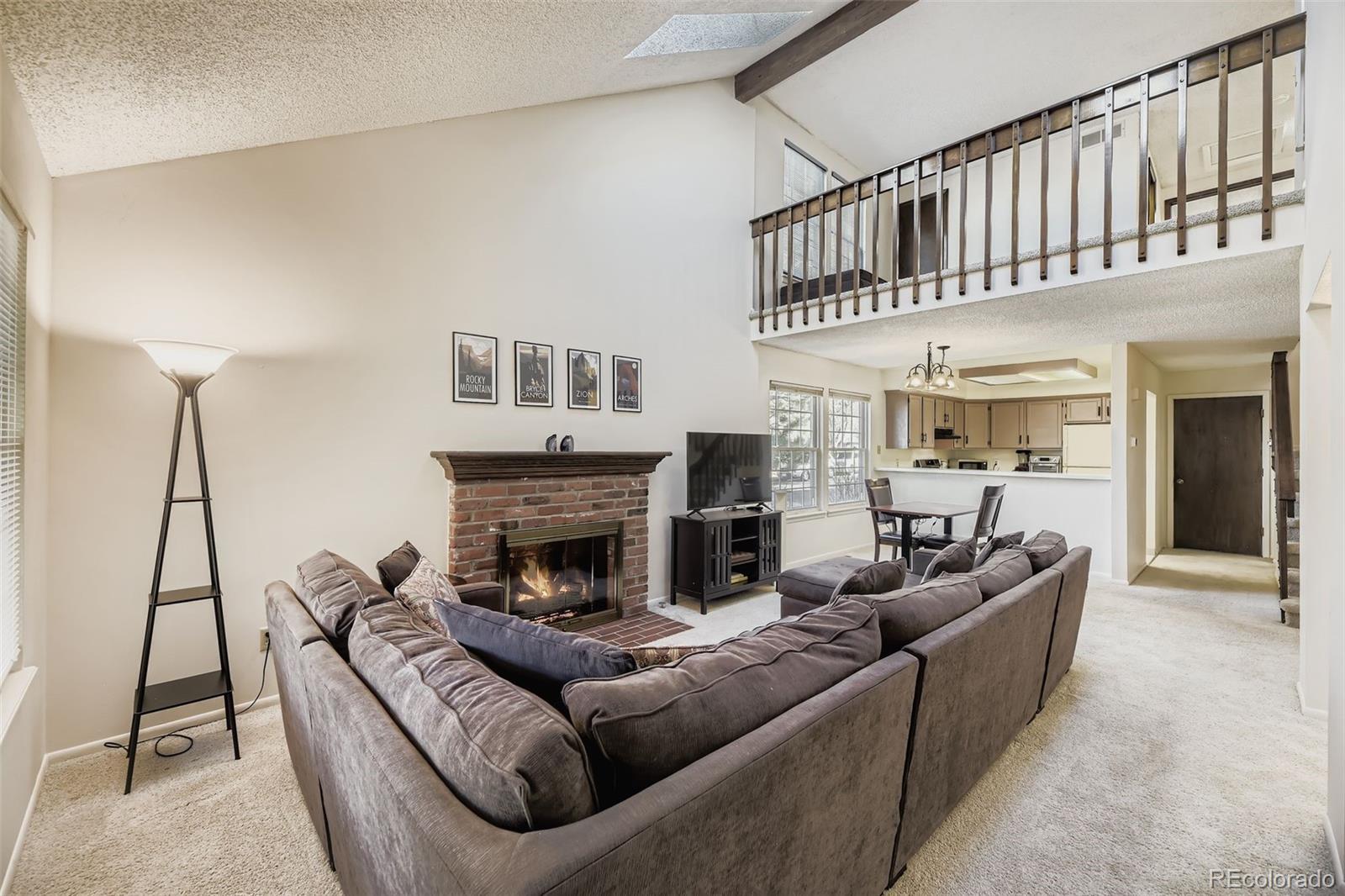 LOCATION, LOCATION, LOCATION IN BEAUTIFUL SOUTHPARK, LARGEST HAWTHORNE MODEL, END UNIT TOWNHOME, FRONTS GREEN SPACE with WALKING PATH in ONE OF THE BEST INTERIOR & QUIET LOCATIONS IN SOUTHPARK I. THIS SPACIOUS, END UNIT LIVES LIKE A HOUSE WITH NO YARD WORK! UPDATED with Newer Interior Paint, SS Dishwasher in 2021 Sellers installed a new gas line in Kitchen w/Stainless Steel Gas Stove! Spacious Living Room w/ Vaulted Ceilings & Two Newer Skylights. Open Floorplan, Gas Log Brick Fireplace w/Mantle as focal point. Bonus Den/Study/Sitting room opens to large outdoor patio & lovely mature trees. Convenient Half bath Guest Powder room. Dining area, main hall to back door & to laundry with plenty of storage off the Kitchen. Kitchen and Bathrooms newly painted. Washer & Dryer included. Newer carpet 2021 in Stairwell, Upstairs bedrooms & loft. Guest Bedroom & Full bath. Expansive Primary Bedroom suite (Largest in SP1 Townhomes) with built in wall of closets and private full bathroom ensuite. Vaulted Ceilings w/sky lights. BONUS finished Basement adds additional 700 Sq Ft Great Room, Full bath & Workshop. Could easily add a third bedroom (staged as Non-Conforming Bedroom). Enjoy access to the Highline Canal, hiking & biking trails, Aspen Grove shops; Enjoy Summer Concerts at Breckenridge Brewery and Hudson Gardens. Ride bike trails or take a float down the Platte River. High walkability Location to Shops, Restaurants Breweries & Bars. Close to Littleton Hospital, Santa Fe/C-470, & the historic downtown Littleton area with its vibrant shopping, dining, & entertainment options. Commuters will appreciate the proximity to Light Rail, providing a quick 25-minute ride to Denver & connections to DIA or the Winter Park Ski Train. Don’t miss the opportunity to make this amazing Townhome your own!!! Littleton sits just 12 miles south of Denver, offering residents a perfect blend of suburban comfort and urban accessibility. Welcome Home!
