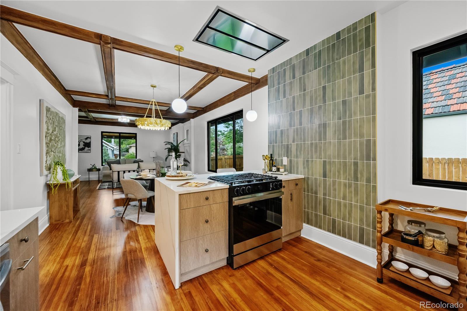 Welcome to the quintessential Park Hill home, where classic charm meets modern living on one of the most sought-after blocks in the neighborhood. This beautifully remodeled 4-bedroom, 3-bath home offers the perfect blend of thoughtful design, exceptional updates, and an unbeatable location. Step inside and be greeted by an abundance of natural light, beamed ceilings, and an entertainer’s dream floor plan. The open-concept layout seamlessly connects multiple cozy gathering spaces, including two inviting living areas. The heart of the home is the stunning kitchen, complete with sleek stainless steel smart appliances, stunning tile, and an expansive island where friends and family can gather. Step through the pantry/prep kitchen to the effortlessly to the expansive back yard—perfect for outdoor dining, grilling or enjoying the fire pit on warm summer evenings. Retreat to the serene primary suite featuring a spa-inspired en suite bathroom and spacious walk-in closet. The fully finished basement offers even more versatile living space with a generous family room, 2 bedrooms, full bath and laundry room. Modern updates throughout include new windows. Step outside to enjoy your beautifully landscaped yard, inviting front porch, and private backyard oasis. Zoning also allows for a future accessory dwelling unit (ADU) if desired. Situated in a quiet, community-focused pocket of Park Hill, you’re just moments from beloved neighborhood favorites like Spinelli’s Market, Honey Hill Café, and the Cherry Tomato. Enjoy easy access to City Park, the Denver Zoo, the Museum of Nature & Science, and the local gems at 22nd & Kearney and 27th & Fairfax. Plus, you’re within walking distance to McAuliffe International School, ranked in the top 5% of Denver Public Schools. This is more than just a home—it’s a lifestyle in one of Denver’s most cherished neighborhoods. Don’t miss your chance to make this Park Hill treasure your own!