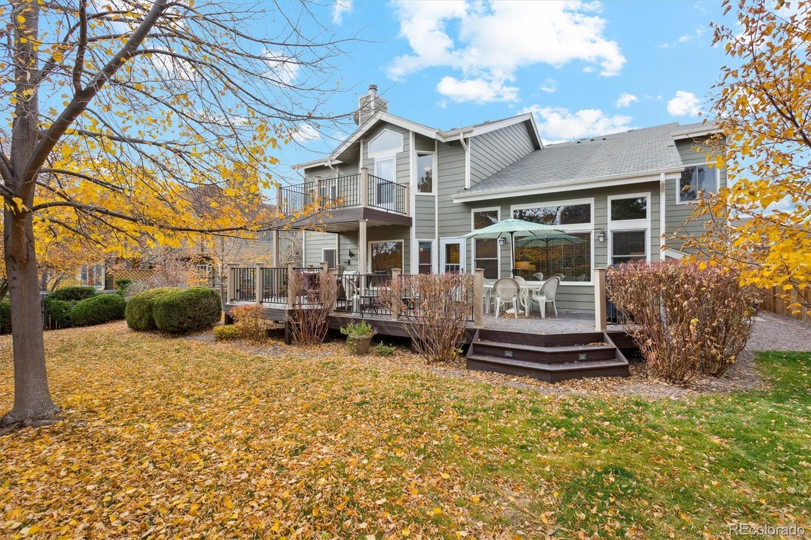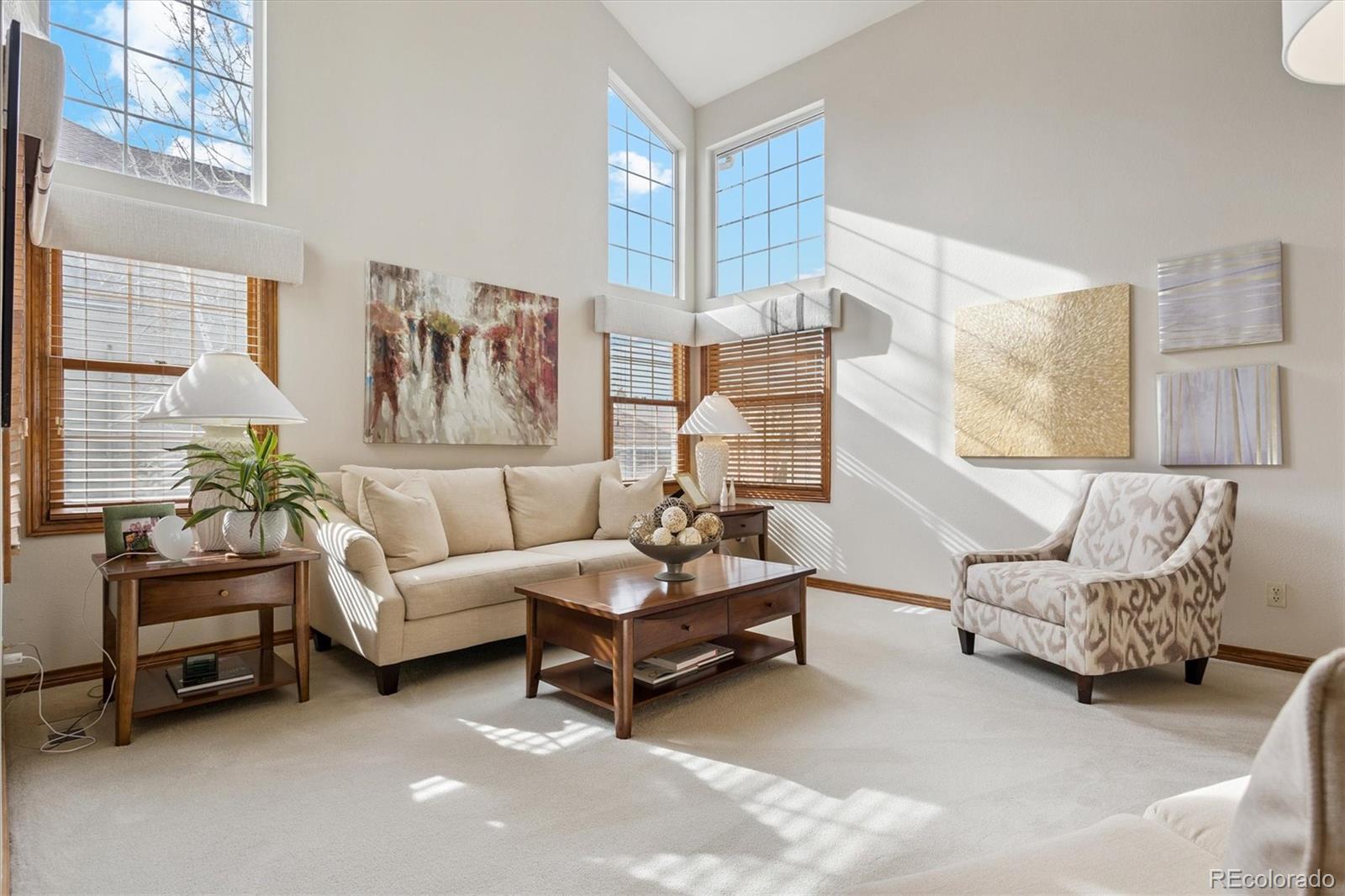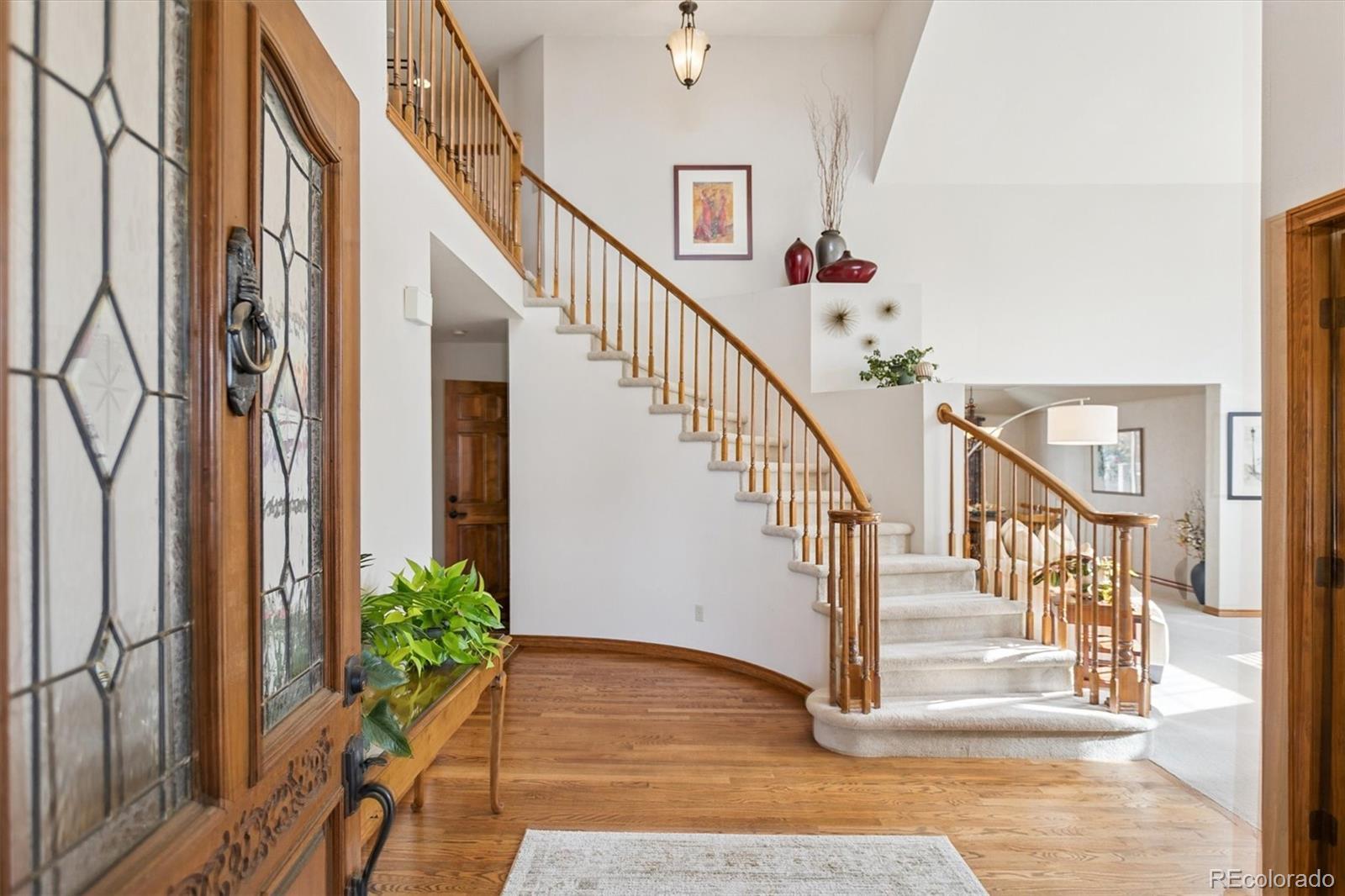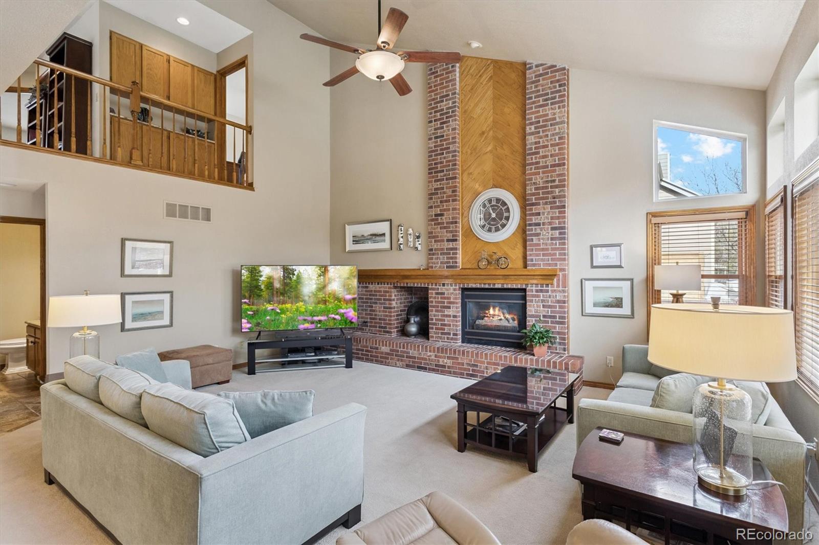 Welcome to an exceptional home in one of the most desirable neighborhoods in Highlands Ranch! Ideally positioned on a .22 acre lot you will enjoy spectacular mountain vistas & evening sunsets from the west-facing porch. Stepping inside, a stunning grand entry greets you with soaring ceilings, radiant natural light & beautiful hardwoods--creating an open and inviting ambiance. The pièce de résistance is the incredible Great room boasting ultra high ceilings, oversized window, fireplace set with custom brick work, a perfect space for entertaining. It opens to the chef kitchen with massive granite island/breakfast bar, pendant lights, wall of cabinets, built-in desk, eat in nook. From here step out to the tiered TREX deck framed by mature trees; you'll spend many days enjoying Colorado's abundant sunshine, dining al fresco. You have a sun-filled vaulted living room with tall windows & adjacent formal dining room, as well as a dedicated office (conforming bedroom) perfect for the executive. The main floor includes a 3/4 bath & beautifully designed mud/laundry room fitted with granite counters & utility sink. An elegant staircase invites you upstairs where a spacious loft overlooks the main living area. The luxurious primary suite features vaulted ceilings, a private balcony with blue sky views, a spa-inspired bath with 2-sided fireplace, soaking tub, gleaming marble floors, dual vanity & ample walk-in closet. Three additional bedrooms and a full bath complete the upper level. The finished basement with 1/2 bath extends the living space to customize as desired; currently used as an art studio. The finished 3-car garage is a car enthusiast's dream, oversized both deep & wide with plenty of storage & exterior access door. Enjoy an ideal location with access to scenic trails, 4 HRCA rec centers, clubhouse, pools, tennis/pickle ball courts & fitness classes. You're within the highly rated Douglas County school district and close to multiple amenities, shopping & restaurants.