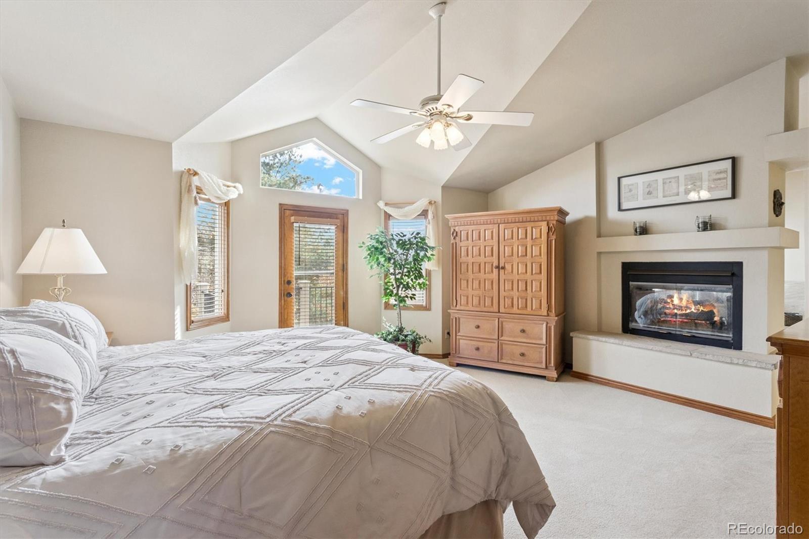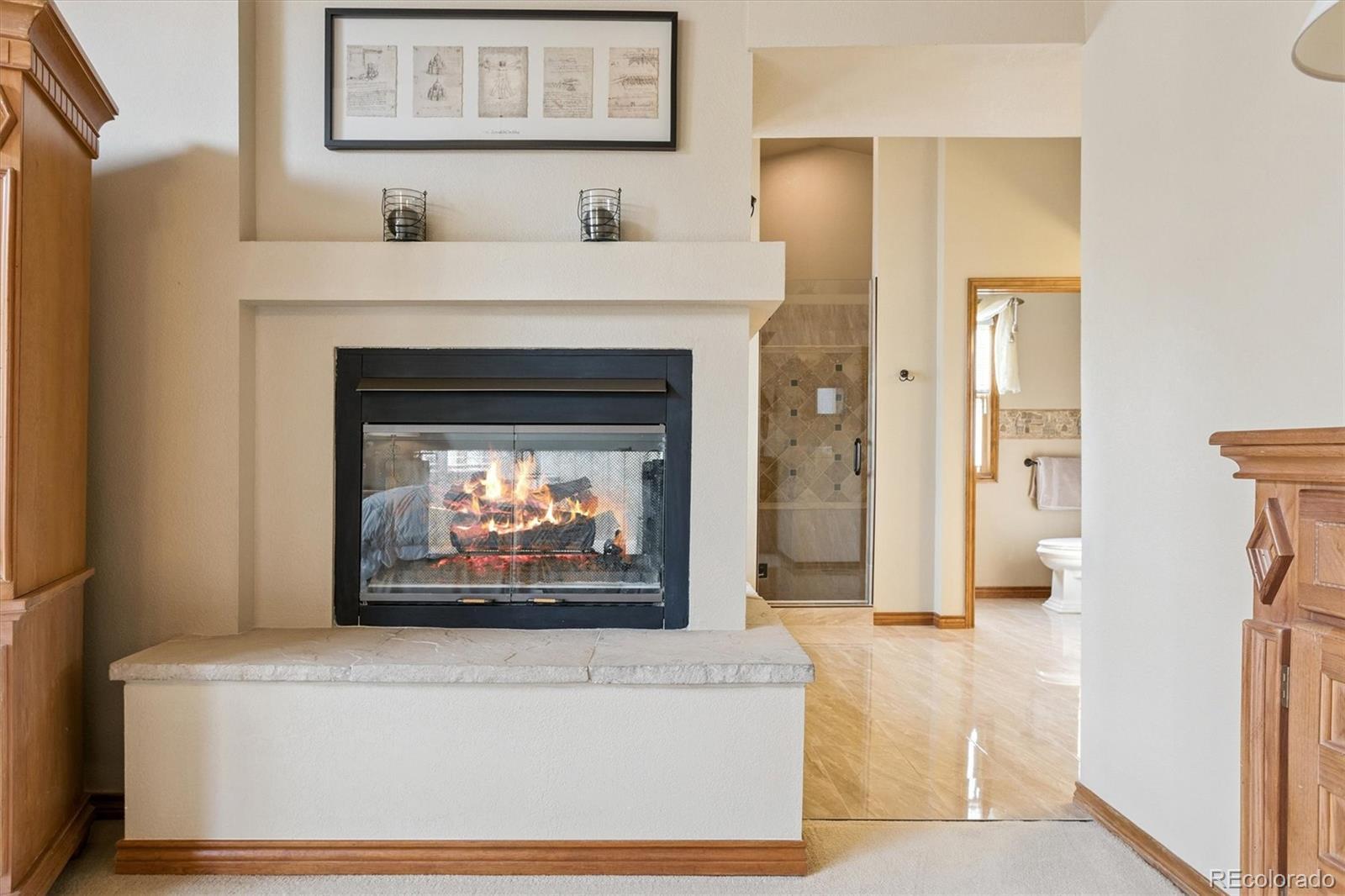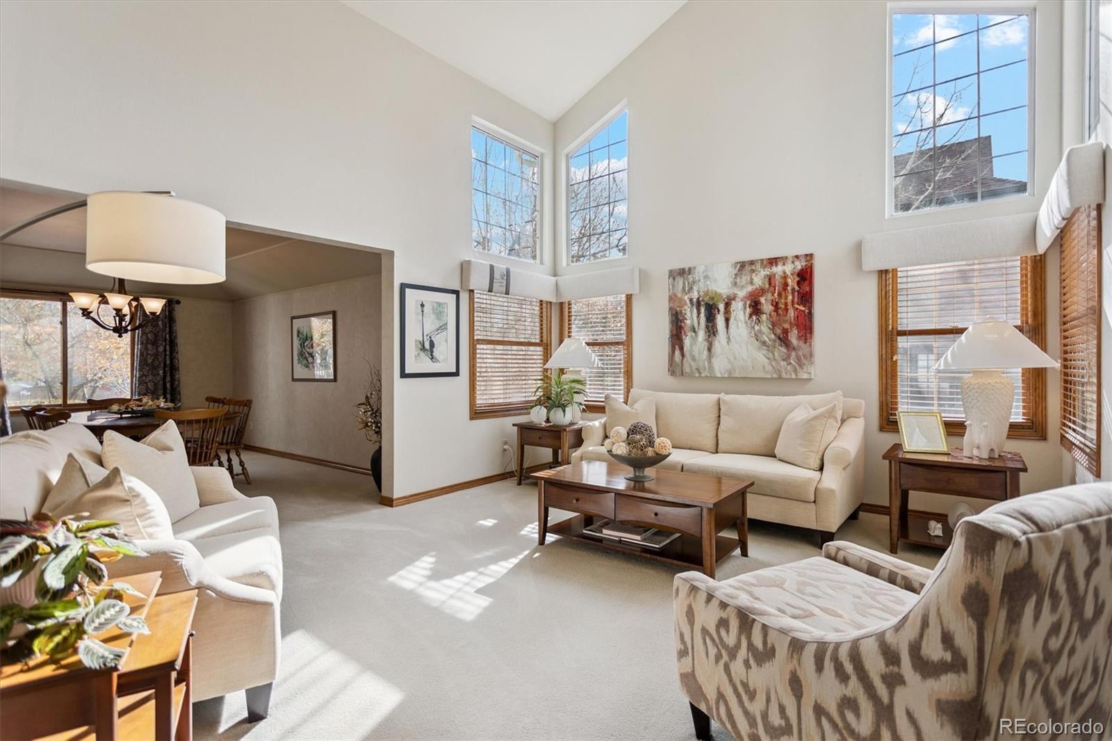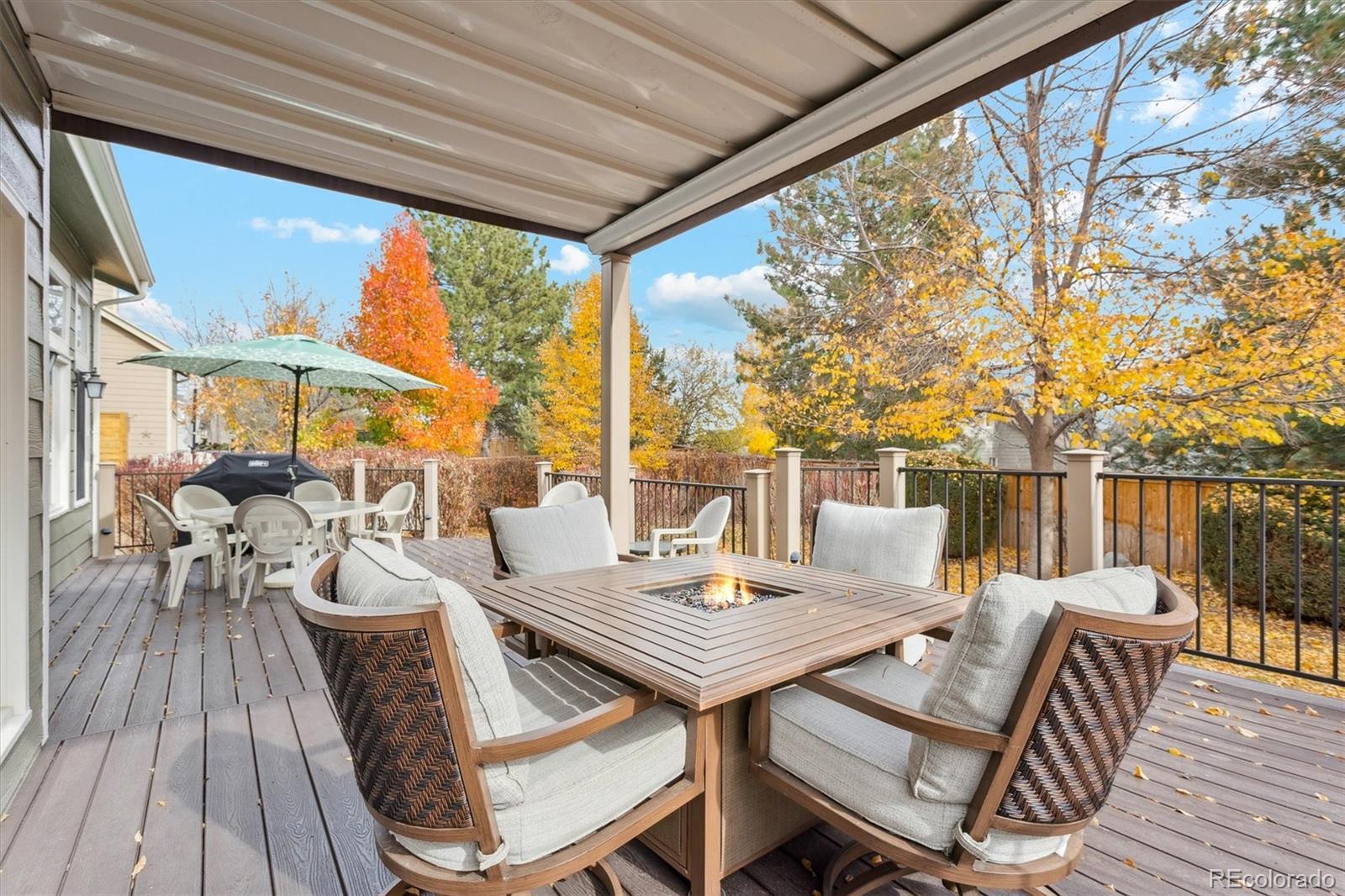 Welcome to an exceptional home in one of the most desirable neighborhoods in Highlands Ranch! Ideally positioned on a .22 acre lot you will enjoy spectacular mountain vistas & evening sunsets from the west-facing porch. Stepping inside, a stunning grand entry greets you with soaring ceilings, radiant natural light & beautiful hardwoods--creating an open and inviting ambiance. The pièce de résistance is the incredible Great room boasting ultra high ceilings, oversized window, fireplace set with custom brick work, a perfect space for entertaining. It opens to the chef kitchen with massive granite island/breakfast bar, pendant lights, wall of cabinets, built-in desk, eat in nook. From here step out to the tiered TREX deck framed by mature trees; you'll spend many days enjoying Colorado's abundant sunshine, dining al fresco. You have a sun-filled vaulted living room with tall windows & adjacent formal dining room, as well as a dedicated office (conforming bedroom) perfect for the executive. The main floor includes a 3/4 bath & beautifully designed mud/laundry room fitted with granite counters & utility sink. An elegant staircase invites you upstairs where a spacious loft overlooks the main living area. The luxurious primary suite features vaulted ceilings, a private balcony with blue sky views, a spa-inspired bath with 2-sided fireplace, soaking tub, gleaming marble floors, dual vanity & ample walk-in closet. Three additional bedrooms and a full bath complete the upper level. The finished basement with 1/2 bath extends the living space to customize as desired; currently used as an art studio. The finished 3-car garage is a car enthusiast's dream, oversized both deep & wide with plenty of storage & exterior access door. Enjoy an ideal location with access to scenic trails, 4 HRCA rec centers, clubhouse, pools, tennis/pickle ball courts & fitness classes. You're within the highly rated Douglas County school district and close to multiple amenities, shopping & restaurants.