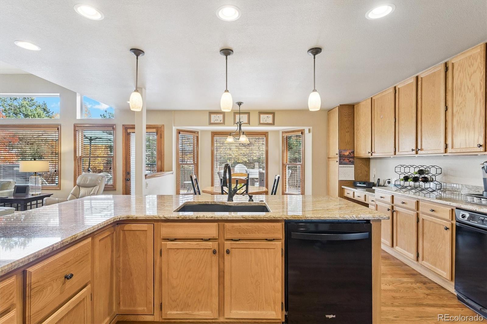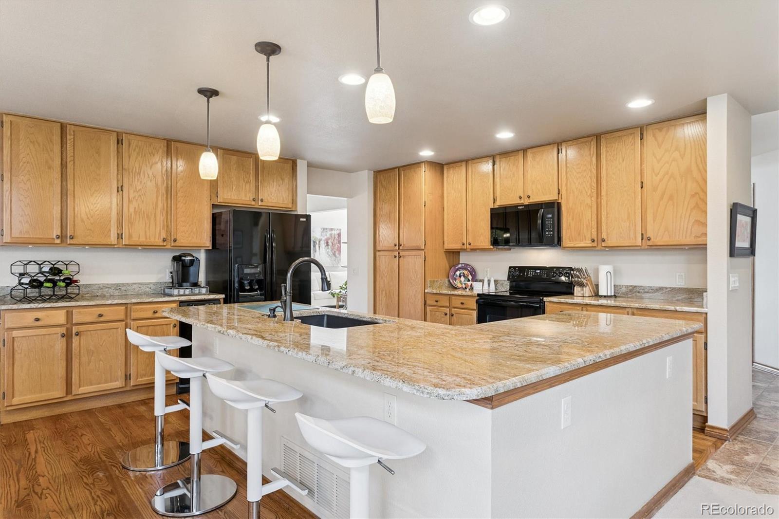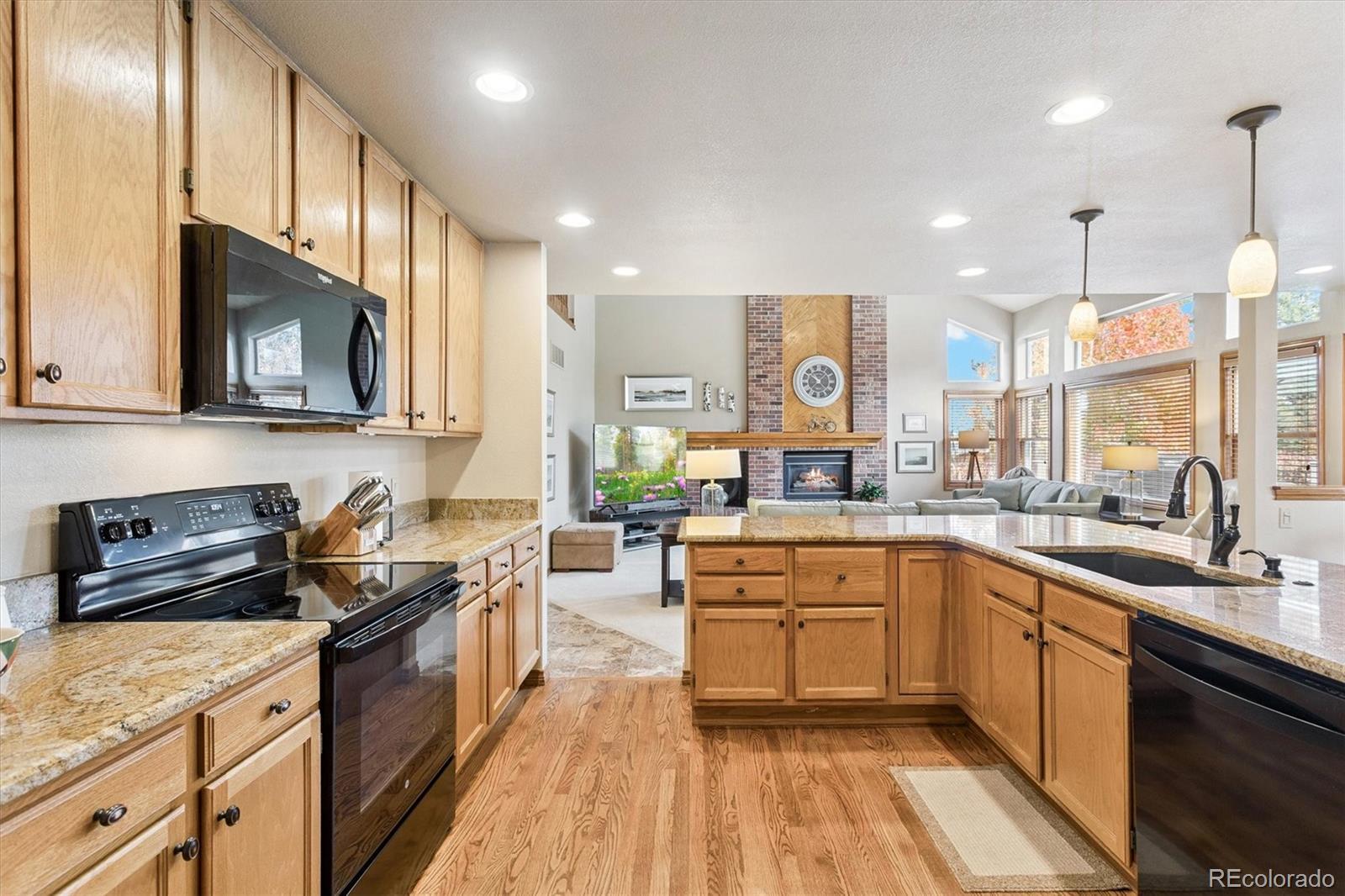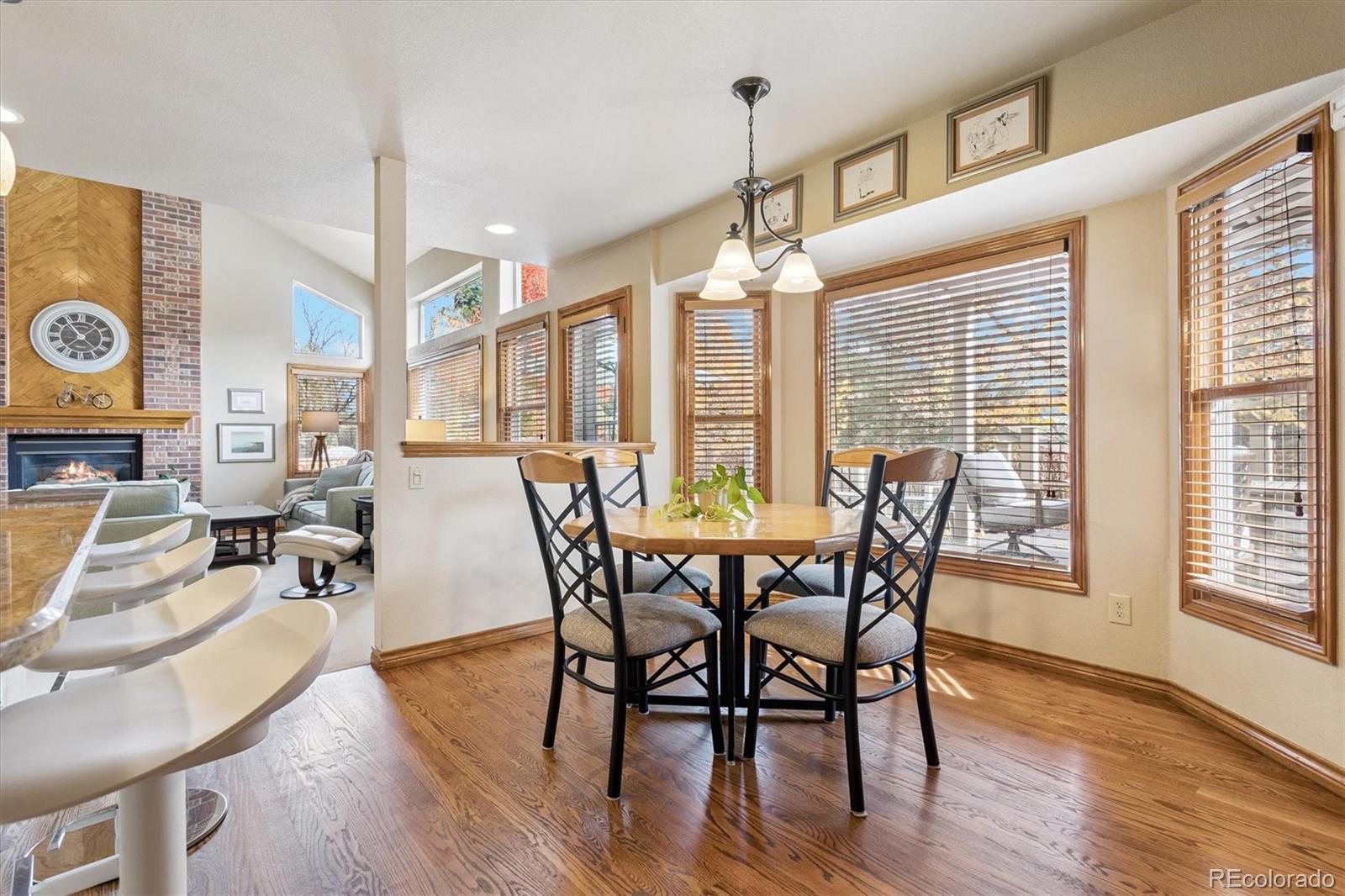 Welcome to an exceptional home in one of the most desirable neighborhoods in Highlands Ranch! Ideally positioned on a .22 acre lot you will enjoy spectacular mountain vistas & evening sunsets from the west-facing porch. Stepping inside, a stunning grand entry greets you with soaring ceilings, radiant natural light & beautiful hardwoods--creating an open and inviting ambiance. The pièce de résistance is the incredible Great room boasting ultra high ceilings, oversized window, fireplace set with custom brick work, a perfect space for entertaining. It opens to the chef kitchen with massive granite island/breakfast bar, pendant lights, wall of cabinets, built-in desk, eat in nook. From here step out to the tiered TREX deck framed by mature trees; you'll spend many days enjoying Colorado's abundant sunshine, dining al fresco. You have a sun-filled vaulted living room with tall windows & adjacent formal dining room, as well as a dedicated office (conforming bedroom) perfect for the executive. The main floor includes a 3/4 bath & beautifully designed mud/laundry room fitted with granite counters & utility sink. An elegant staircase invites you upstairs where a spacious loft overlooks the main living area. The luxurious primary suite features vaulted ceilings, a private balcony with blue sky views, a spa-inspired bath with 2-sided fireplace, soaking tub, gleaming marble floors, dual vanity & ample walk-in closet. Three additional bedrooms and a full bath complete the upper level. The finished basement with 1/2 bath extends the living space to customize as desired; currently used as an art studio. The finished 3-car garage is a car enthusiast's dream, oversized both deep & wide with plenty of storage & exterior access door. Enjoy an ideal location with access to scenic trails, 4 HRCA rec centers, clubhouse, pools, tennis/pickle ball courts & fitness classes. You're within the highly rated Douglas County school district and close to multiple amenities, shopping & restaurants.