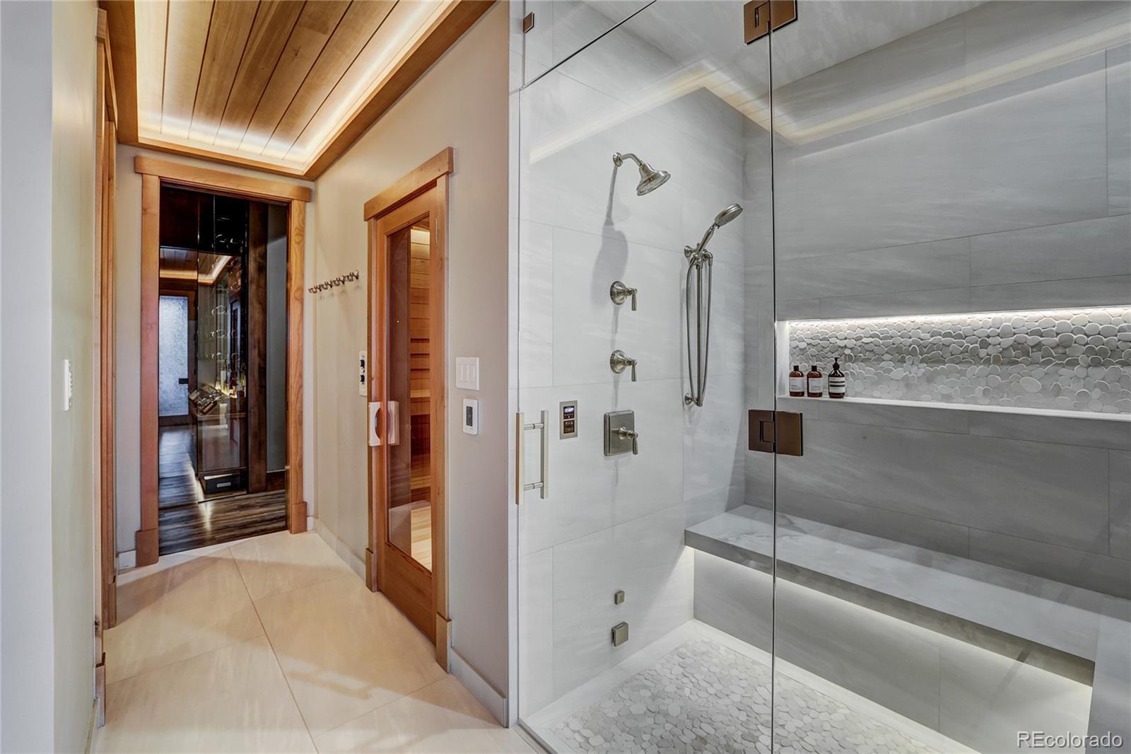 Audio/Video Controls, Breakfast Bar, Built-in Features, Eat-in Kitchen, Elevator, Entrance Foyer, Five Piece Bath, Granite Counters, High Ceilings, High Speed Internet, Kitchen Island, Open Floorplan, Pantry, Primary Suite, Radon Mitigation System, Sauna, Smoke Free, Sound System, Hot Tub, T&G Ceilings, Vaulted Ceiling(s), Walk-In Closet(s), Wet Bar, Wired for Data