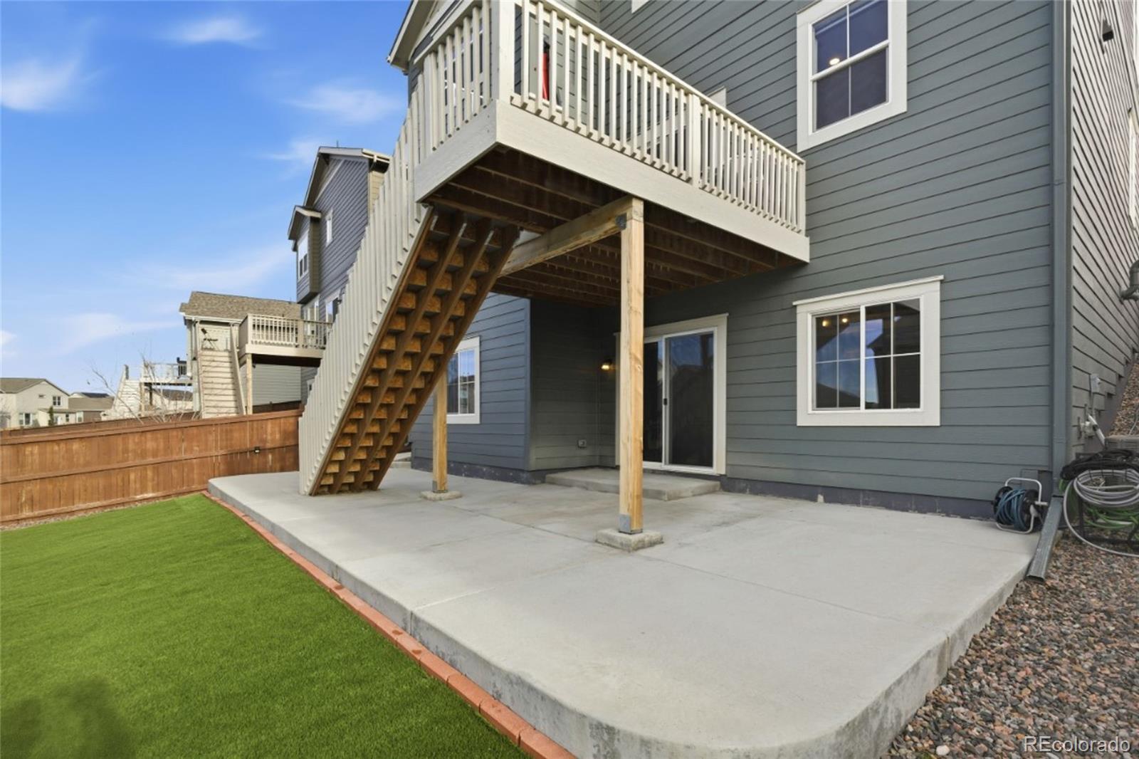 Welcome to 1053 High Point Trail — a beautifully maintained 4-bedroom, 3-bath home in the sought-after Ritoro community of Elizabeth! Built in 2021, this modern two-story home features an open floor plan with 9-ft ceilings, a convenient main-floor pocket office, upgraded crown-molded kitchen cabinetry, and stainless-steel appliances. The home is equipped with Ethernet connections, fiber internet (1 Gig), and energy-efficient honeycomb blinds that open from both the top and bottom — providing blackout coverage and helping reduce monthly energy costs. The original blinds are also included if the buyer prefers to switch. Upstairs, the oversized primary suite offers enough space for two king beds, coffered ceilings, a large walk-in closet, dual vanity, private water closet, and a water-filtered shower. Ceiling fan prewires are installed in the great room, office, and bedrooms for future upgrade. The walk-out unfinished basement already includes electrical, plumbing lines, and HVAC connections — offering excellent potential to finish into a rec room, guest suite, or gym. Exterior features include a zero-scaped front and backyard with optional sprinkler connections and a dog door (with original glass insert available). HVAC and furnace have been recently serviced, vents professionally cleaned, and the home comes with a binder of invoices, warranties, and service records showing meticulous care. Additional bonuses: Extra carpet, flooring, and turf materials will be included for the buyer, along with the option to assume the existing loan (subject to lender approval). This home truly blends modern convenience with low-maintenance living — don’t miss your chance to own one of the best-maintained homes in Ritoro!