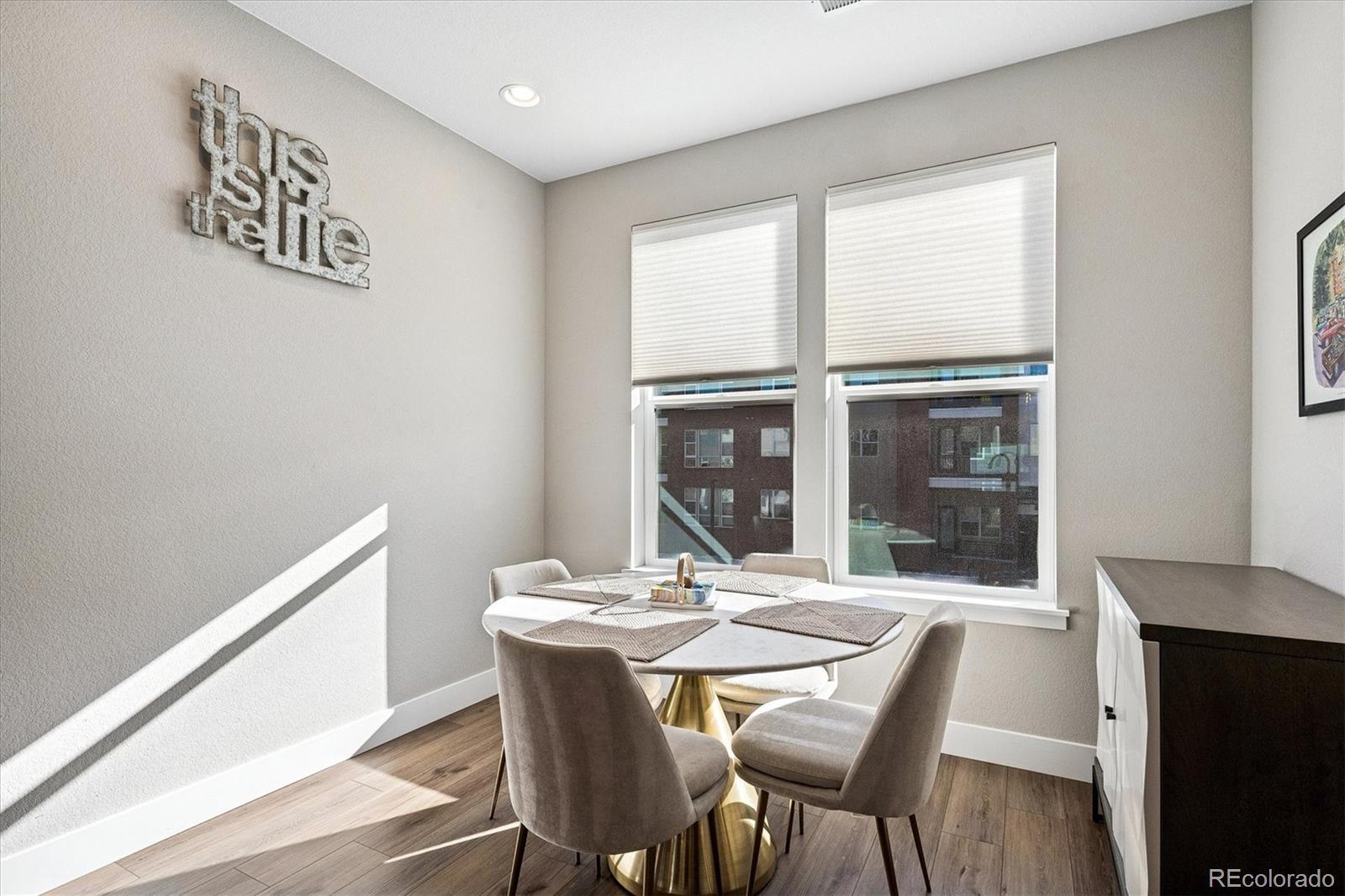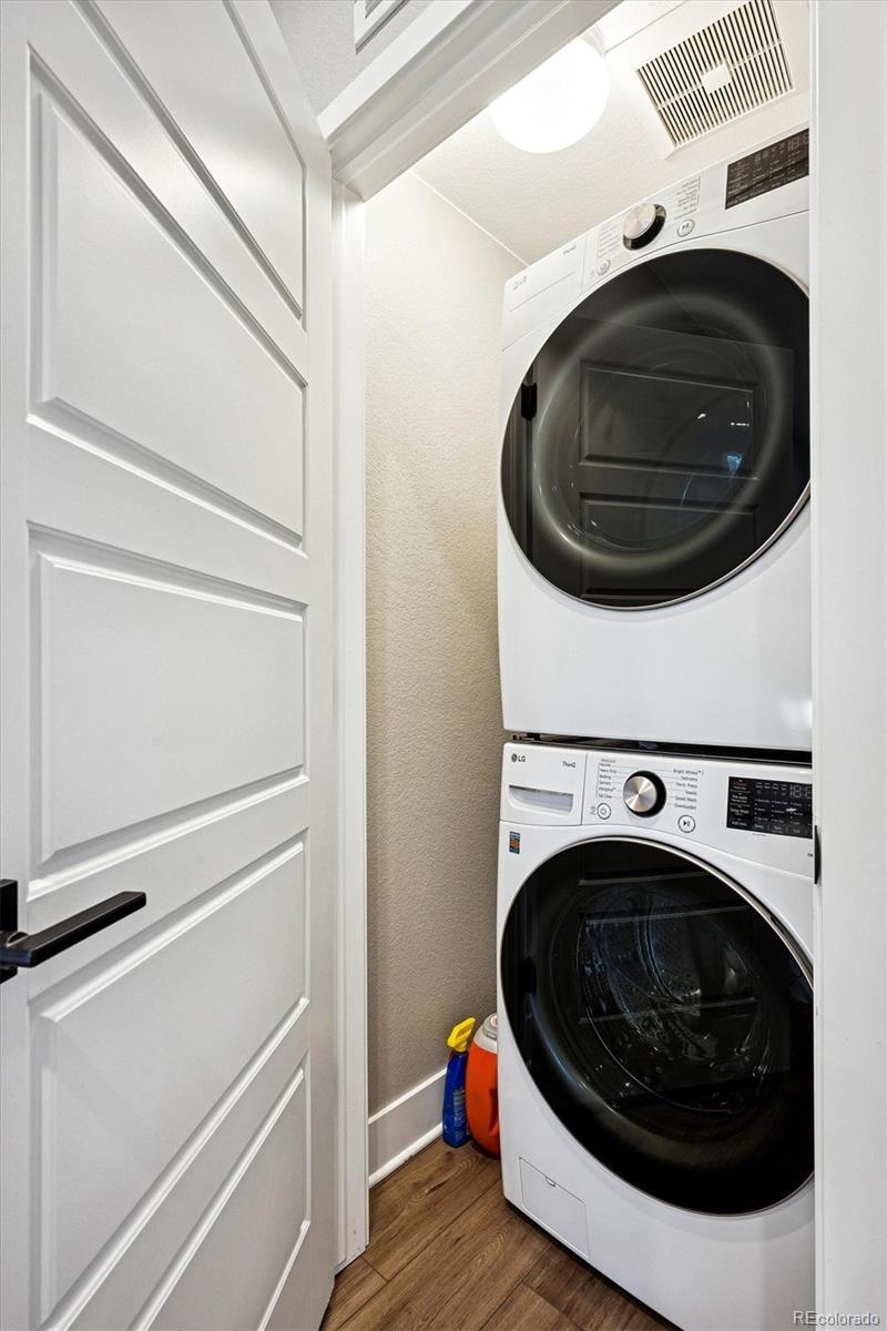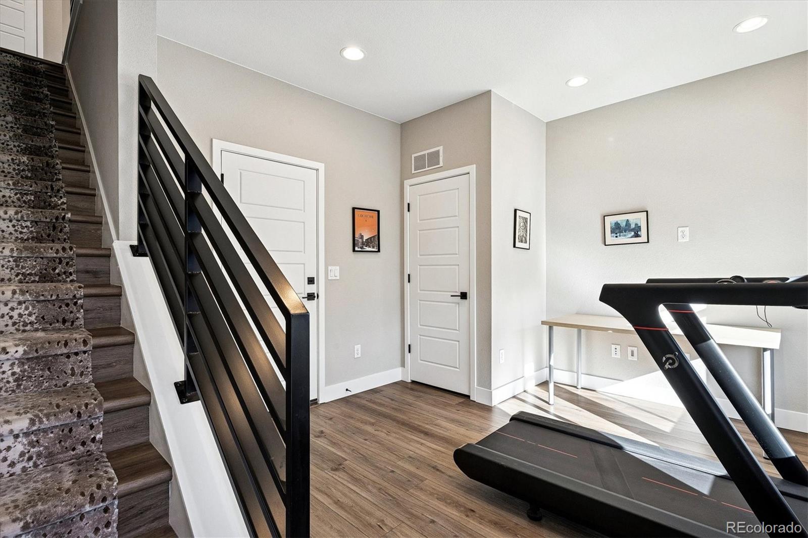 AVAILABLE NOW! There is no HOA! $250/quarter fee that is listed in association tab is paid directly to metro district. Step into elevated urban living with this stunning three-story, two-bedroom, three-bathroom townhome nestled in Historic Loretto Heights. Thoughtfully designed and beautifully upgraded, this home blends modern finishes with everyday functionality. The entry level offers a versatile flex space, ideal for a home gym, private office, or creative studio, adapting effortlessly to your lifestyle. Luxury vinyl plank flooring flows throughout the home, enhanced by a custom carpet runner and custom metal railings that add architectural interest and style. Keep warm with an electric fireplace on the main level. Ceiling fans on upper levels ensure year-round comfort, while solar panels and green energy electric throughout provide energy efficiency and lower utility costs without sacrificing performance. A new washer and dryer and all appliances included make this home truly move-in ready. The primary suite is a serene retreat, featuring a generous walk-in closet and a spa-inspired ensuite bath with a glass-enclosed walk-in shower and double vanity. The secondary bedroom offers privacy and flexibility with its own attached bath and tub/shower combination—perfect for guests or everyday living. Located in the heart of vibrant, historic Loretto Heights, this townhome enjoys a central, highly convenient location with easy access to dining, shopping, parks, and major commuter routes. With its blend of sustainable features, stylish upgrades, and flexible living spaces, this home offers modern living in a dynamic, connected community.