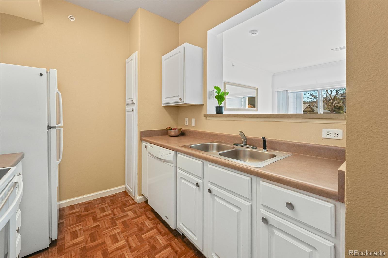 Located in the sought after Fallingwater community in Littleton, this ground-level 2-bedroom, 2-bath condo offers true single-level living with no stairs to enter the home or within the unit. With 1,035 square feet, the thoughtfully designed split-bedroom floor plan places the bedrooms on opposite sides of the unit, providing privacy for roommates, guests, or a home office. The bright open-concept living and dining area features large windows and abundant natural light, flowing easily into the kitchen for relaxed daily living or entertaining. Both bedrooms feature walk-in closets, offering generous storage space, and the home also includes an additional storage closet off the covered patio. A reserved parking space is included for easy and convenient parking. Residents of Fallingwater enjoy resort-style amenities, including a beautiful pool, club house, gated entry, and well maintained buildings and landscaped grounds that create a peaceful, resort-like setting. The location offers excellent everyday access with coffee shops, restaurants, bars, and King Soopers within walking distance. Outdoor enthusiasts will appreciate being just minutes from Chatfield State Park, Deer Creek Canyon, and extensive hiking and biking trails in the foothills. With quick access to C-470, commuting to Downtown Littleton, the Denver Tech Center, Lockheed Martin, and surrounding Denver metro areas is straightforward. Whether you're looking for a Littleton condo with no stairs, a low-maintenance home near outdoor recreation, or a lock-and-leave property close to shopping, dining, and trails, this home offers a great combination of comfort, location, and community amenities.