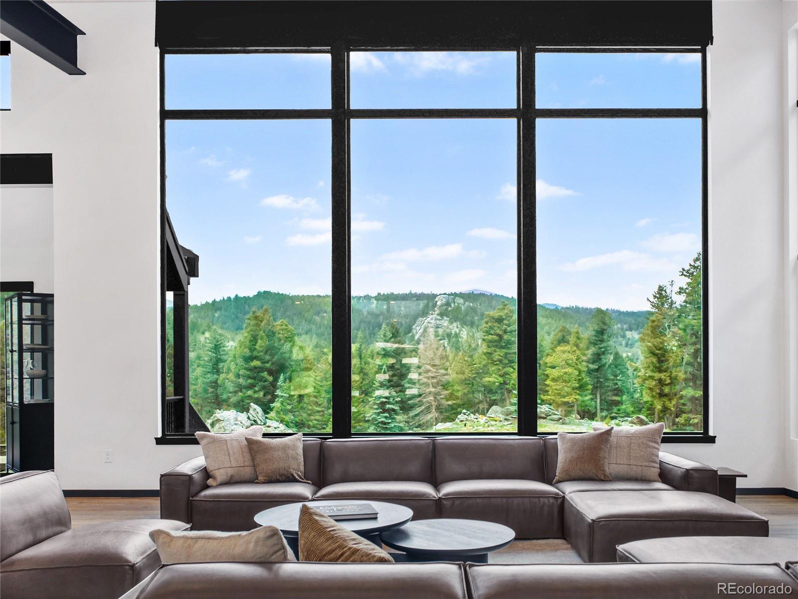 Welcome to 34089 Woodland Drive, a breathtaking mountain estate in the prestigious Soda Creek community of Evergreen. Set on nearly 8 pristine acres, this modern 6-bedroom, 7-bathroom home offers the perfect blend of modern luxury, recreational amenities, and serene mountain living—just under an hour from Denver. Spanning over 8,100 square feet, the home features a seamless fusion of contemporary design and indoor-outdoor foothills living. A recent remodel and expansive addition give the home a fresh feel and it shows like new construction. Soaring ceilings, skylights, and walls of windows flood the open-concept living spaces with natural light, flowing effortlessly outside to a brand-new heated composite deck with a full outdoor kitchen—ideal for entertaining or relaxing under the stars. This property is a true haven for recreation and wellness. Enjoy a full gym in the basement, a half basketball court in the garage, and a state-of-the-art golf and shooting simulator in the heated, modernized barn. Outdoors, 1/3 acre of turf, a slackline, zip line, trampoline, and both gas and wood-burning fire pits create a private playground for all ages. A fenced dog run adds convenience for pet lovers. Equestrian enthusiasts will appreciate the location within one of Evergreen’s premier horse communities, with access to miles of scenic riding trails. Nothing was spared in the living quarters with every bedroom outfitted with walk-in closets and ensuite bathrooms. The primary suite includes a large walk-in shower with dual full body shower heads and the closet includes it's own washer and dryer. Whether you're hosting guests, working remotely, or simply enjoying the peace of the pines, this home offers unmatched versatility, comfort, and lifestyle. Don’t miss this rare opportunity to own a legacy property that truly has it all—luxury, land, and location. No detail was overlooked. Be sure to download the features page in the supplements.
