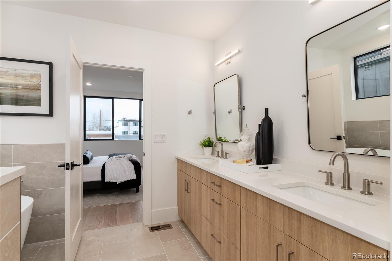 Designed by Denver architect Don Goerig. The adjoining unit 2186 King St went under contract in just 6 days. This sunny south end home offers 2,496 SF, 3 bedrooms, 4 baths, and a west-facing rooftop deck with Rocky Mountain views. *Please note photos are from adjoining unit at 2186 King St. The main level lives like a single-family home, with well-defined spaces designed for everyday living and entertaining. A dedicated dining area framed by expansive windows flows into the kitchen through a butler’s pantry, creating an intuitive transition between spaces. The kitchen features a Bosch appliance package, large pantry, generous island seating, and abundant storage throughout. An owner’s drop zone just inside the back entry adds everyday practicality. Upstairs, the primary suite stands out for its smart design and rare dual his and her closets. The ensuite bath includes a freestanding tub and glass-enclosed shower. A second bedroom on this level offers floor-to-ceiling windows, an ensuite bath, and walk-in closet. The third level provides additional living space with a wet bar, sliding doors to the rooftop deck, and a third bedroom with its own ensuite - ideal for guests, work-from-home, or flexible living. A finished, nearly 20-foot-long garage (19’8”) offers exceptional storage for bikes, skis, paddleboards, and all the Colorado gear. With ample storage throughout and a layout that feels intuitive and livable, 2184 King St is a refined take on duplex living. The neighborhood offers a prime opportunity for an active Colorado lifestyle and thanks to the street’s non-throughway nature, the home is situated on a quiet lot. Only a mile from I-25 and HW6 for quick and easy access to Red Rocks, Boulder, and the mountains and just blocks from Sloan’s Lake, Highlands Square, and Edgewater Public Market, in one of Denver’s most vibrant, walkable neighborhoods.