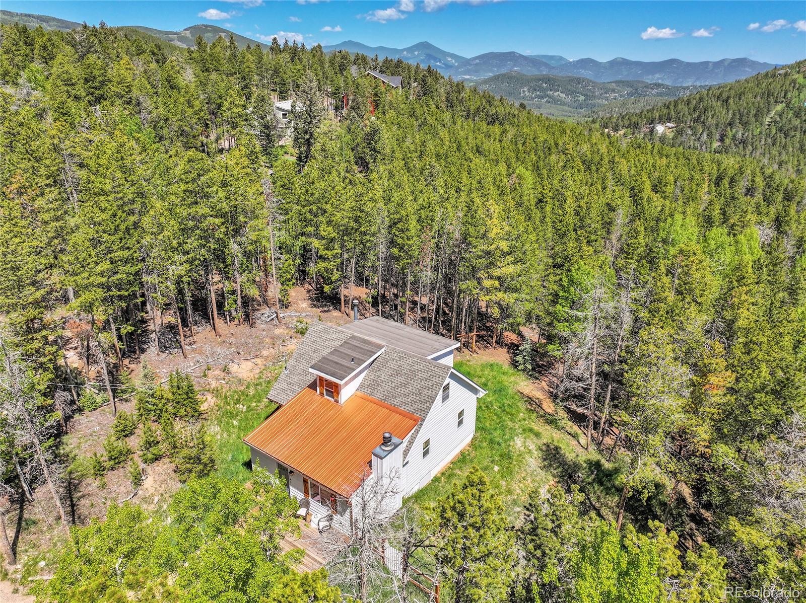 Charming Mountain Retreat in Desirable Shadow Mountain! Seller is offering $10,000 escrow at closing to cover driveway grading and graveling, an excellent opportunity to enhance property access. Nestled in a serene, private wooded setting, this beautifully updated home offers a perfect blend of modern comfort and rustic charm. Step into the spacious great room, where a timeless wood-burning fireplace, fresh paint, gleaming hardwood floors, and a soaring vaulted ceiling create an inviting atmosphere. The kitchen is a true showstopper, brimming with mountain elegance. Featuring gorgeous granite countertops, stainless steel appliances, custom built-in storage, and a cozy eat-in space, it effortlessly serves as the heart of the home. The main level includes two comfortable bedrooms, a stylish full bath, and a versatile second living space—ideal for formal dining or entertainment. Upstairs, your private master suite awaits with an expansive walk-in closet, and a spa-like en-suite bath boasting a double vanity and striking black limestone floors. Designed for outdoor living, this home offers both a spacious front and back deck—perfect for soaking in the tranquil beauty of your 1-acre wooded lot. Some of the furniture may be purchased. Conveniently located just minutes from Hwy 285, this enchanting property provides easy access to all the dining, shopping, and recreation that Conifer and Evergreen have to offer. Come experience the perfect mountain escape—schedule your tour today!