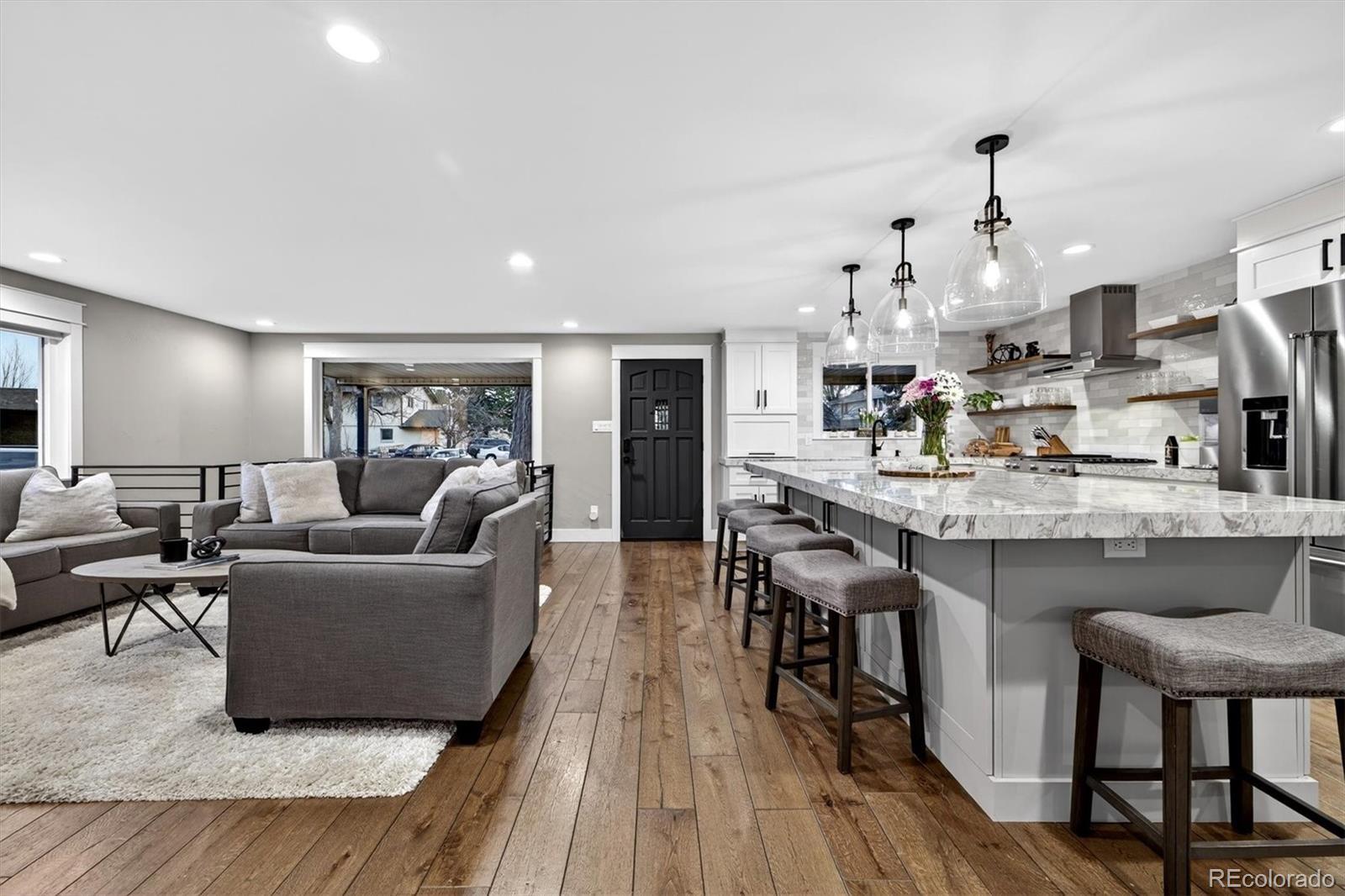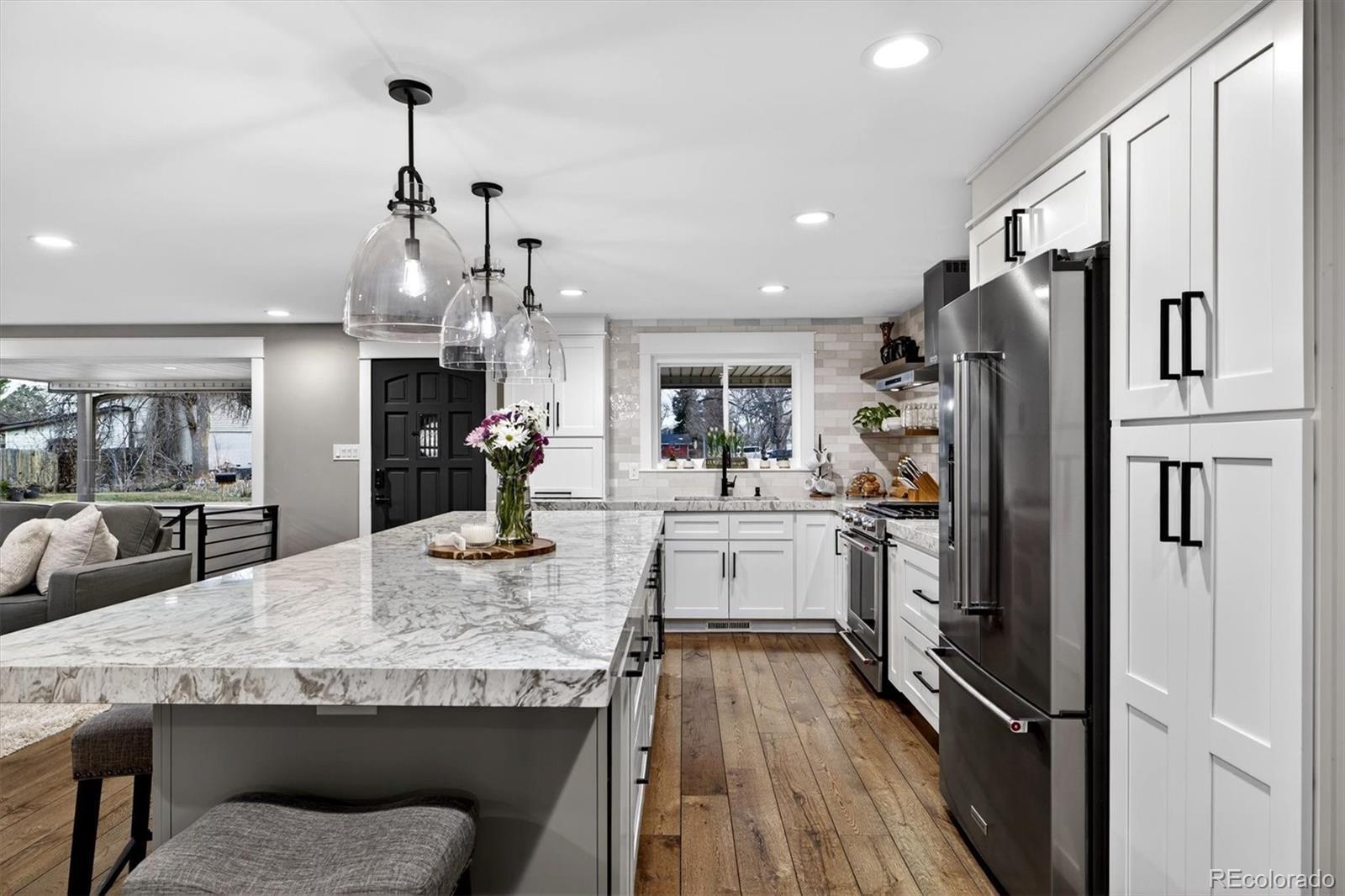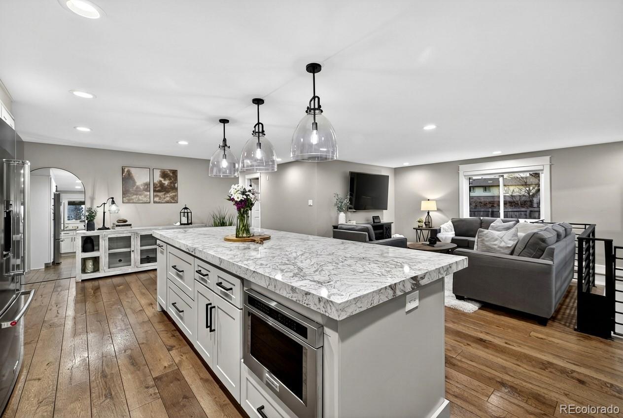 **OPEN HOUSE SATURDAY 1/17/26 1:00-3:00PM** Welcome to this beautifully updated ranch-style home tucked at the end of a quiet cul-de-sac in desirable Arvada, located in a non-HOA community and within the sought-after Ralston Valley High School area. Situated on a generous .31-acre lot, this property offers exceptional space, privacy, and future potential. The open-concept main level features 3 bedrooms and 2 bathrooms, newer hardwood floors, new windows, and a newly remodeled high-end kitchen with a large island and newer, top-of-the-line KitchenAid appliances—ideal for both everyday living and entertaining. The fireplace area is currently styled as a dining space, showcasing the home’s flexible layout. The finished basement expands the living area with a large recreation room, a newly remodeled bathroom, a non-conforming bedroom ideal for a guest suite or second primary, plus finished storage, mechanical room and additional crawl space storage. Outdoor amenities include a covered back patio, expansive yard, ample off-street RV parking, and room to add an additional detached two-car garage or ADU (zoned, city-approved permits required). Conveniently located near parks, trails, Standley Lake, and just a short drive to Denver, Boulder, and the mountains, this home blends comfort, location, and long-term opportunity. A rare Arvada find.