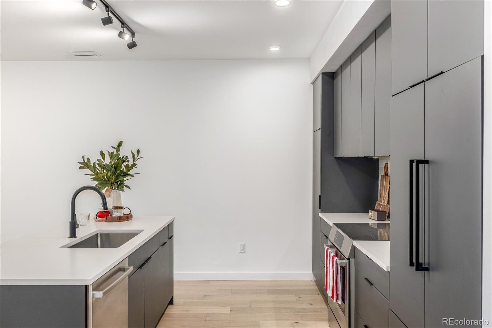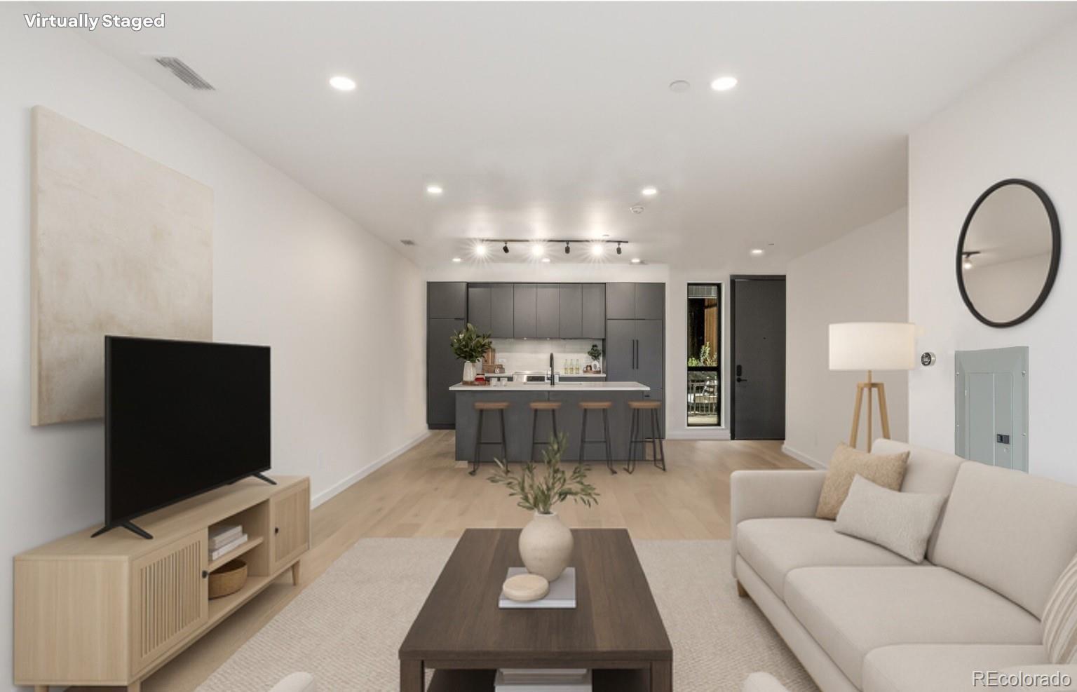 Welcome to 1601 Park Avenue #215, a beautifully designed 2-bedroom, 2.5-bathroom townhome offering the perfect blend of modern comfort and urban convenience in one of Denver’s most vibrant neighborhoods—City Park West. Step inside to discover a bright and spacious open-concept layout, featuring high ceilings, warm wood flooring, a tasteful neutral color palette, and recessed lighting throughout. The generous living and dining areas are ideal for entertaining or relaxing after a long day. At the heart of the home, the modern kitchen impresses with quartz countertops, stylish tile backsplash, stainless steel appliances, and sleek cabinetry with a custom built-in for added functionality. The oversized kitchen island provides the perfect spot for casual dining, prep work, or gathering with friends. Upstairs, the primary suite offers a quiet retreat complete with plush carpet, a walk-in closet, and a private ensuite bathroom featuring dual sinks and designer finishes. The secondary bedroom is equally spacious—ideal for guests, a roommate, or a dedicated home office. One of the standout features of this home is the expansive private patio (approx. 21' x 11')—a rare find in this location. Whether you're enjoying a morning coffee, evening cocktail, or hosting friends, this outdoor space delivers. Additional perks include assigned parking, central A/C, and a location that puts you just steps from local restaurants, coffee shops, boutiques, parks, and public transit. You're also minutes from City Park, Uptown, Downtown Denver, and the Denver Botanic Gardens. Don’t miss your chance to own this low-maintenance, move-in-ready gem in the heart of the city. Schedule your private showing today!