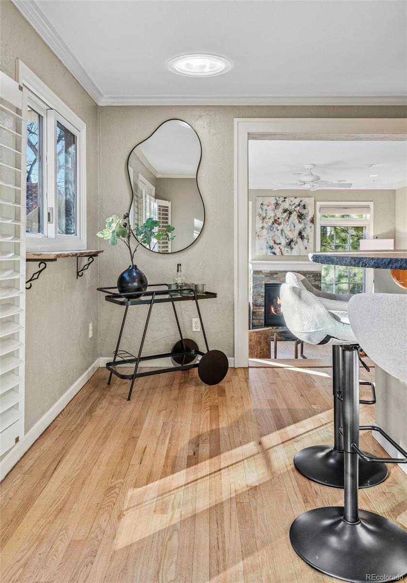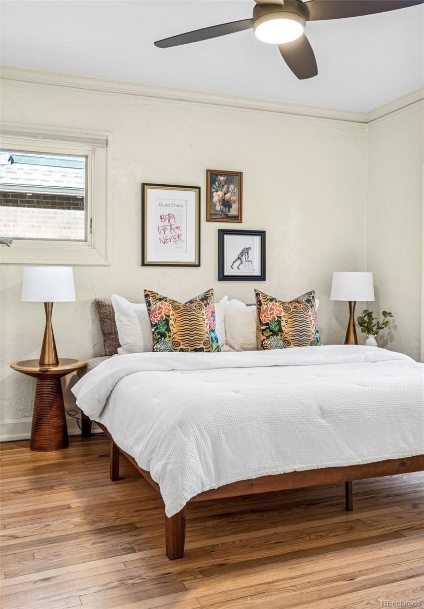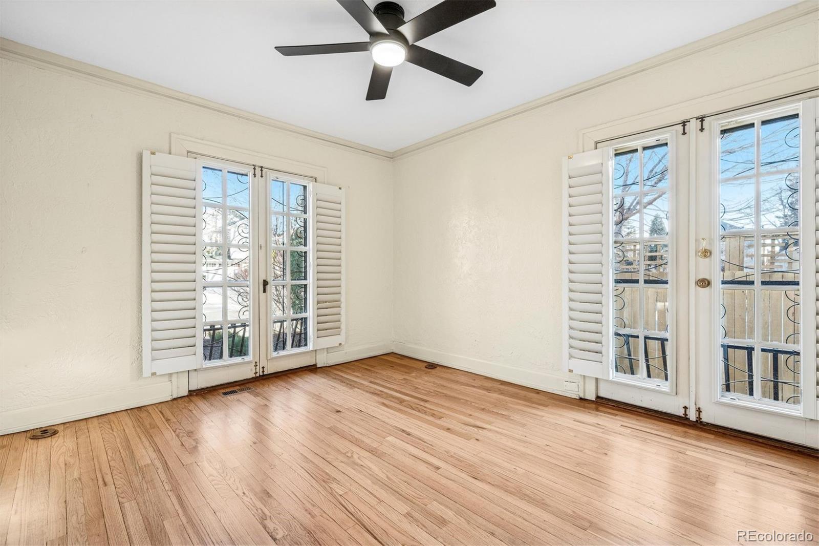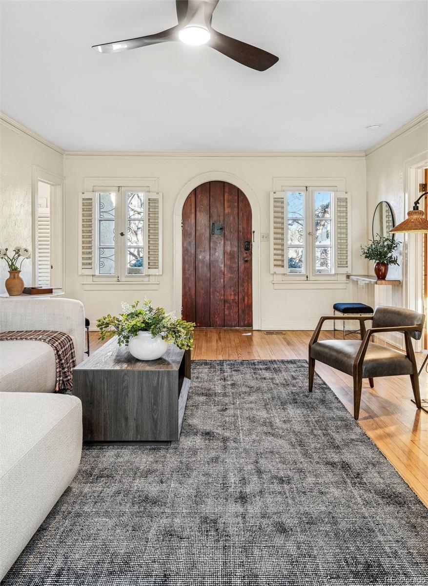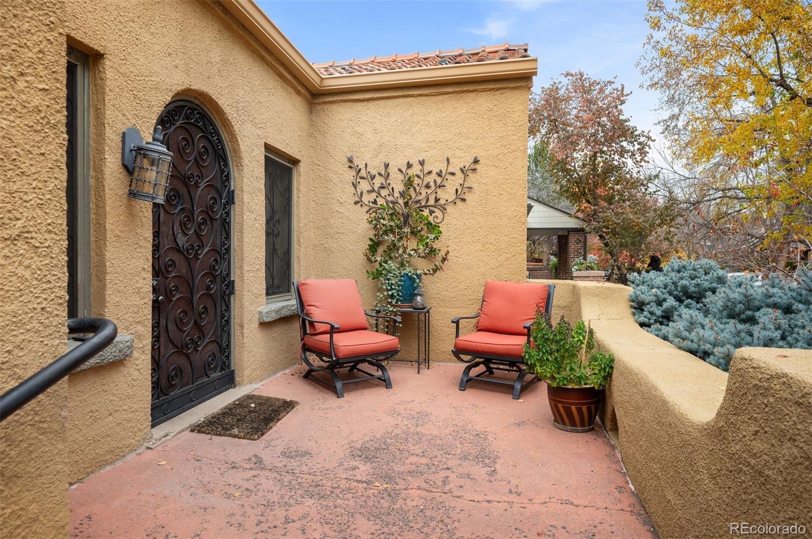 Stunning South Park Hill ranch home blending timeless Spanish-style charm with thoughtful modern updates. From the classic tile roof to the graceful architecture and unique interior, this home is truly one of a kind. Enter through the refurbished arched doorway into a welcoming living room and dining room with views to the back gardens and patio. The updated kitchen opens to a bright sunroom that radiates year-round warmth. 3 sets of French doors extend the experience outdoors to a beautifully landscaped backyard with a tranquil patio and garden, perfect for dining, relaxing, and gathering. The main floor also features a primary bedroom suite, second bedroom suite, and a cozy office. The nearly 1,000 SqFt basement provides even more versatility with space for a non-conforming bedroom, additional living room, or flex area, plus an unfinished workshop for storage or hobby projects. Paid-off solar panels and a new furnace and A/C help keep energy costs low. All of this in an unbeatable Park Hill location: just off picturesque Montview Blvd; steps from neighborhood favorites at 23rd & Dexter (Honey Hill Cafe, Cherry Tomato, Spinelli's Market); less than a mile to the shops and restaurants at 23rd & Kearney (Bistro Vendome, Lucina Eatery & Bar, Cake Crumbs, Neighbors Wine Bar, Oblio’s); minutes from City Park, the Denver Zoo, and the Museum of Nature & Science; and only a quick 12-minute drive to downtown Denver. This is a rare opportunity to own a home that offers character, convenience, and incredible livability in one of Denver’s most beloved neighborhoods.