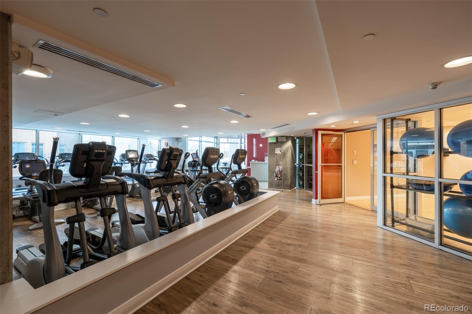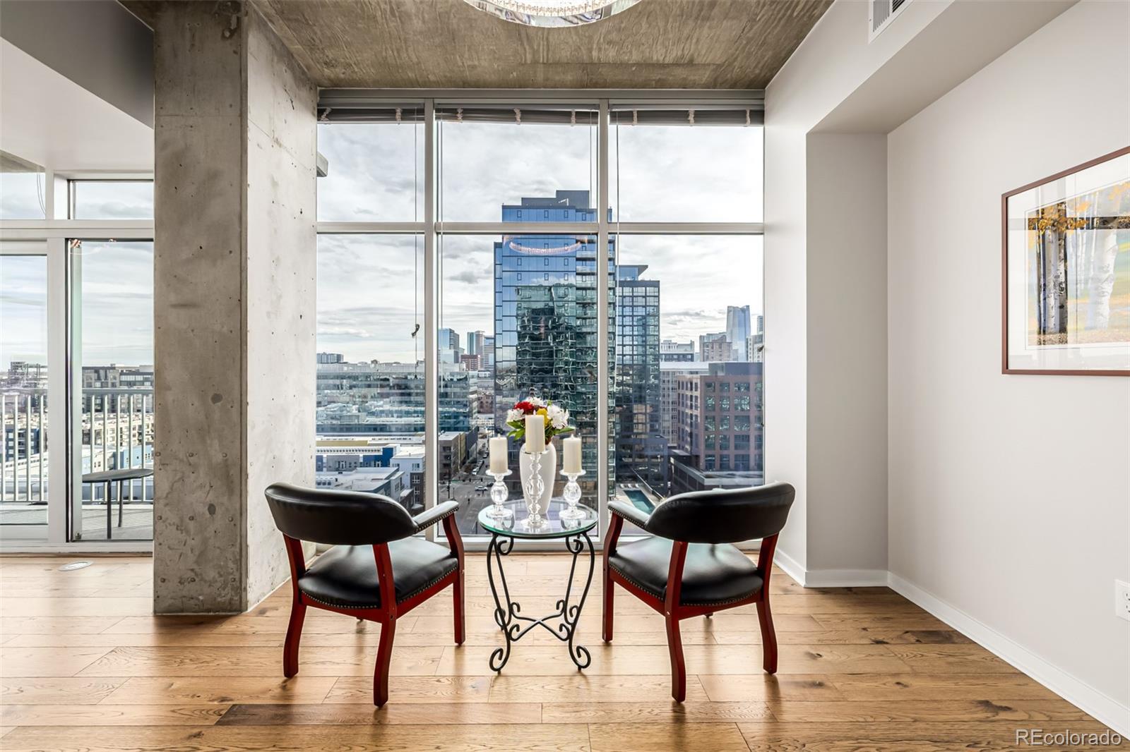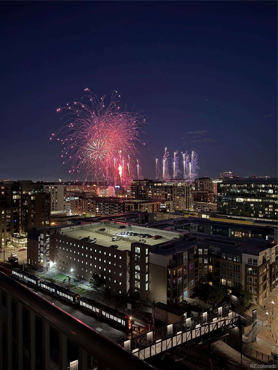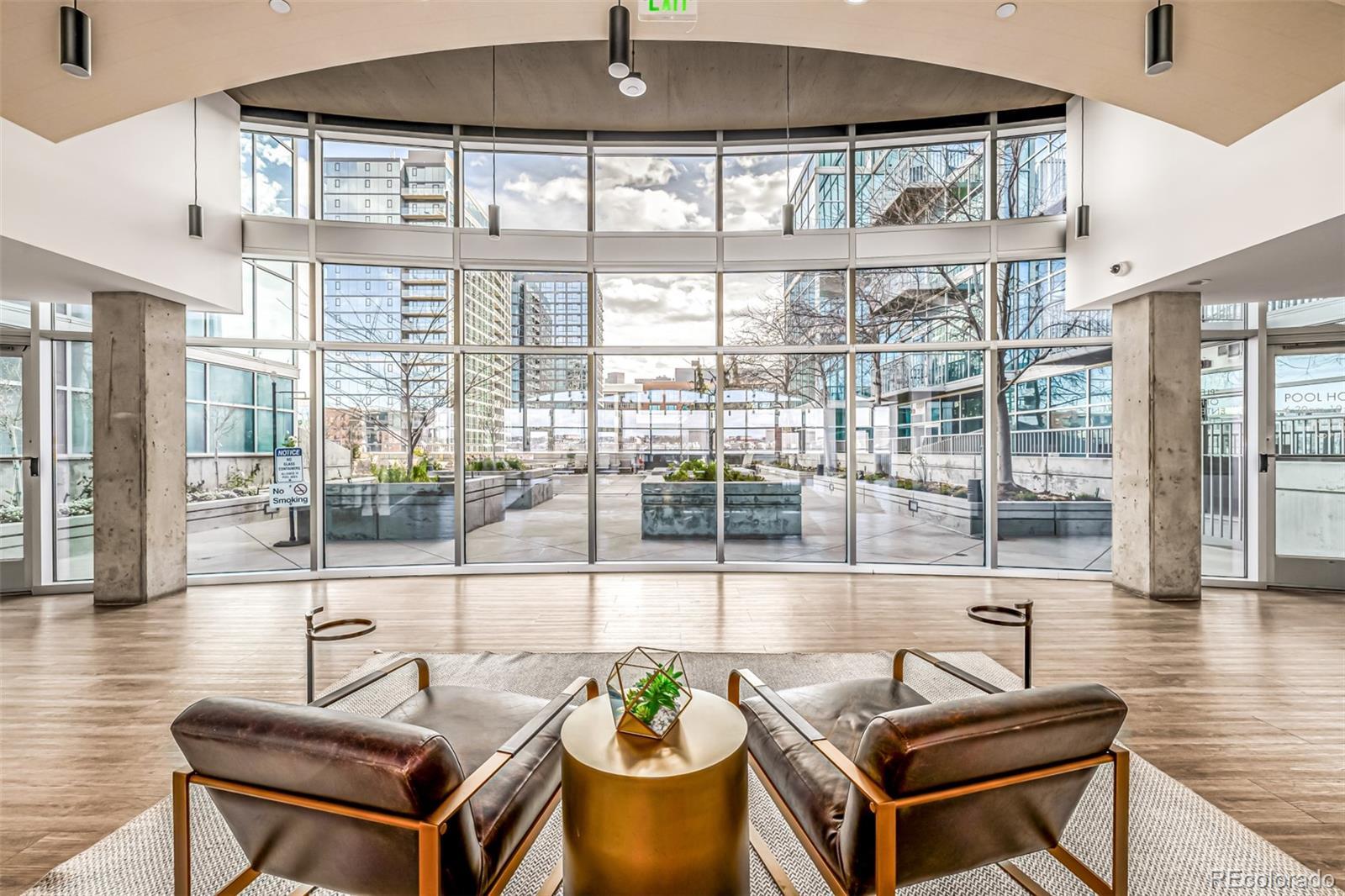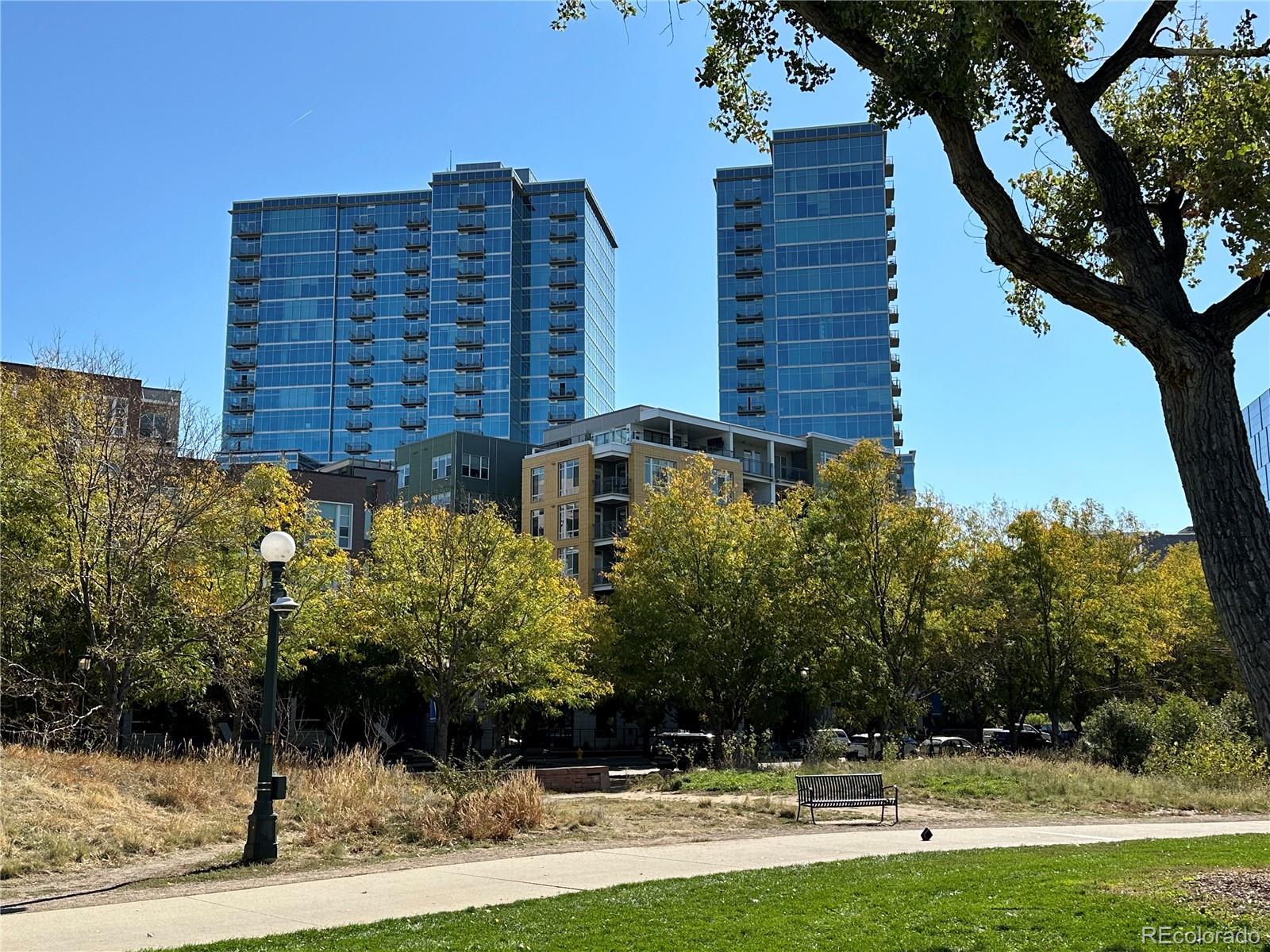 Experience elevated urban living in one of Denver’s most sought-after buildings. Perched on the 14th floor of the Glass House, this beautifully updated residence offers sweeping city views that transform into sparkling living art every night. Over $75,000.00 in improvements have been installed in the condo since being purchased in 2022 for $820,000.00. The new custom kitchen features milled cabinetry, new lighting, new appliances, quartz countertops and backsplash, creating a clean, modern aesthetic ideal for cooking and entertaining. The addition of a custom dry bar with glass-front cabinets and integrated lighting adds both function and style. Rich wood floors, upgraded high end lighting throughout, and a refined layout enhance the overall flow and warmth of the space. This unit is equipped with a leak detection system connected with an auto main water shut-off and YoLink App that immediately alerts you and the building management of any possible water leaks to ensure the condo is safe while you are away. Recent improvements also include a new ThinQ stacked washer/dryer, new hot water heater, and new electric panel. Two deeded parking spaces and an additional storage unit provide exceptional value and flexibility; rare for downtown living. Residents enjoy access to unparalleled amenities: a resort-style pool, vibrant clubhouse, expansive two-story athletic center, concierge services, and on-site security. Step outside to Commons Park, the riverfront trail system, and some of Denver’s best dining, coffee shops, entertainment, and transit options. With its custom upgrades, incredible views, and exceptional price, this home is an opportunity to live in one of Denver’s premier communities. A quick close is preferred.