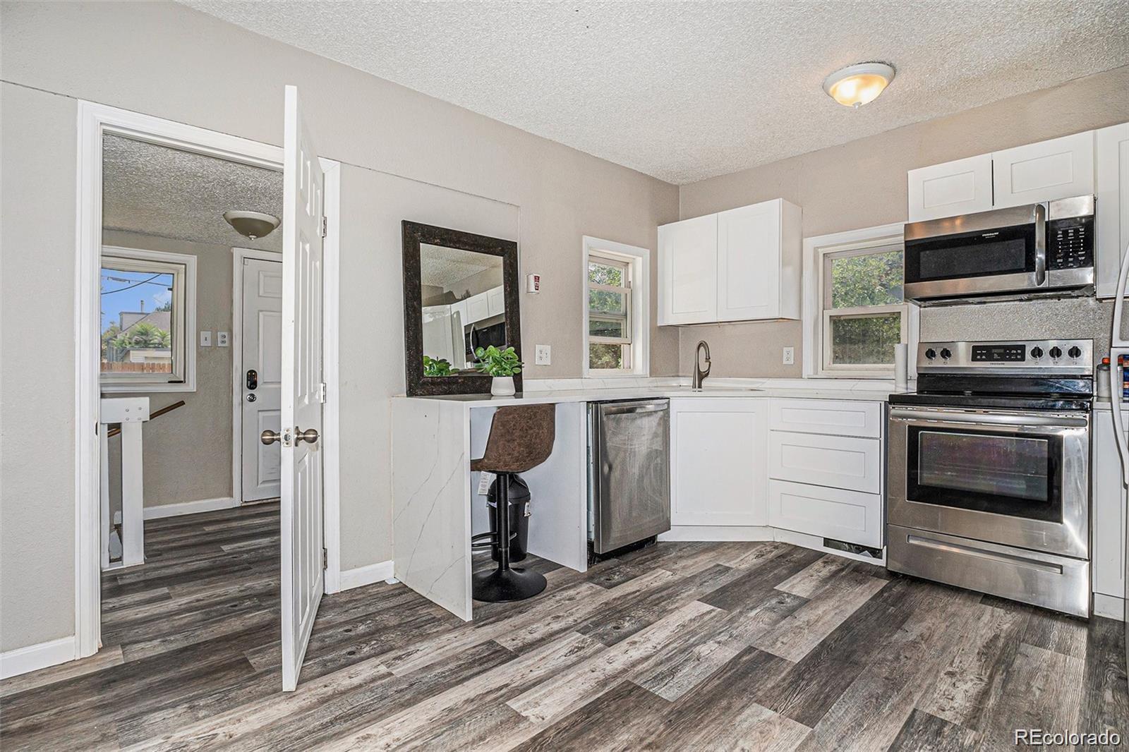 Experience a beautifully updated home that is designed for both comfort and value. This home features a bright, open layout highlighted by new flooring and abundant natural light. The remodeled kitchen boasts sleek quartz countertops, updated cabinetry, and modern appliances. While both bathrooms have been tastefully refreshed with contemporary finishes. Sitting on a generous lot with a large backyard, offering ample space for a dream garden, summer hosting, or the addition of a garage or extra parking. If you enjoy a lifestyle of vibrant dining, coffee shops and boutiques and being close to Stanley Marketplace, UC Health and Central Park all while allowing easy access to Downtown Denver and DIA, you will be sure to have everything you need.