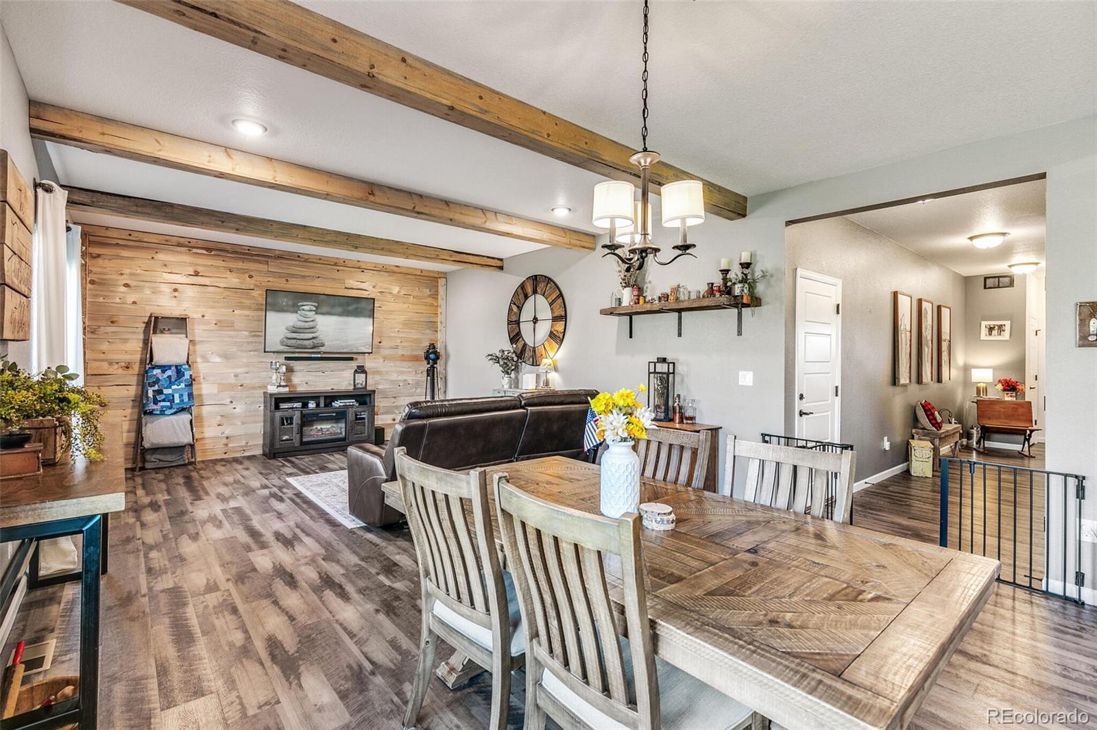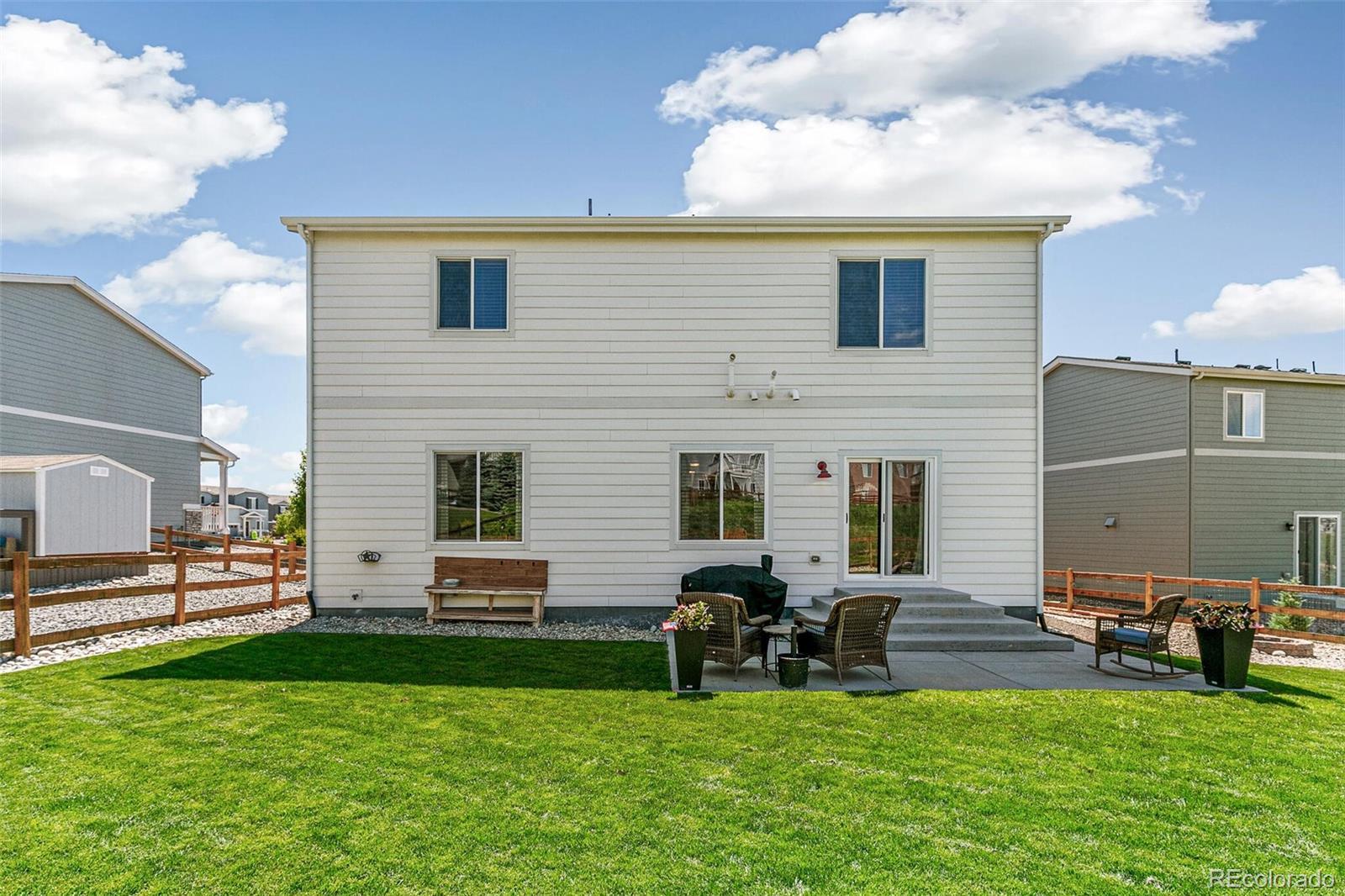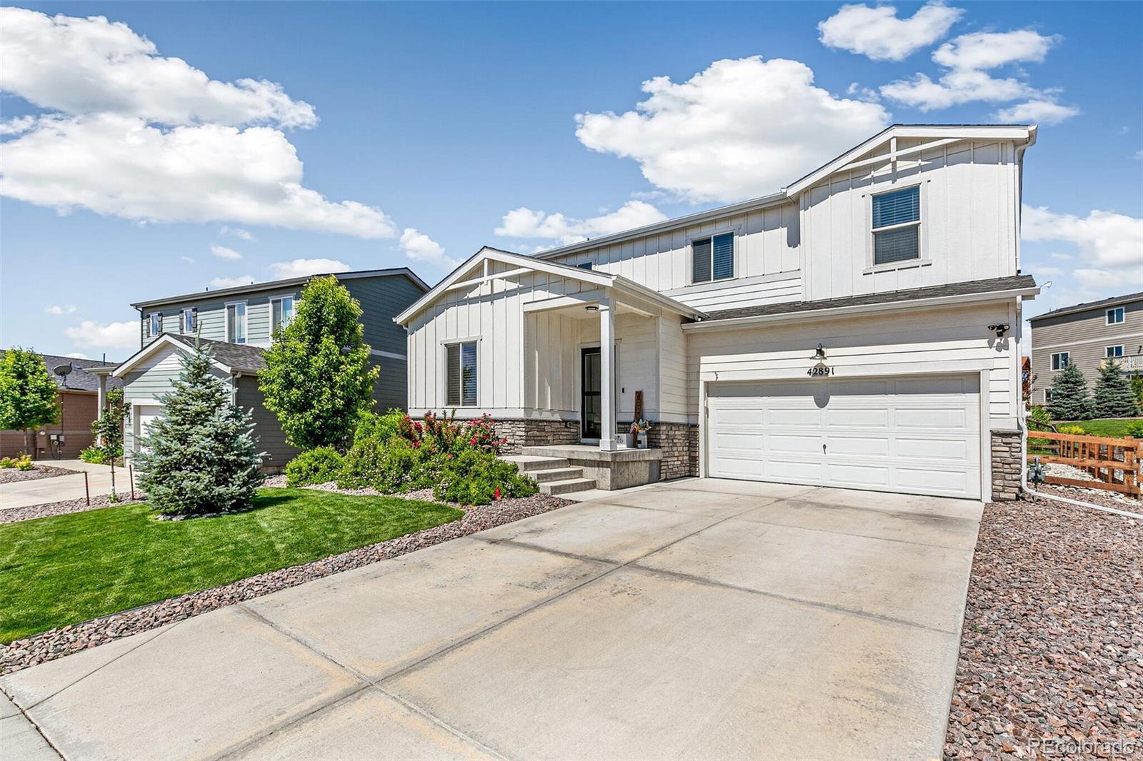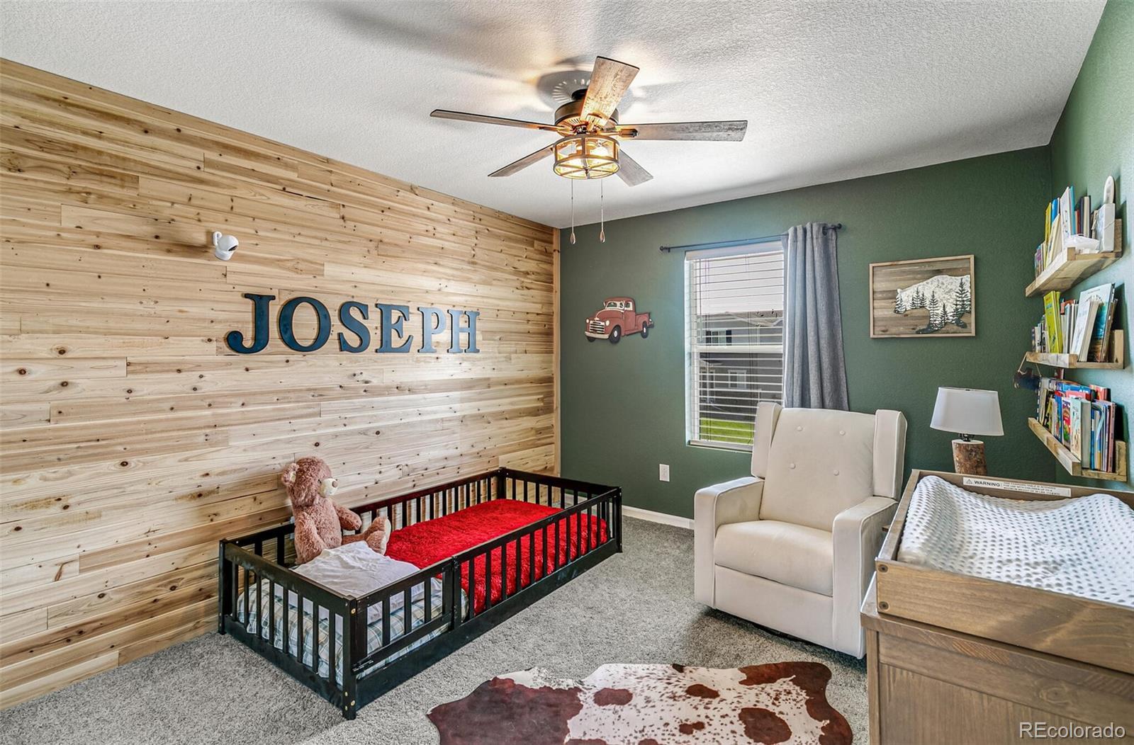 This home is better than new with all it's updating! No need for landscaping and window coverings here! This home has been maintained and upgraded with lots of loving care and displays pride of ownership. Since being purchased, the kitchen has been updated with custom cabinets, quartz counters. Included is a pot rack, and all kitchen appliances, along with a custom, unique cabinet with a bar refrigerator that allows for extra storage and space to display whatever suites your needs. Throughout the main floor you will discover luxury vinyl plank flooring (also in all the bathrooms), a main floor bedroom that is currently used as a home gym, a full bath and an office with great natural lighting and a built in desk. The stairway has been updated with a custom hand railing, metal spindles, a wood wall and a half "barn door" gate at the top of the stairs. New lush carpet has recently (2025) been installed on the stairs and upper floor that your feet will love! The primary bath has a barn door, custom cabinets and a quartz counter as well as two sinks. Other improvements include new sliding glass back door, a whole house water filtration system, a ring doorbell and cameras and a new impact resistant shingle roof (2023). The home owner has a green thumb and the yard is beautifully maintained and features a patio, strawberry garden, built in fire pit and backs to open space. This home says "I live in Colorado". Several parks close by. Lots of summer neighborhood events. Across the street from the Spring Valley Ranch golf course and clubhouse which features great food!