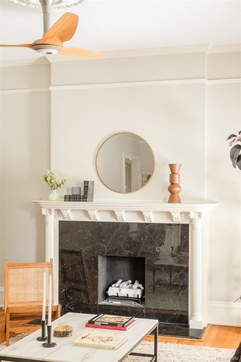 **Seller to pay 6 months of HOA dues with acceptable Offer** Step into timeless elegance in this beautifully preserved home located in Denver’s historic Perrenoud building, built in 1901 by the Perrenoud sisters. This rare gem offers a perfect blend of architectural detail and modern updates. Inside, you'll find a spacious great room and formal dining room, two generous bedrooms, and a luxurious five-piece bath featuring a steam shower, jetted tub, and dual vanity. The updated generously-sized kitchen exudes Nancy Meyers' signature charm and grace and includes an in-unit washer/dryer for convenience. Original details throughout the home such as rich hardwood floors, custom built-ins, vintage lighting, and an ornate fireplace, showcase the building’s historic character. Recent upgrades include fresh paint, newly refinished kitchen floors, and brand-new mini-split cooling/heating units ensure year-round comfort. Enjoy your morning coffee or an evening nightcap on the private balcony. Building amenities include a large fitness room, wine cellar, assigned garage parking as well as attic and basement storage, and access to a serene shared courtyard. The Perrenoud’s architectural grandeur still shines through with its showstopping stained glass atrium, Italian marble entry steps, mosaic tile floors, and one of Denver’s few functioning birdcage elevators. Located in the desirable East High School district and just moments from some of the city’s best spots: Watercourse, Steuben's, Ace, and Marczyk’s Fine Foods and easy access to City Park, Downtown, Cherry Creek, and LoHi.
