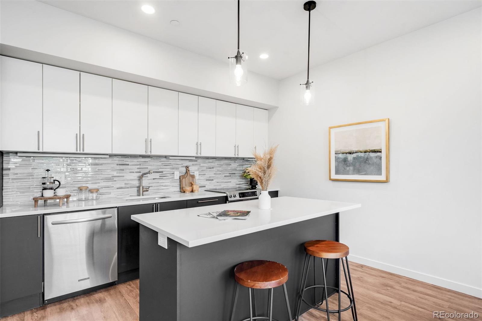 Welcome to 2640 Central Ct Unit 203, a stylish 2-bedroom, 2-bathroom condo in the heart of Denver’s sought-after LoHi neighborhood. Designed for modern city living, this home features an open floor plan with a fully upgraded kitchen and bathrooms, stainless steel appliances, and smart home functionality including lighting, a front door lock, and Hunter-Douglas PowerView blackout shades for both the primary bedroom and the second bedroom's skylight. The living room centers around an electric fireplace and offers access to additional blackout shades for comfort and privacy. The primary suite includes an en-suite bathroom with a double vanity and a walk-closet providing generous storage. Additional highlights include an in-unit washer and dryer, brand new $17K furnace, tankless water heater, and one assigned parking space. Enjoy your own designated rooftop deck area with city views, just steps from neighborhood favorites like Avanti, Recess Beer Garden, Kawa Ni, and My Neighbor Felix. Perfect for the ultimate urbanite or a savvy investor looking for strong rental potential in one of Denver’s most walkable communities.