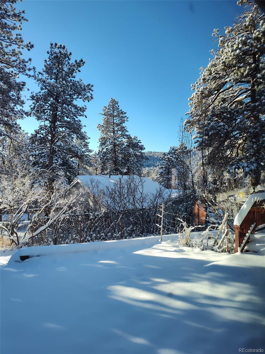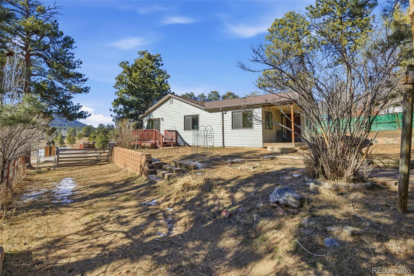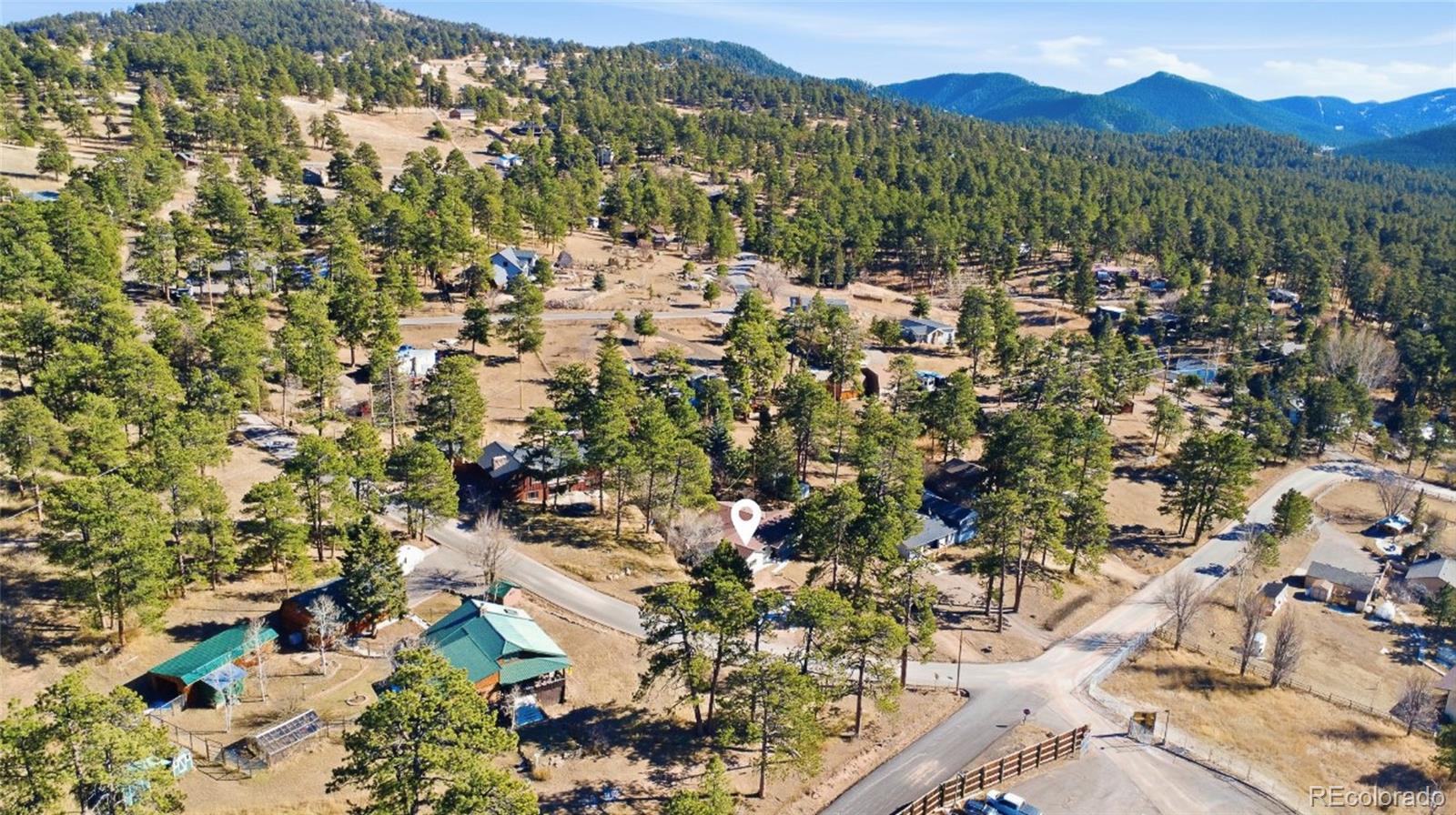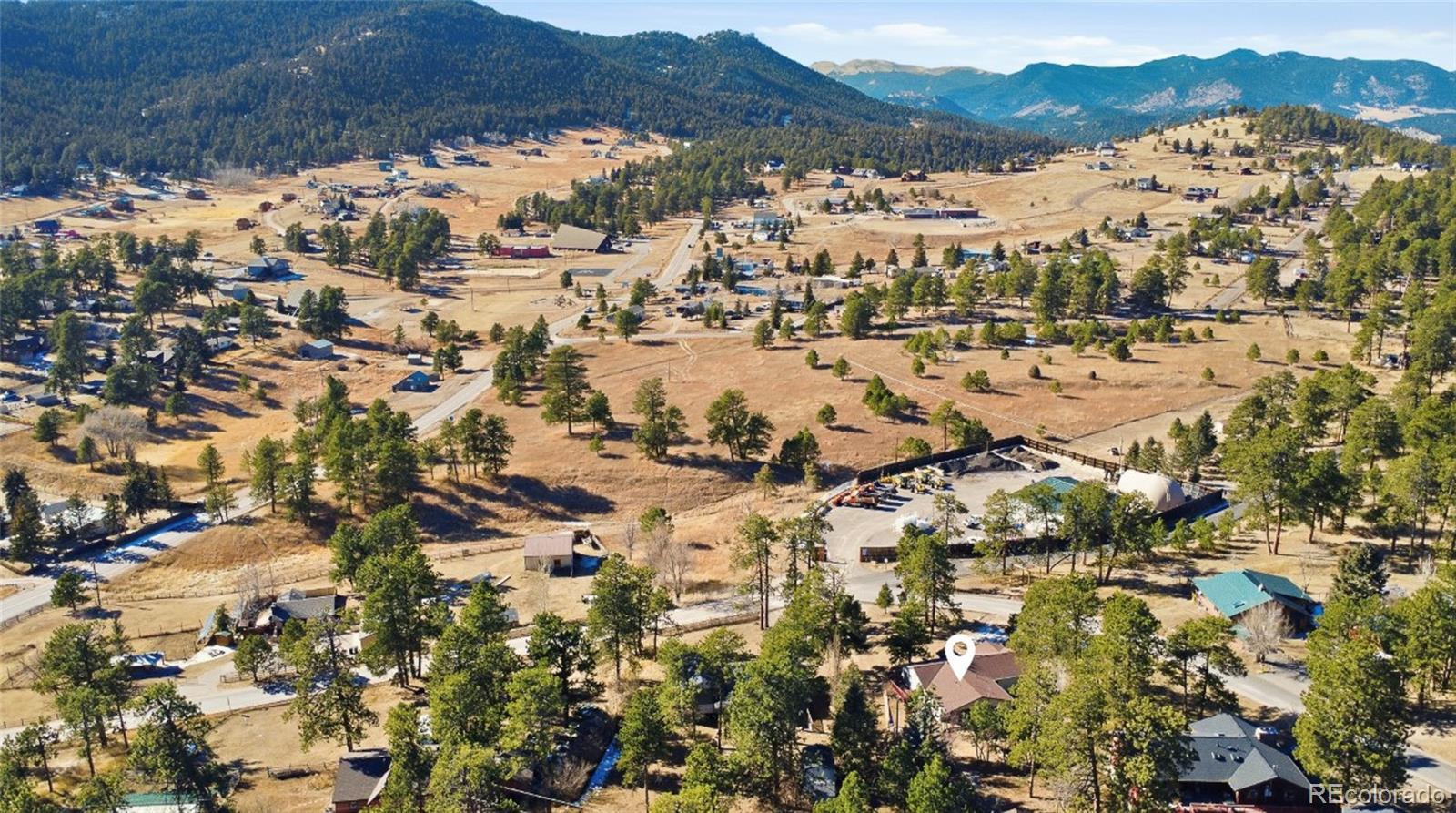 Welcome to beautiful Indian Hills, where mountain living meet convenience! Sitting on over half an acre, 23094 Oh-Kay Road is a lovely one story, three bedroom, two bathroom home with tons of room to expand! Step inside to the open floor plan with endless possibilities. Custom maple cabinets and a large island compliment the open kitchen. Natural light pours into the main living space, from dawn to dusk. The large primary bedroom offers an en suite bathroom and a walk-in closet. Built-in maple shelving is at the front entryway and in a bedroom as well. There is a drop-down ladder for attic access to store your holiday/seasonal items. The washer and dryer are included in the sale, along with the chest freezer. A large driveway allows you to bring your RV's, fifth wheels or campers! True mountain views surround the property, and you can enjoy your morning coffee or dinner a la Fresca on the side deck or covered back porch! A new roof with Class 4 Impact Resistant architectural shingles. and new siding were completed in 2023. No pesky HOA forcing any rules or regulations on you either! In the backyard you will find a cabin with electricity, a refridgerator and a fireplace. This space would serve as a fantastic workshop, or could be converted to more with a little creativity! Below the cabin, in the berm area there is additional storage. There is also a small outhouse for the super adventurous folks! Two sheds, one out front and one out back offers tons of storage for your tools and toys. Smooth Winter drives are complimented by the well-maintained and newly paved road, right along the school bus route. Wildlife roams this area all year long, four seasons out of the year. You will be greeted by elk, deer, foxes, falcons and everything in between! Only a five minute drive to Highway 285, this home offers dreamy mountain living with the convenience of suburban life! Lastly, this home is on the road to Mt. Falcon- one of the best Foothill hiking spots close to Denver!
