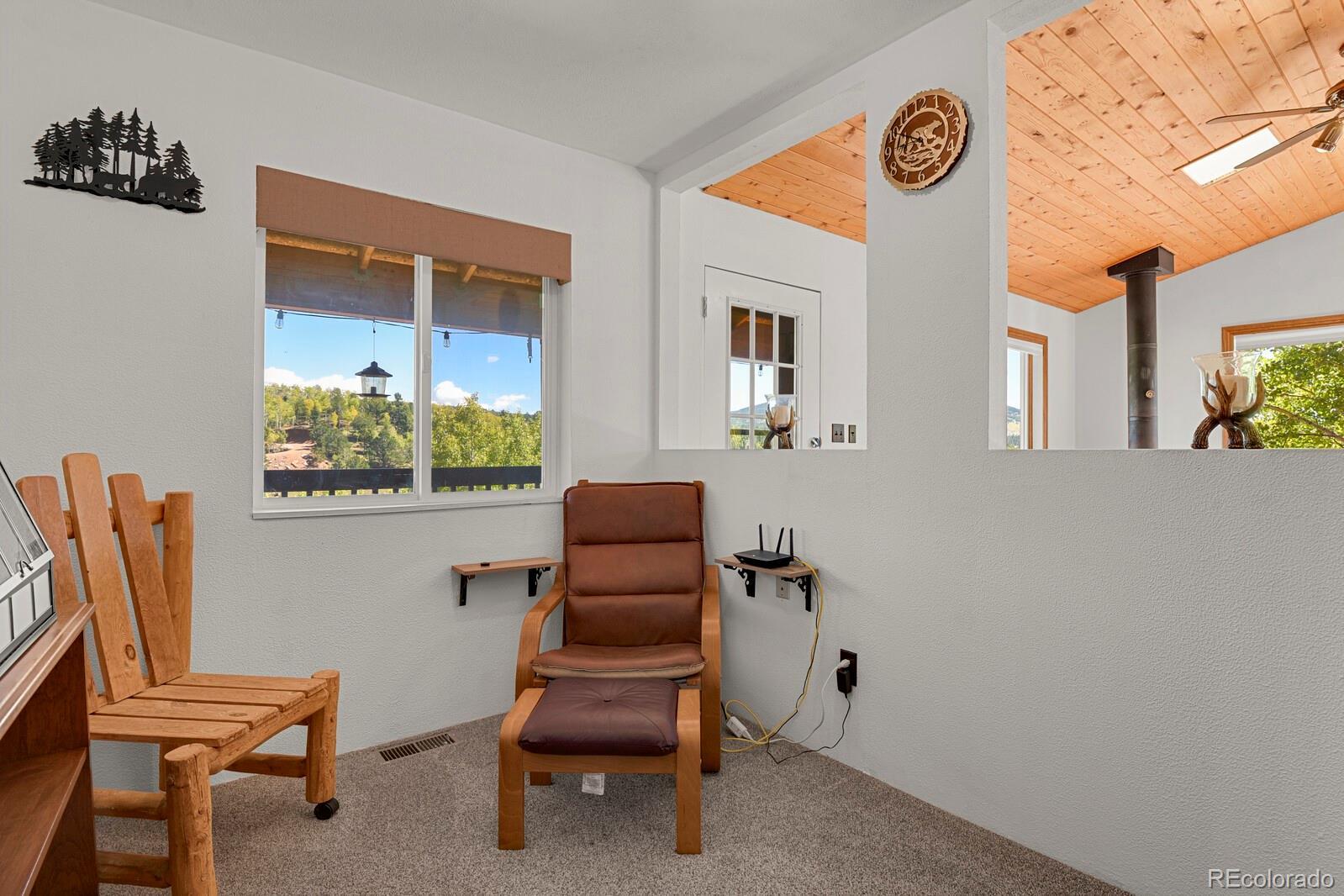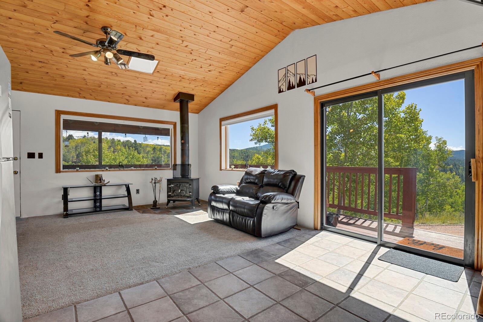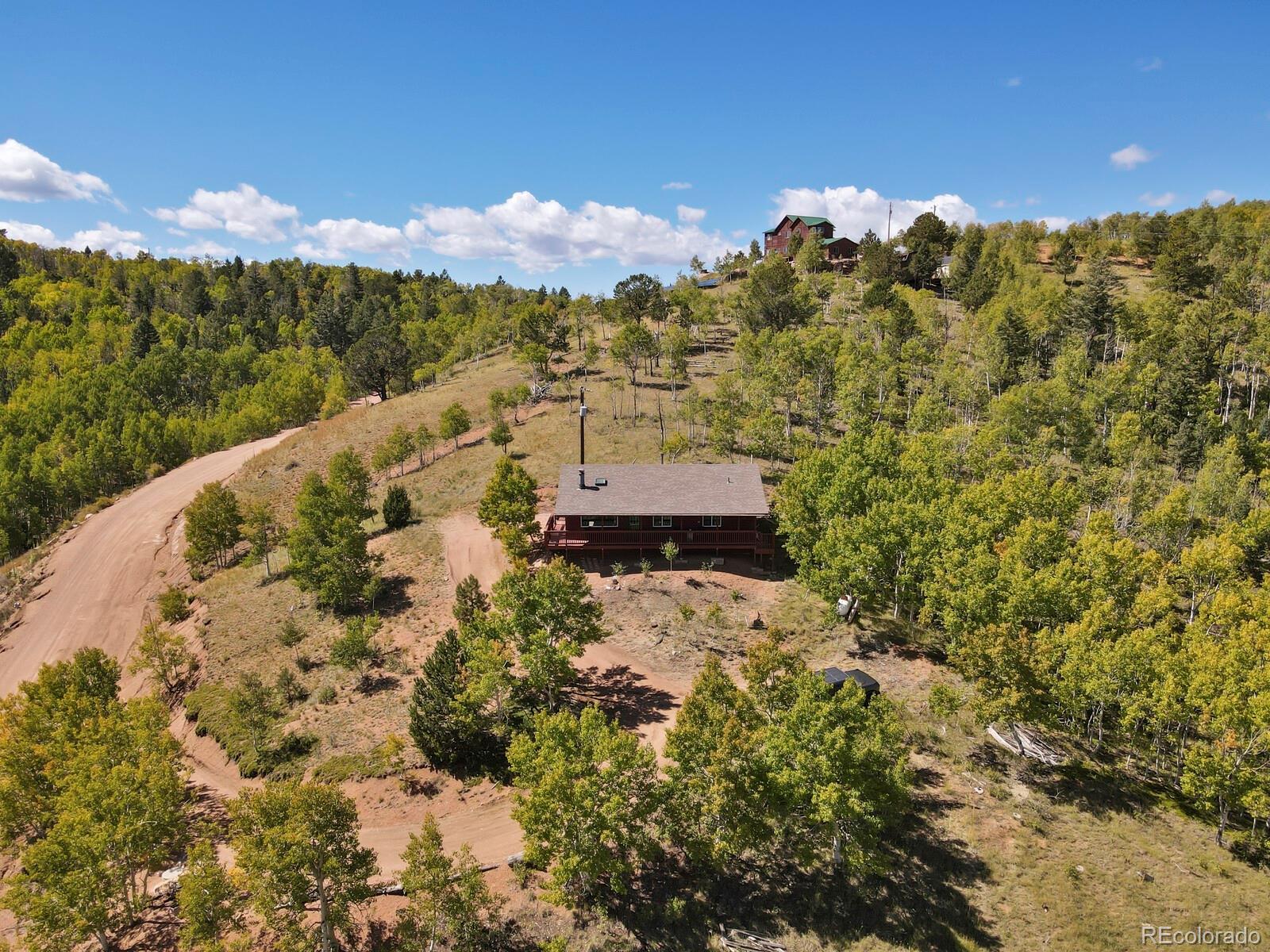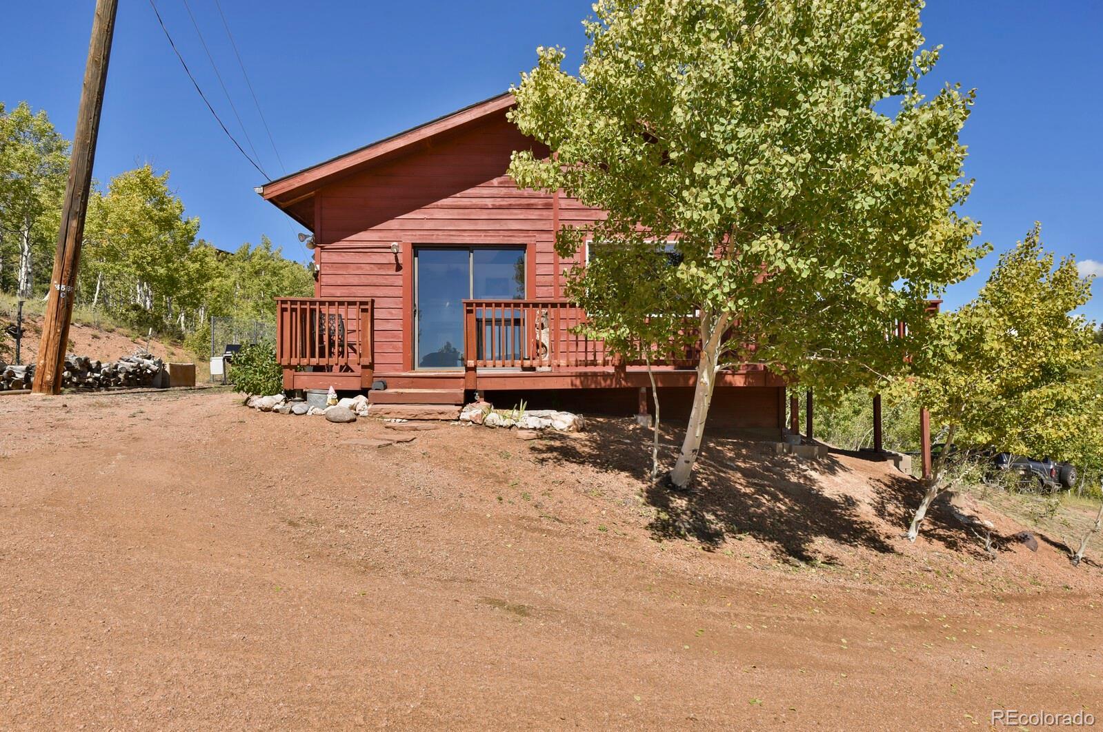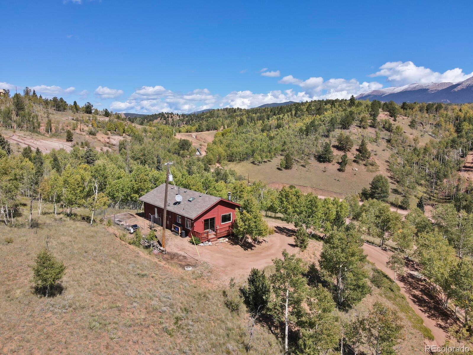 Enjoy peace and quiet in this fantastically located mountain property. On just over an acre this lot has sweeping views of the mountains and the aspen grove below. Picture windows in the living room allow you to enjoy the view from the comfort of your living room. This home has new appliances in the kitchen, has been freshly painted and is move in ready. The furniture is available to stay at the request of the new owners. The driveway has been freshly grated and the septic will be serviced prior to closing. Woodland Park is a quick 25 minutes and Cripple Creek is only 10.