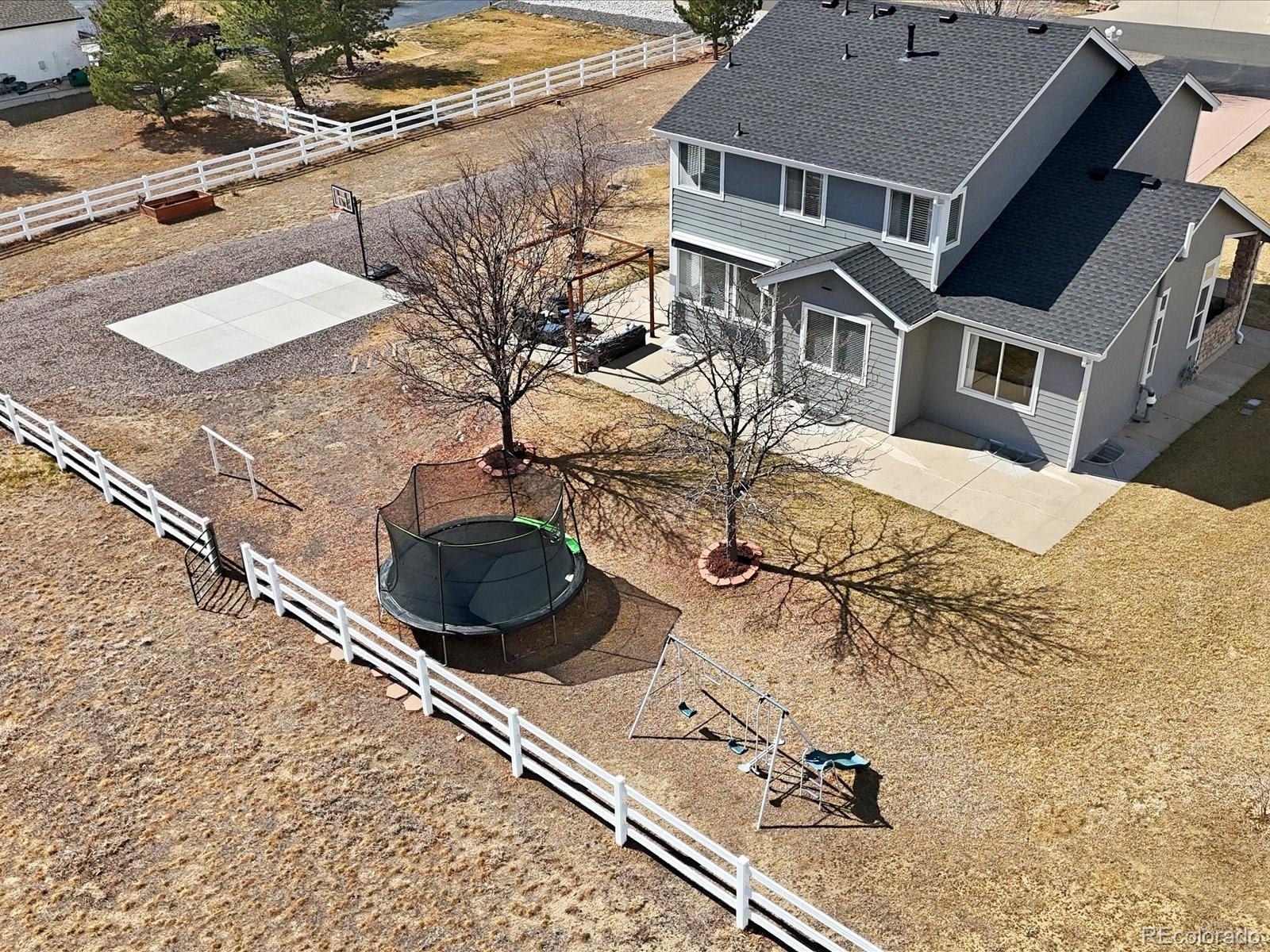 Welcome to your own slice of Colorado country living in the Todd Creek Farms community. This beautifully maintained home sits on a fully fenced and highly usable 2-acre horse property with arena space, wide-open views, and room to truly enjoy the outdoors while still being just a short drive from everyday conveniences. Inside, the home features an open and inviting floor plan with vaulted ceilings, abundant natural light, and high-end wood flooring throughout the main living areas. The kitchen, remodeled in 2022, includes stainless steel appliances, soft-close cabinetry, under-cabinet lighting, and thoughtful upgrades throughout. The main level offers a warm and functional layout featuring a fireplace, a breakfast and coffee nook, bar area with a mini refrigerator included, a sitting area, and a private office. Additional conveniences include an updated half bathroom, linen closet, and a laundry area with washer/dryer included. The spacious three-car garage offers excellent storage. Upstairs you will find 4 bedrooms and a full bath with tile flooring, granite countertops, double sinks, and a linen closet. The primary suite is filled with natural light from large windows and features a five-piece ensuite bathroom with dual sinks, a soaking tub with a window for natural light, and a walk-in closet with built-in organization. The finished basement expands the living space with a 5th bedroom suite and full bathroom with double sinks, a large bonus room perfect for an additional office, exercise space, or playroom, generous storage including under-stair storage, and both a sump pump and radon mitigation system already installed. Outside, the property offers incredible space and flexibility with a large fenced yard, mature trees, patio area, and plenty of usable land for horses and outdoor activities. A rare opportunity to own a spacious horse property with modern updates, usable acreage, and peaceful surroundings in Todd Creek Farms.