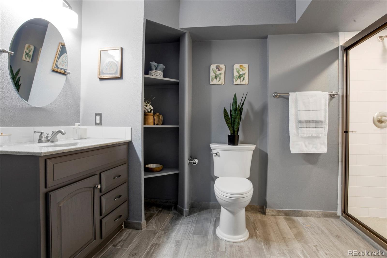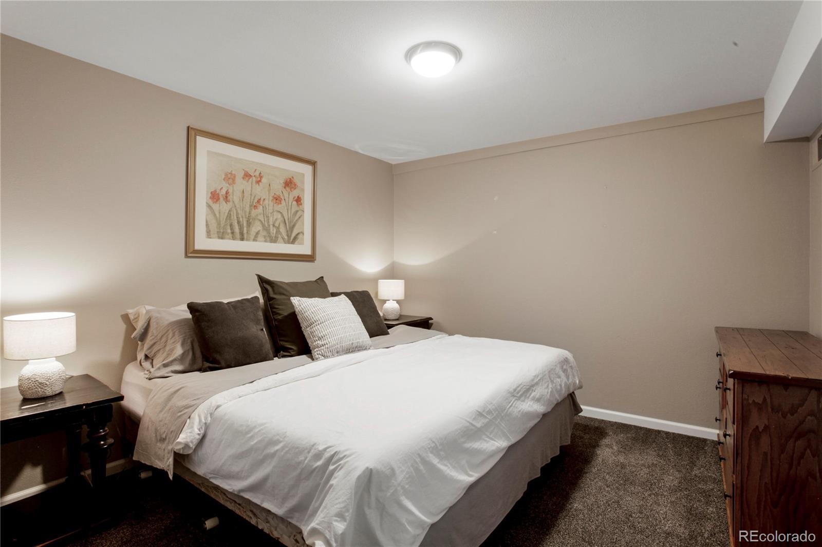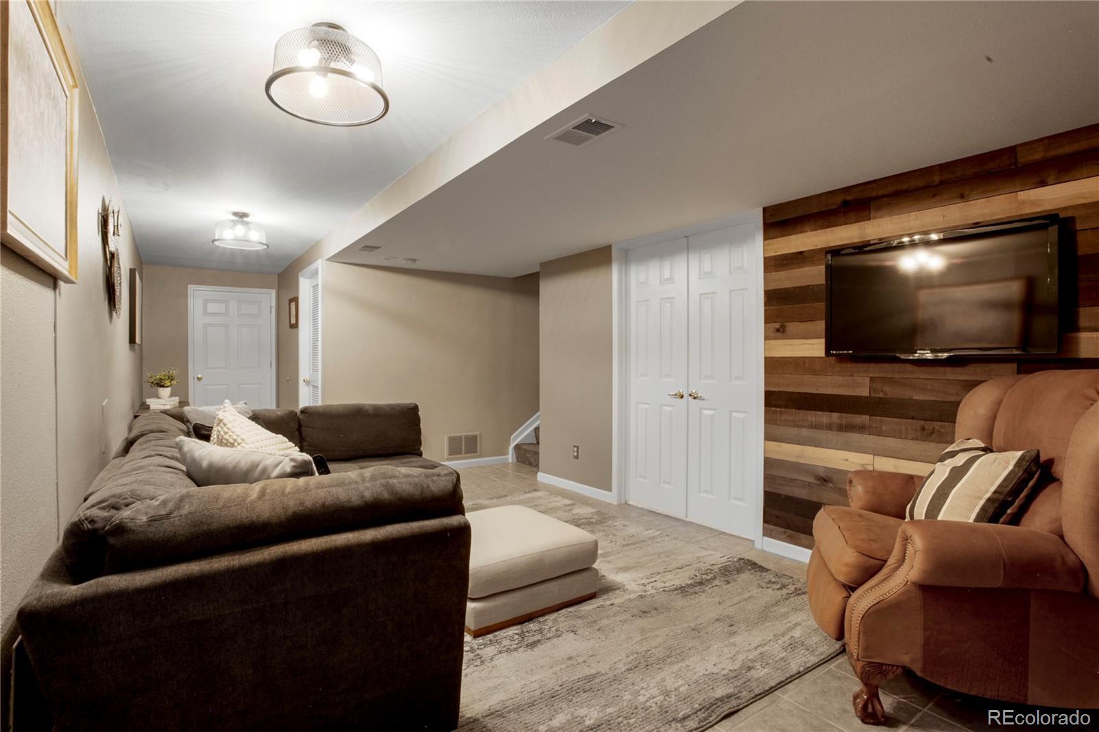 Stylishly remodeled ground level ranch-style condo with finished basement located in the highly desired Summer Hill complex. This beautifully updated and meticulously maintained condo has a fully finished basement and has the look and feel of a townhome. This rare end-unit offers main-level living, lock and leave convenience and a bright open layout with upscale finishes throughout. The southern exposure allows natural light to flood the home creating a warm and uplifting ambiance. The remodeled kitchen is a showstopper, featuring quartz countertops, navy shaker-style cabinetry, high-end stainless-steel appliances, and updated lighting. Rich hardwood floors, wide-slat shutters, and crown molding enhance the main level, where an open-concept dining and living area is anchored by a striking stacked-stone fireplace. The spacious primary bedroom and updated full bath are also on the main level, along with a dedicated main floor office. The finished basement offers newer carpet, a cozy family room, a large bedroom with en suite bath, laundry area, and a flexible bonus room perfect for guests, a gym, or a second home office. Step outside to your private deck off the primary bedroom-perfect for morning coffee or evening sunsets with views of the open green space. This home also features a newer furnace and water heater, with recently updated roof and siding by the HOA for added peace of mind. A dry-walled, detached garage and nearby guest parking add convenience. Bonus: Phase 1 residents enjoy exclusive access to a private HOA pool. Close to local trails including Willow Creek and High Line Canal, plus shopping, dining, and the Dry Creek Light Rail Station - this home offers the ideal combination of comfort, style, and accessibility. Could also be an ideal fully furnished rental property as seller is willing to sell the majority of furnishings and furniture, outside of the staging items being used.