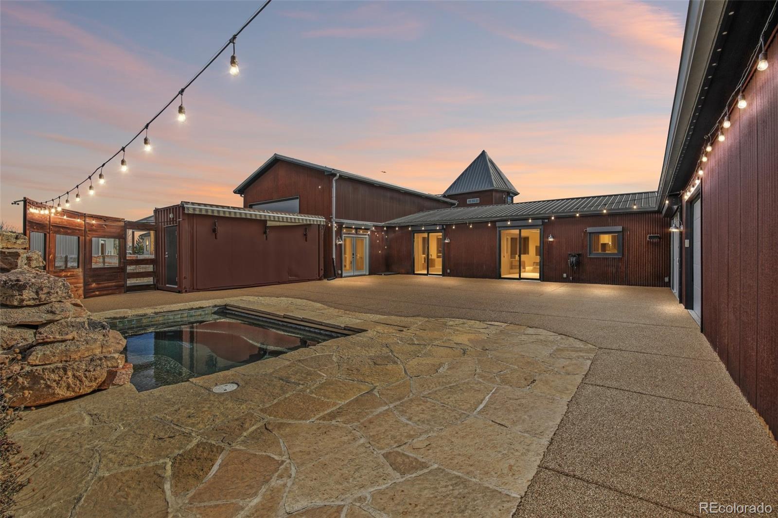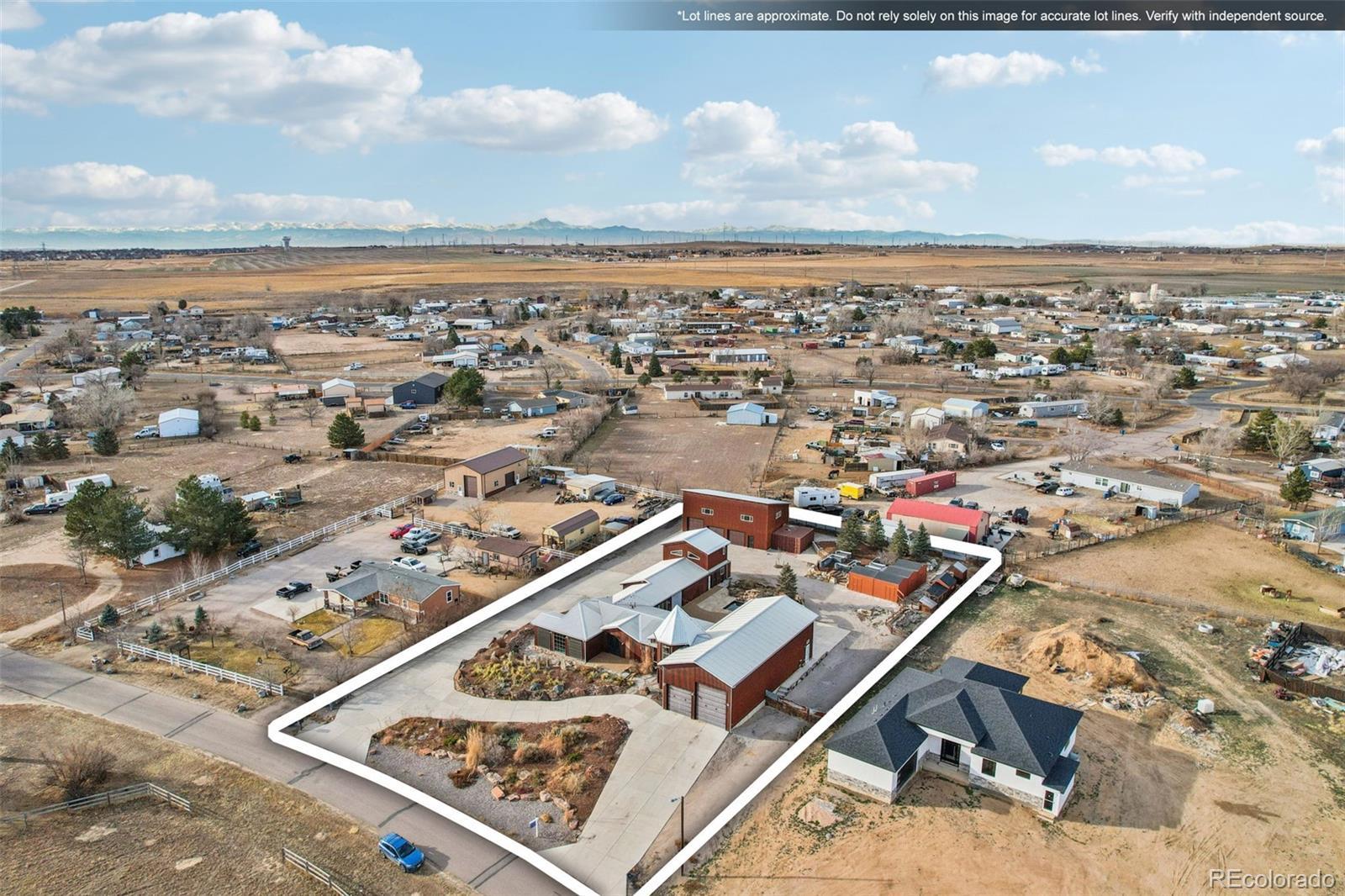 Experience the unmatched lifestyle of 318 Lilac Dr - an extraordinary 1-acre compound in Lochbuie blending versatility, craftsmanship & resort-style outdoor living. With approx. 5,092 sq ft of total living space, including a 1,400 sq ft legal ADU, this 1-of-a-kind estate is ideal for multigenerational living, creative work or serious hobbyists. The main residence offers over 3,200 sq ft w/Italian tile floors, Restoration Hardware lighting & blacksmith-forged details throughout. A chef’s kitchen anchors the home with Sub-Zero refrigeration, Wolf range with pot-filler, drawer freezers, raised dishwasher, microwave drawer & a leather surfaced granite island. Additionally, there is a separate dedicated apothecary kitchen with dust-filtration - ideal for herbal work or clean prep. The primary suite features a copper clawfoot tub, zero-entry shower, heated floors & a walk-in closet doubling as a boutique dressing space. A reverse osmosis heated jet pool with moss rock waterfall & auto-cover anchors the EverStone 3400 sf patio, framed on three sides by oversized glass walls & doors from the kitchen, living & hall for a U-shaped view & seamless indoor/outdoor access. Automated roll-down shades enhance comfort & efficiency, while JellyFish lighting wraps all structures with programmable ambiance. A retrofit shipping container bar/kitchen serves the pool. A stream borders the yoga/meditation room off the primary wing, overlooking an irrigated pollinator garden. Elsewhere: raised beds, mature trees & a separate duck pond near stealth chicken coops & 4 storage sheds. Over 4,000 sq ft of garages/shops include a pull-thru RV bay with 14' doors, shop baths, hot/cold water, heated/insulated bays, & 320-amp power. All buildings have 24-gauge metal siding, standing seam metal roofs, and high-clearance insulated doors with flush-mount LiftMaster openers. Just a minute from I-76 & 30 min to DIA, with no HOA and livestock-friendly zoning, this turnkey compound delivers!