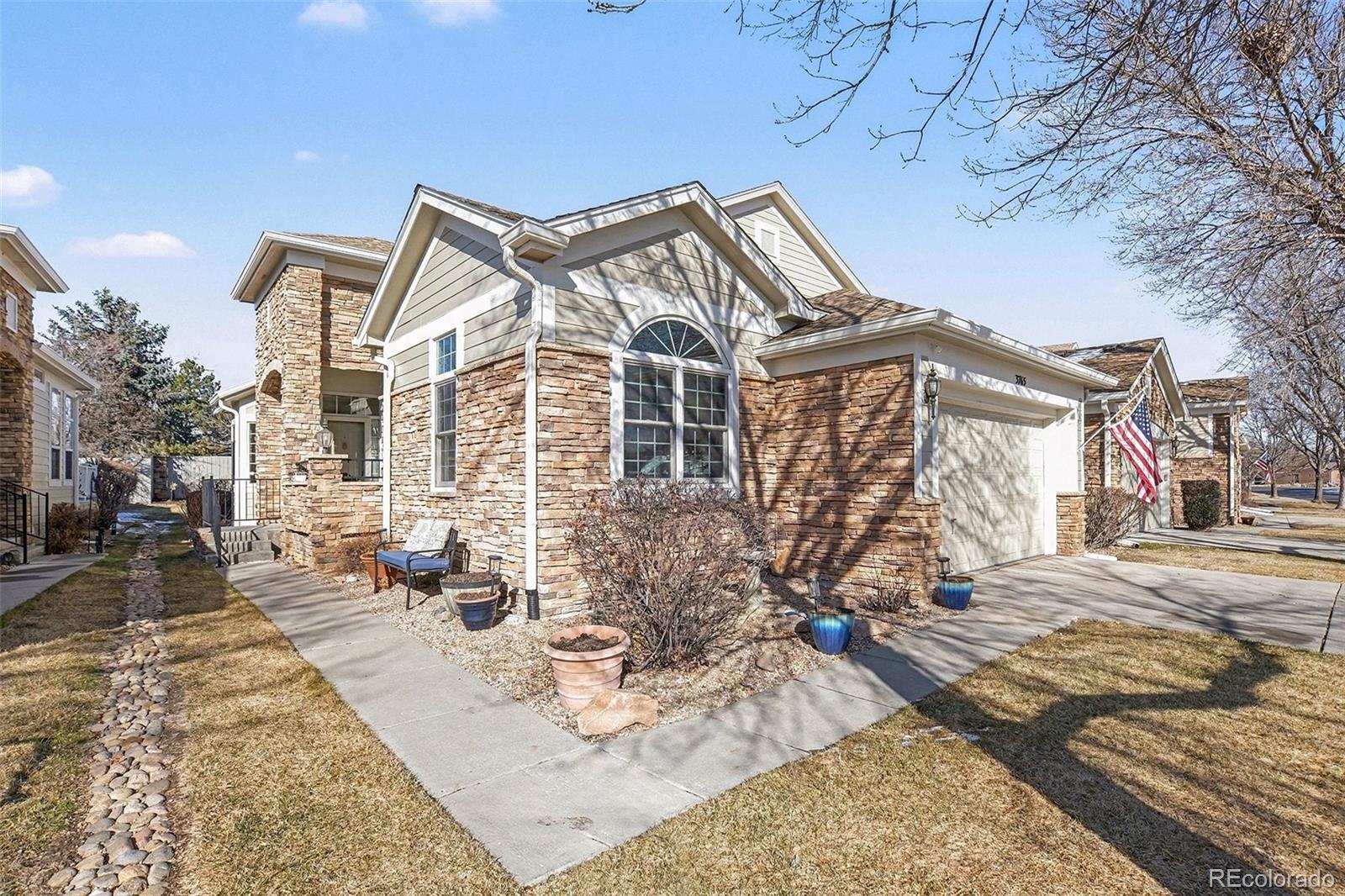 Welcome to this beautifully updated duplex-style ranch townhome in highly sought-after Emerald Estates! This end-unit offers the perfect blend of privacy, comfort, and convenience — all just steps from the scenic East Lake Nature Preserve and walking trail. Enjoy low-maintenance living with a strong, proactive HOA that covers exterior maintenance, lawn care, snow removal, water/sewer for common areas, and more. Inside, you're greeted by abundant natural light, warm southern exposure, and generous living spaces with stylish plank flooring. The open-concept layout features a cozy gas fireplace, a functional breakfast bar, and a spacious kitchen perfect for everyday living or entertaining. The primary suite includes a large bedroom, 5-piece en-suite bath, and a roomy walk-in closet. The partially finished basement expands your living space with a versatile rec room, home gym or media area, an additional bedroom with egress window and walk-in closet, and another 3/4 bath. Don’t miss the large utility room and easily accessible crawl space—ideal for extra storage. Step out onto your private back patio that opens to a grassy area—one of the few units offering this rare feature. Most windows have been upgraded to energy-efficient Andersen replacements, and the home boasts a new roof, exterior paint, and water heater—all updated in 2025. The community is quiet, beautifully maintained, and full of mature trees. Enjoy access to a pool and hot tub just a block away, plus nearby shopping, dining, and the light rail less than a mile away. With ample closet space, a dedicated laundry/mud room, and an attached 2-car garage, this townhome truly has it all.