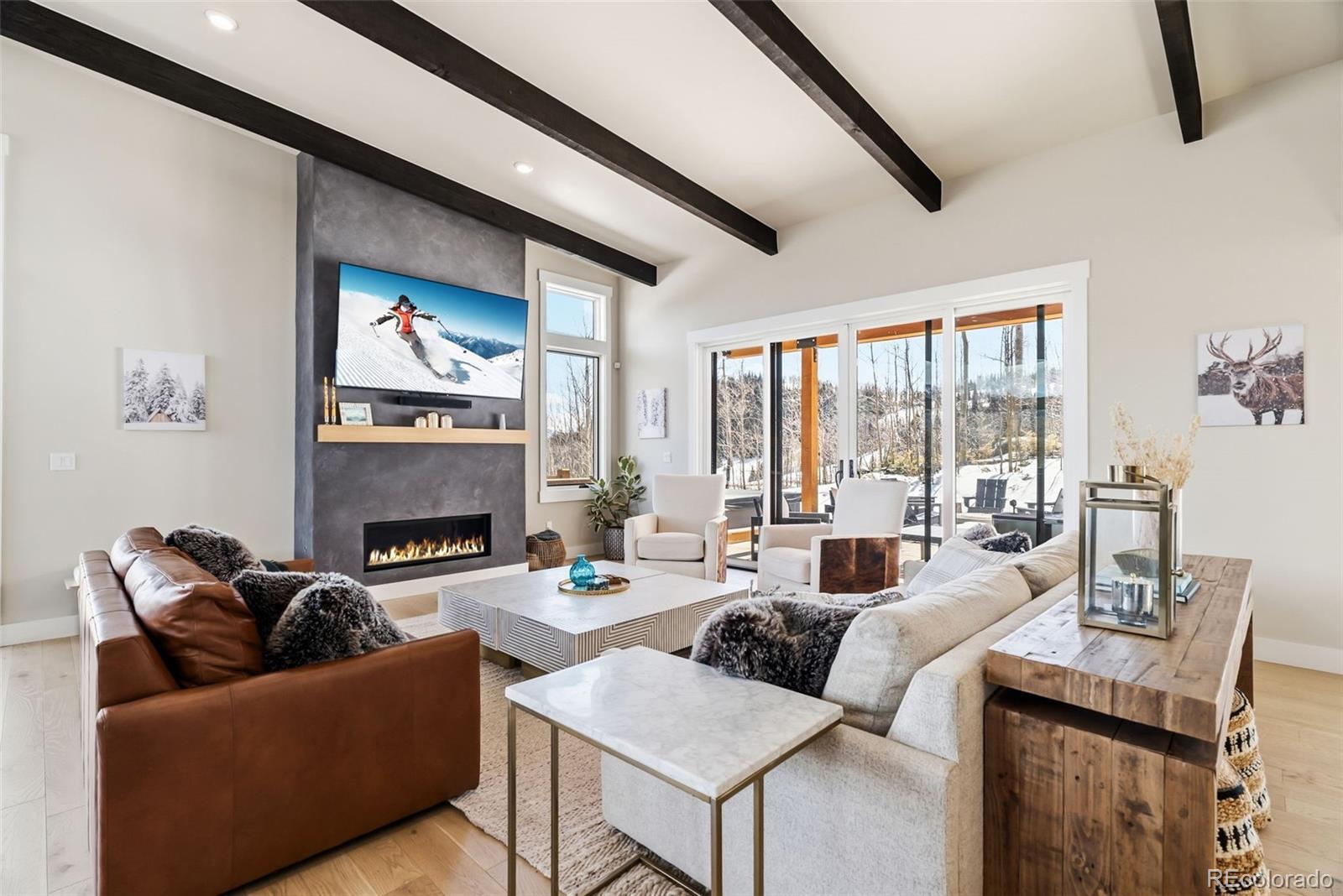 Positioned on one of the most exceptional homesites in Summit Sky Ranch, 283 McKay Road sits on a nearly 2 acre estate lot bordering National Forest with sweeping 360 degree mountain views. From the Williams Fork Range to peaks of the Gore Range, Keystone, and expansive down valley vistas, the setting is truly remarkable. Designed to capture its surroundings, the home features open living spaces where the kitchen flows seamlessly into the dining and living areas, framed by expansive windows and mountain light. Sliding doors open to a covered outdoor living area with a fire pit, creating a completely private space to gather after a day in the mountains. A second deck for outdoor dining and a pathway leading to a peaceful seating area provide additional places to take in the surrounding views. Four bedrooms offer exceptional flexibility, with three functioning as private suites with ensuite bathrooms. The nearly two acre property has been thoughtfully landscaped to complement the natural surroundings, including a waterfall feature that will fully emerge once the snow melts. Homesites of this size are rarely available in Summit Sky Ranch, and the direct National Forest boundary ensures lasting privacy and protected views. The nearly two acre property offers a sense of space and quiet that is difficult to find in Summit County, while still being minutes from Silverthorne, Keystone Resort, and Breckenridge. Owners also enjoy access to Summit Sky Ranch amenities including the Aspen House clubhouse, year round heated pool and hot tubs, fitness center, Everist Lake, Blue River fly fishing access, and miles of private trails.