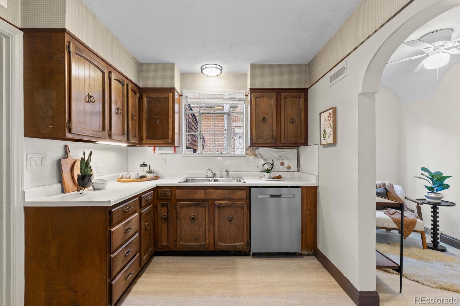 This Hilltop Tudor-style brick home has been owned by the same family since 1963! Built in 1938, it still features much of its original style and charm, including arched doorways and hallway nooks. It sits on a corner lot in the heart of Hilltop, blocks from Cranmer Park, Denver Tennis Club, Trader Joe's, and 9+CO, with easy access to Cherry Creek shopping and dining. The main floor has three bedrooms, one nicely sized for an office, as well as a full bathroom, kitchen, spacious dining room, and additional space between the kitchen and dining room, perfect for a breakfast nook, mini-library, or even a butler's pantry! The basement is large, with a den and two potential bedrooms, but in need of some work. The seller has made a few updates - flooring and paint on the main floor, as well as some HVAC and plumbing improvements - but much of this classic Denver home is ready for a new owner to make it their own.