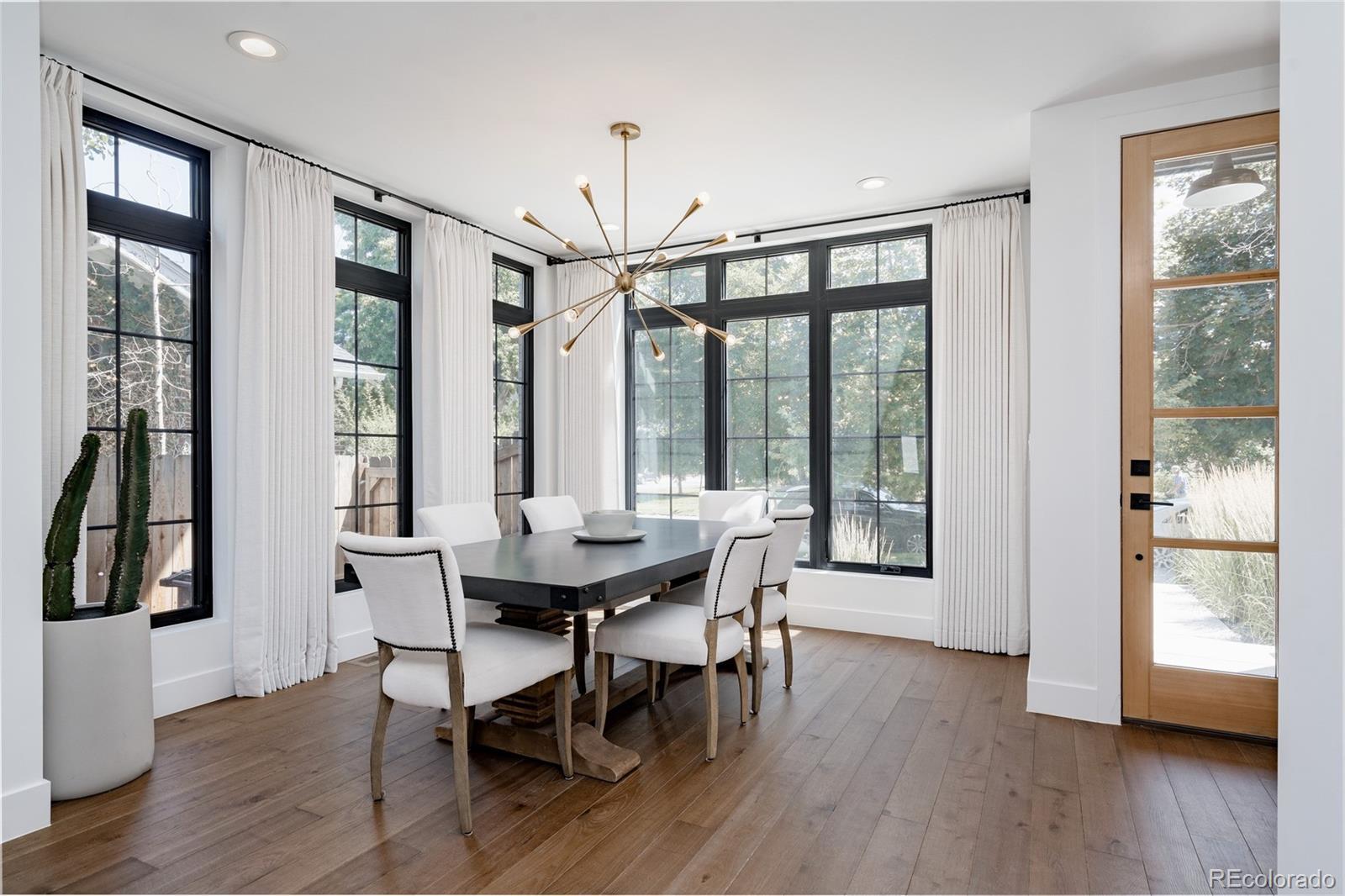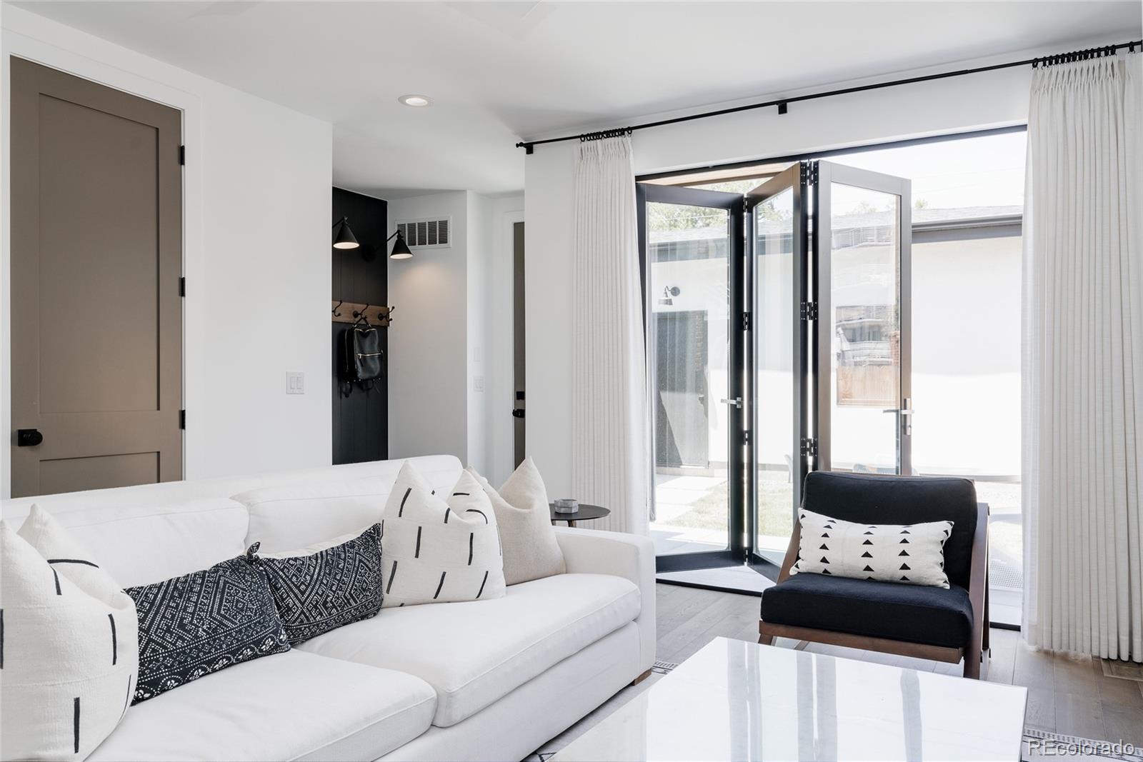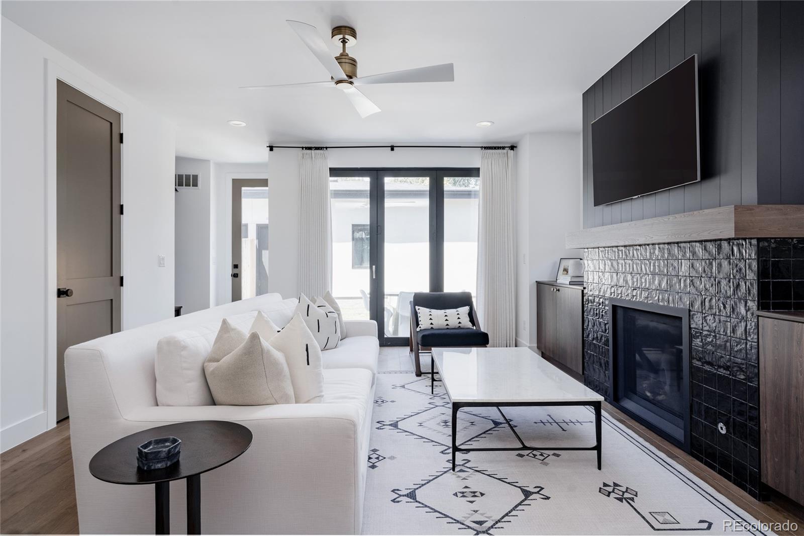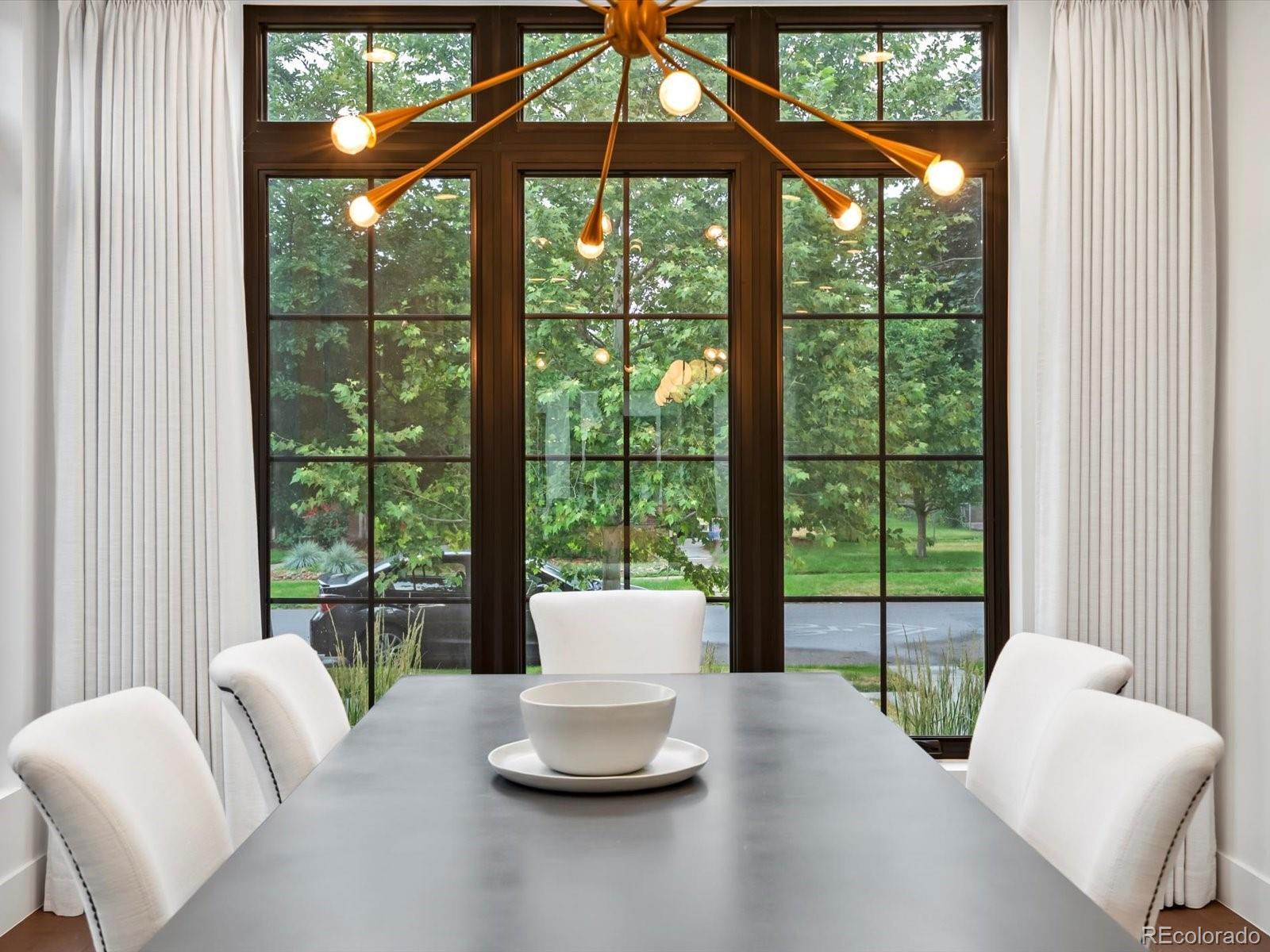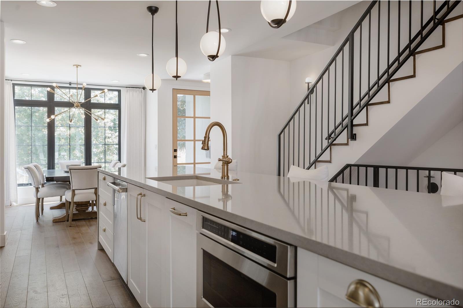 Welcome to your modern oasis in the heart of Congress Park - one of Denver’s most beloved and walkable neighborhoods. This stunning, design-forward duplex offers the perfect blend of luxury, functionality, and location. From the moment you step inside, you’ll feel the quality of craftsmanship and intentionality of the layout. The main floor welcomes you with high ceilings, natural light, and a seamless open-concept design. At the front of the home, a designated dining area makes hosting dinner parties effortless. The kitchen is a chef’s dream, outfitted with luxury stainless steel appliances, a large center island for gathering, pendant lighting, and abundant cabinetry. Just beyond, your living room is anchored by a statement fireplace and glass doors that open to a private backyard. Your detached two-car garage offers space for both vehicles and gear. Upstairs, retreat to your primary suite, a spacious walk-in closet, and a luxurious 5-piece en-suite bath. You’ll love the double vanities, designer fixtures, and the show-stopping shower and soaking tub combo. This level also includes a second bedroom with its own en-suite bath, as well as a laundry room perfectly positioned for ease. Designed for entertaining, the third level has a large flex space complete with a wet bar and outdoor entertaining area. A third bedroom and full bathroom provide privacy and comfort for guests or a remote work setup. Step out onto the private rooftop deck and take in the views. Need even more space? Head downstairs to the fully finished lower level, which offers versatile square footage for a home gym, rec room with another wet bar, and even an additional guest suite and full bathroom. All of this is wrapped in a modern exterior with clean lines and thoughtful landscaping. Located in one of Denver’s most central, connected neighborhoods — minutes from Cherry Creek, City Park, and Downtown — this home is the perfect combination of style, substance, and location.