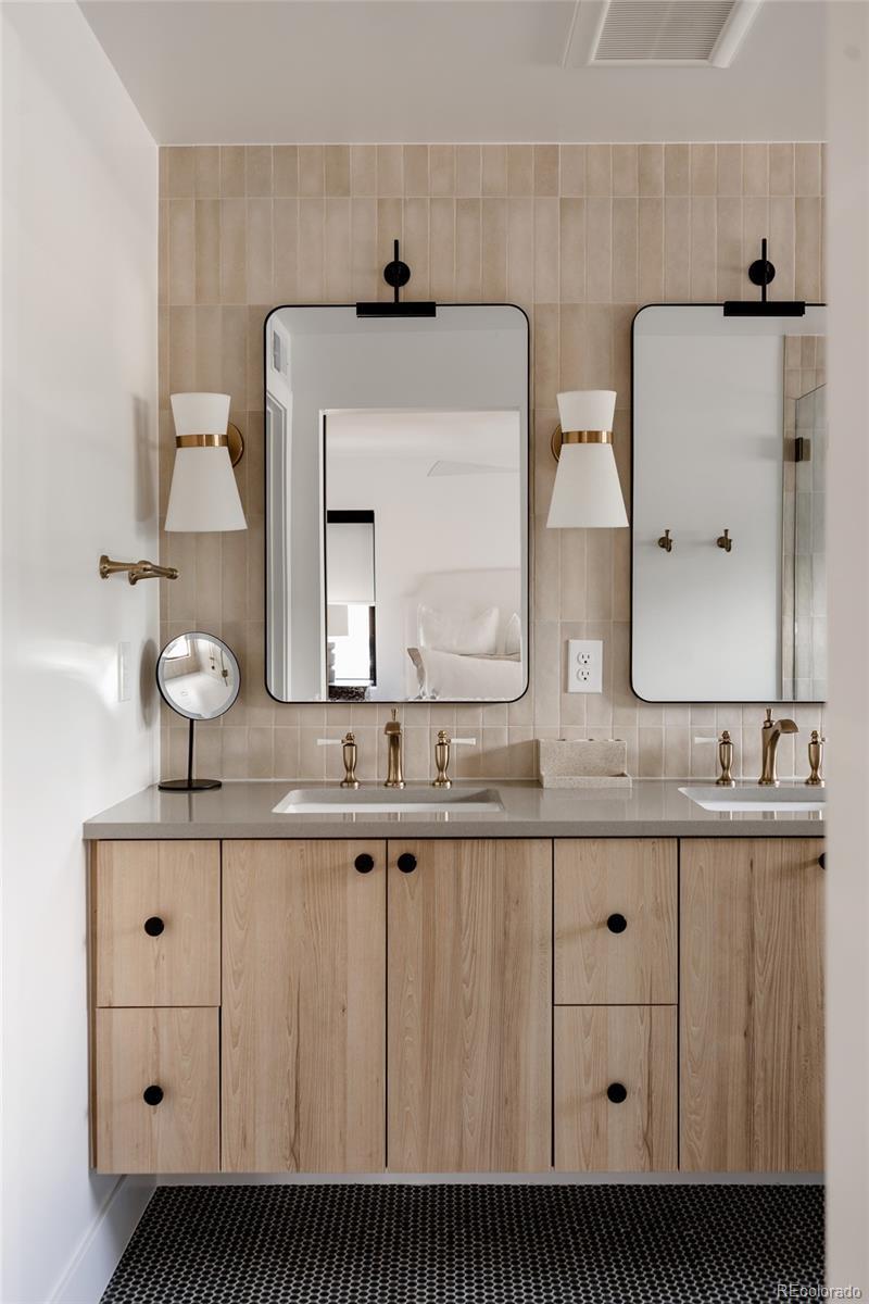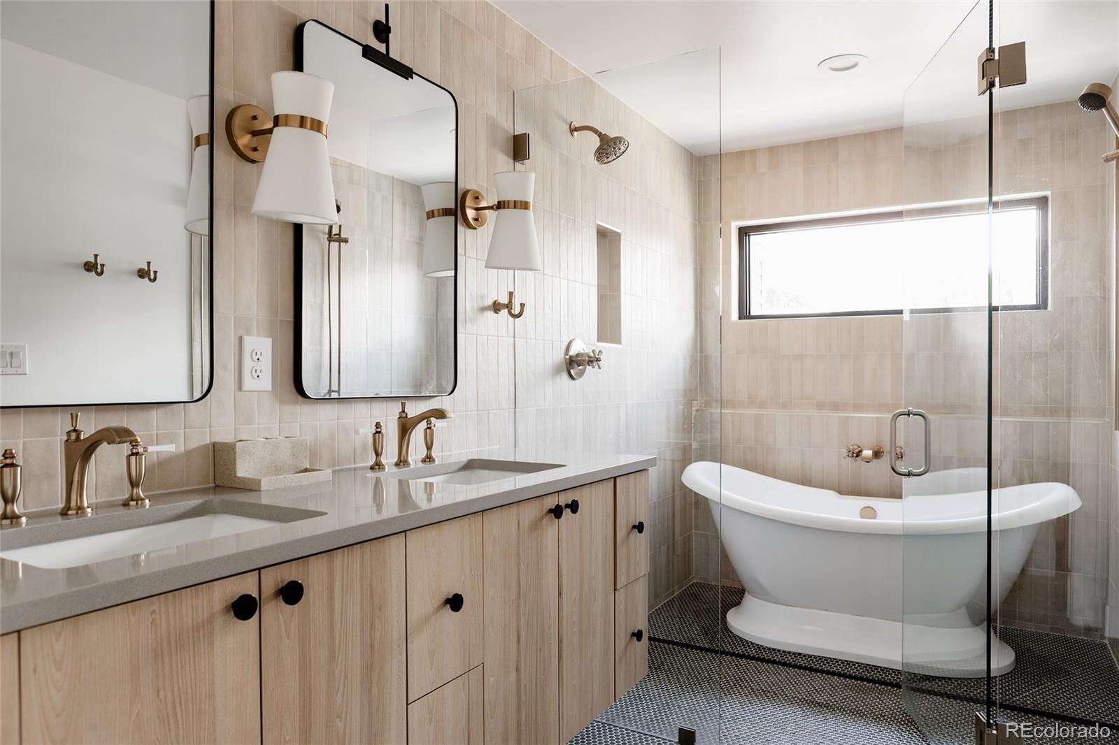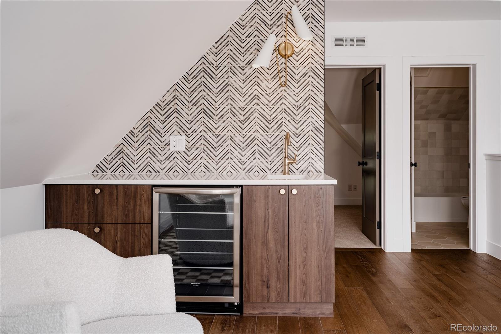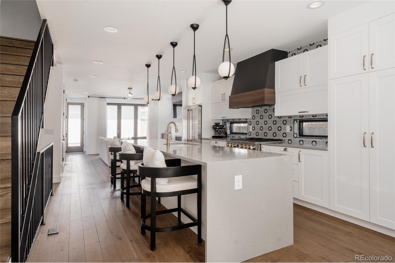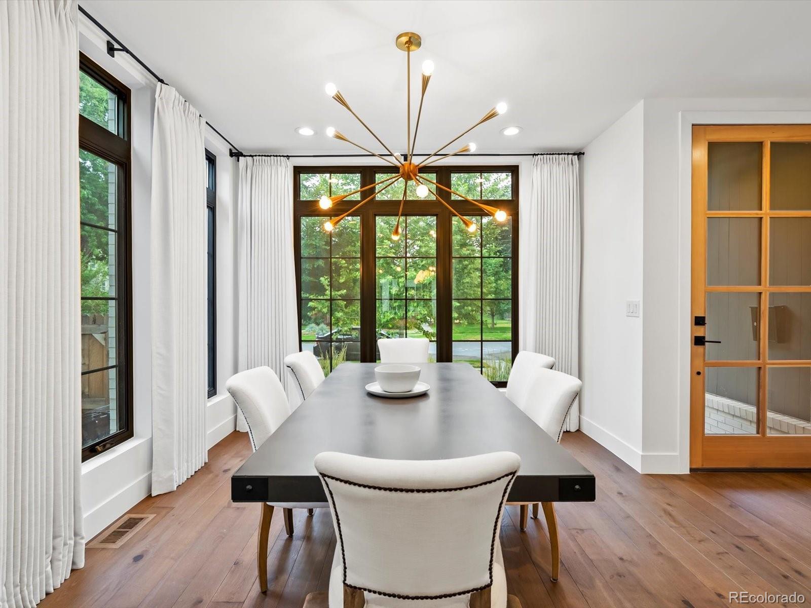Welcome to your modern oasis in the heart of Congress Park - one of Denver’s most beloved and walkable neighborhoods. This stunning, design-forward duplex offers the perfect blend of luxury, functionality, and location. From the moment you step inside, you’ll feel the quality of craftsmanship and intentionality of the layout. The main floor welcomes you with high ceilings, natural light, and a seamless open-concept design. At the front of the home, a designated dining area makes hosting dinner parties effortless. The kitchen is a chef’s dream, outfitted with luxury stainless steel appliances, a large center island for gathering, pendant lighting, and abundant cabinetry. Just beyond, your living room is anchored by a statement fireplace and glass doors that open to a private backyard. Your detached two-car garage offers space for both vehicles and gear. Upstairs, retreat to your primary suite, a spacious walk-in closet, and a luxurious 5-piece en-suite bath. You’ll love the double vanities, designer fixtures, and the show-stopping shower and soaking tub combo. This level also includes a second bedroom with its own en-suite bath, as well as a laundry room perfectly positioned for ease. Designed for entertaining, the third level has a large flex space complete with a wet bar and outdoor entertaining area. A third bedroom and full bathroom provide privacy and comfort for guests or a remote work setup. Step out onto the private rooftop deck and take in the views. Need even more space? Head downstairs to the fully finished lower level, which offers versatile square footage for a home gym, rec room with another wet bar, and even an additional guest suite and full bathroom. All of this is wrapped in a modern exterior with clean lines and thoughtful landscaping. Located in one of Denver’s most central, connected neighborhoods — minutes from Cherry Creek, City Park, and Downtown — this home is the perfect combination of style, substance, and location.