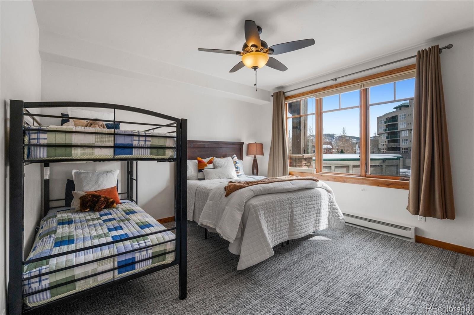 Discover the perfect mountain retreat in this oversized, well-kept 3-bedroom, 3-bathroom condo, centrally located in Frisco. Enjoy the convenience of true main-floor living with an all one-level layout, featuring two spacious primary suites. No stairs are needed—an elevator provides easy access to the unit. Thoughtfully maintained, this home offers two versatile bonus spaces, providing flexibility for a home office, extra sleeping area, or recreation space. Enjoy the breathtaking west and south-facing views with a spacious deck, where you can soak in stunning sunsets and mountain vistas. Large windows in every room fill the home with natural light, creating a warm and inviting atmosphere. This exceptional property also features underground heated parking, a dedicated ski locker, and access to common hot tubs and a grilling area with panoramic views of Lake Dillon—perfect for relaxing after a day of adventure. With a prime location in Frisco, you're just minutes from world-class skiing, hiking, biking, and all the amenities this charming mountain town has to offer. Don’t miss this rare opportunity to own a beautifully maintained home in one of Summit County’s most sought-after locations!