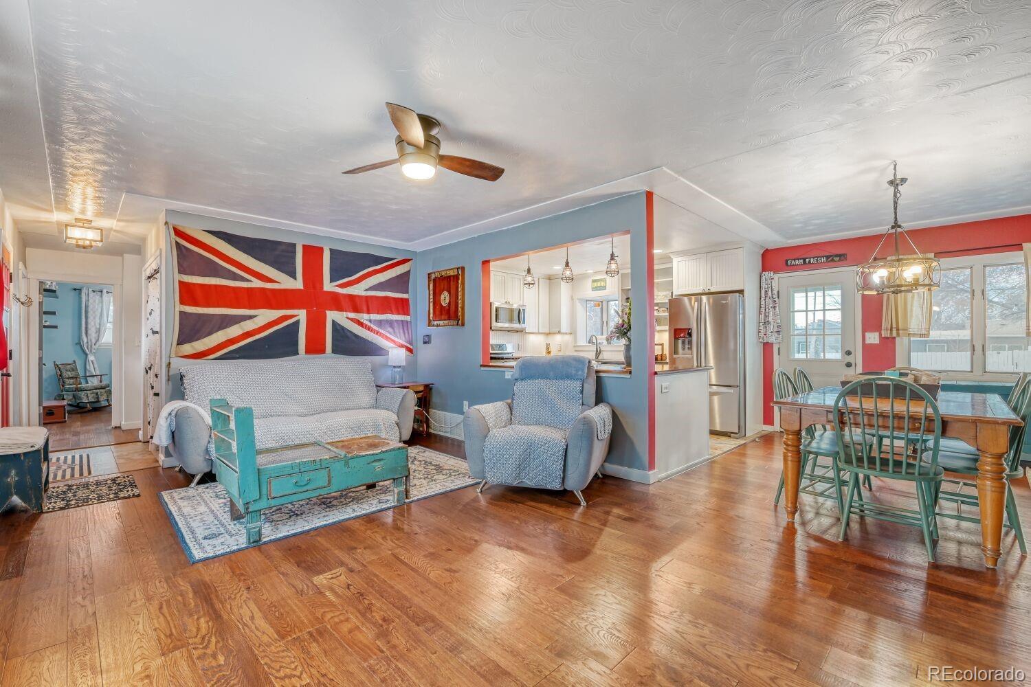 Welcome home to this west-facing ranch perfectly positioned on a large corner lot in a friendly, well-established neighborhood. The charming front porch is beautiful and welcoming, and overlooks thoughtfully landscaped native plants and flowers, and delicious wild strawberries with drip irrigation for easy, low-maintenance care. The back porch opens to a generous backyard—perfect for gatherings, gardening, and peaceful evenings. Inside, a spacious light-filled sunroom provides a versatile space for relaxing and gathering while enjoying views of the outdoors year-round. The open-concept kitchen, dining, and living areas blend warmth and comfort, and is ideal for everyday living and entertaining. The kitchen makes a statement with a striking oversized apron-front farmhouse sink positioned beneath a bay window, offering timeless charm and radiant natural light. The living room is filled with even more natural light from the fabulous bay window. One of the home’s true showpieces is the stunning custom primary bathroom, where exceptional craftsmanship and fine detail shine. A timeless clawfoot bathtub anchors the space, creating a spa-like retreat that feels both luxurious and inviting—a perfect place to unwind at the end of the day. Centrally located with easy access to Denver Tech Center, downtown Denver, or a day in the mountains, this home is also just a short walk to beloved community events such as the Independence Day Celebration, Englewood Block Party, and Movies in the Park. The 2022 water heater, 2021 garage door and full water line replacement, 2020 furnace and humidifier, 2017 kitchen appliances and radon mitigation system are just a few updates (see the documents section for complete list). With impressive indoor and outdoor living spaces and a genuine sense of community, this home isn’t just a place to live—it’s a place to belong.