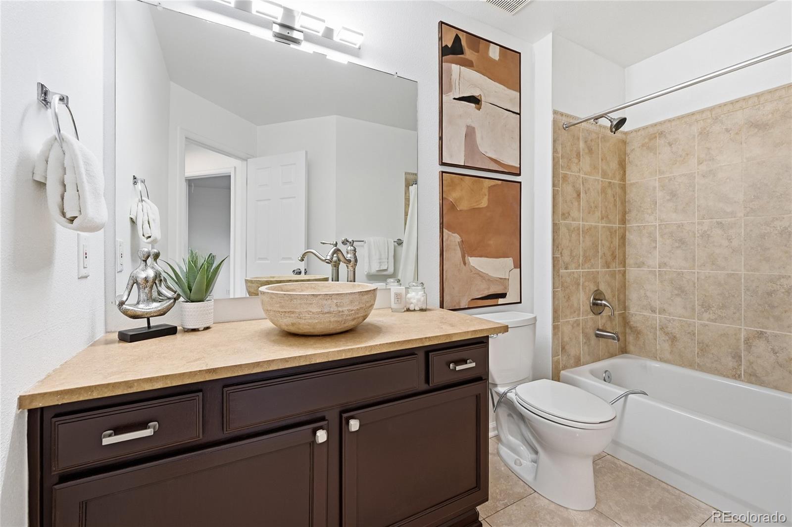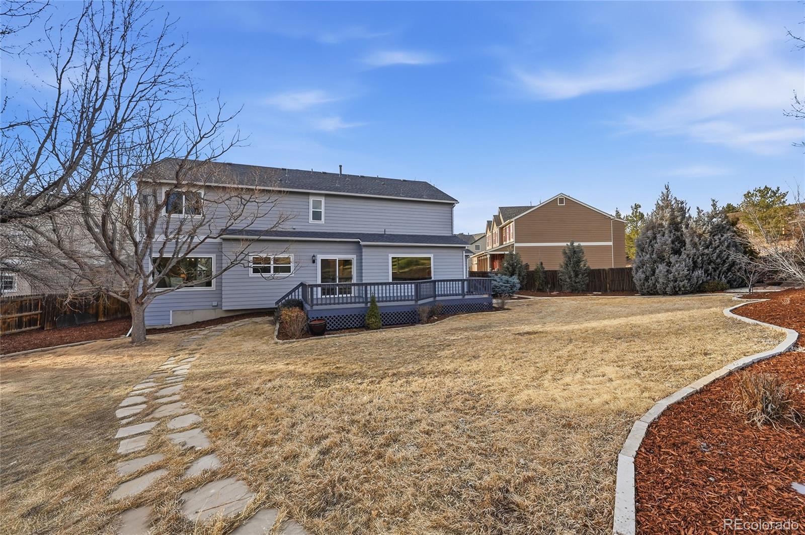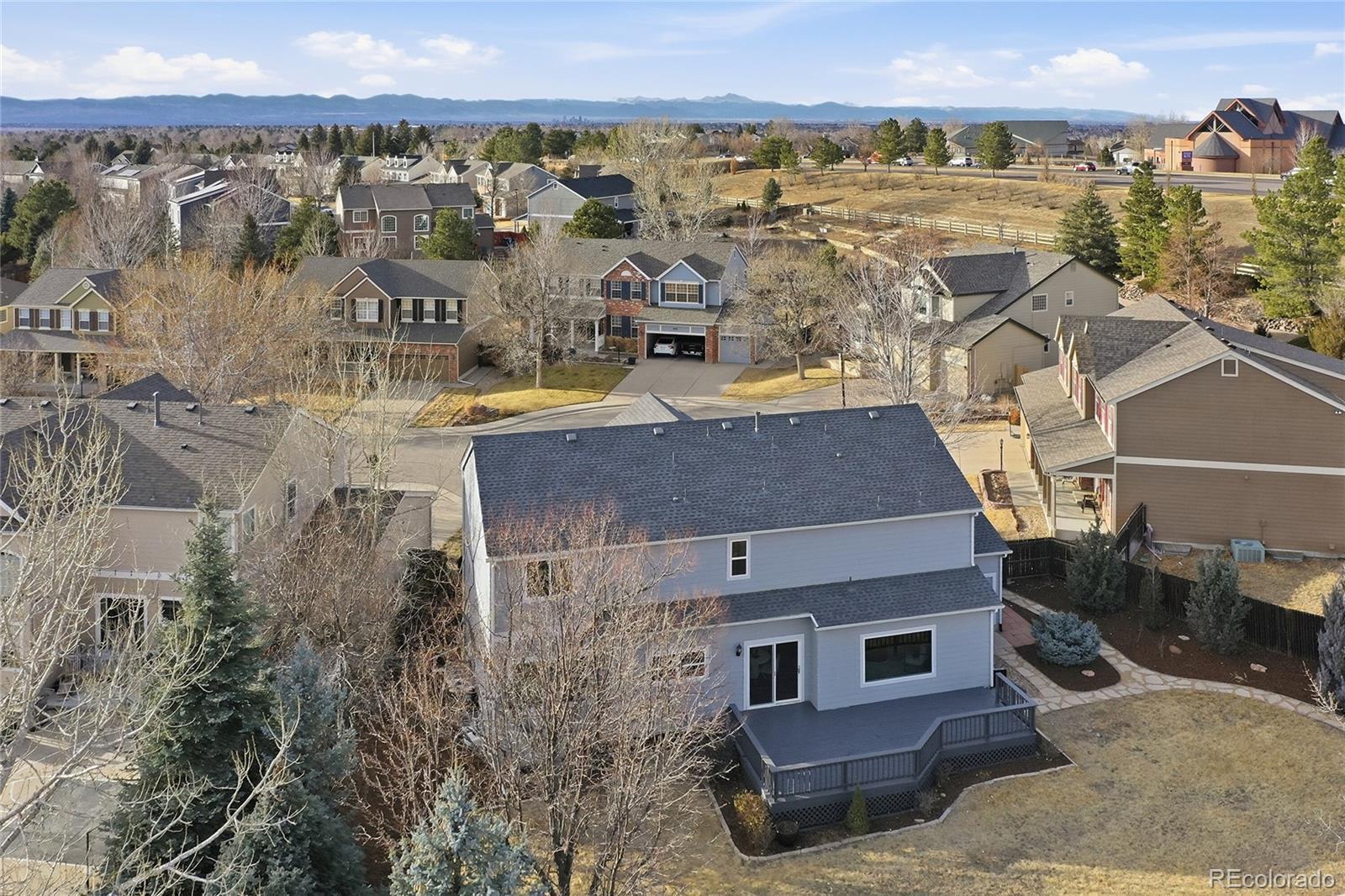 Welcome to this four-bedroom, four-bathroom home located in the desirable Tuscany community! This move-in-ready home offers many upgrades including fresh interior paint, refinished hardwood flooring, new carpet, and much more! Upon entering, you are welcomed into a bright and inviting living area offering easy access to anywhere. The formal dining room is centrally located near the kitchen, making it ideal for hosting gatherings with friends and family. The eat-in kitchen is beautifully updated with brand new quartz countertops, a stylish new backsplash, freshly painted cabinetry, and included appliances, all within an open-concept layout, great for entertaining. A breakfast nook just off the kitchen provides casual dining or additional seating, and direct access to the deck and backyard. The family room features plenty of space for many different furniture design options, and is anchored by a charming gas fireplace with surrounding built-ins. A main-level office with French doors and a conveniently located powder bathroom complete the main floor. Upstairs, the large primary bedroom feels like an oasis and offers ample amounts of space, a walk-in closet, and a private, five-piece, en-suite bathroom and walk-in closet. Three additional bedrooms offer easy access to a bathroom, while the upper-level laundry room adds everyday convenience. But wait, there's more! The finished basement provides a large great room ideal for an additional living area or entertaining space, along with the fourth bathroom. Outside, enjoy a private backyard oasis featuring a large deck, spacious grass area, mature trees, beautiful landscaping and a firepit area, the perfect space for Summer gatherings! Located in the desirable Tuscany community, residents enjoy access to amenities including a sparkling community pool and tennis courts. Prime location offering easy access E-470, Denver International Airport, and plenty of shopping, dining, and entertainment options, including Southlands Mall!