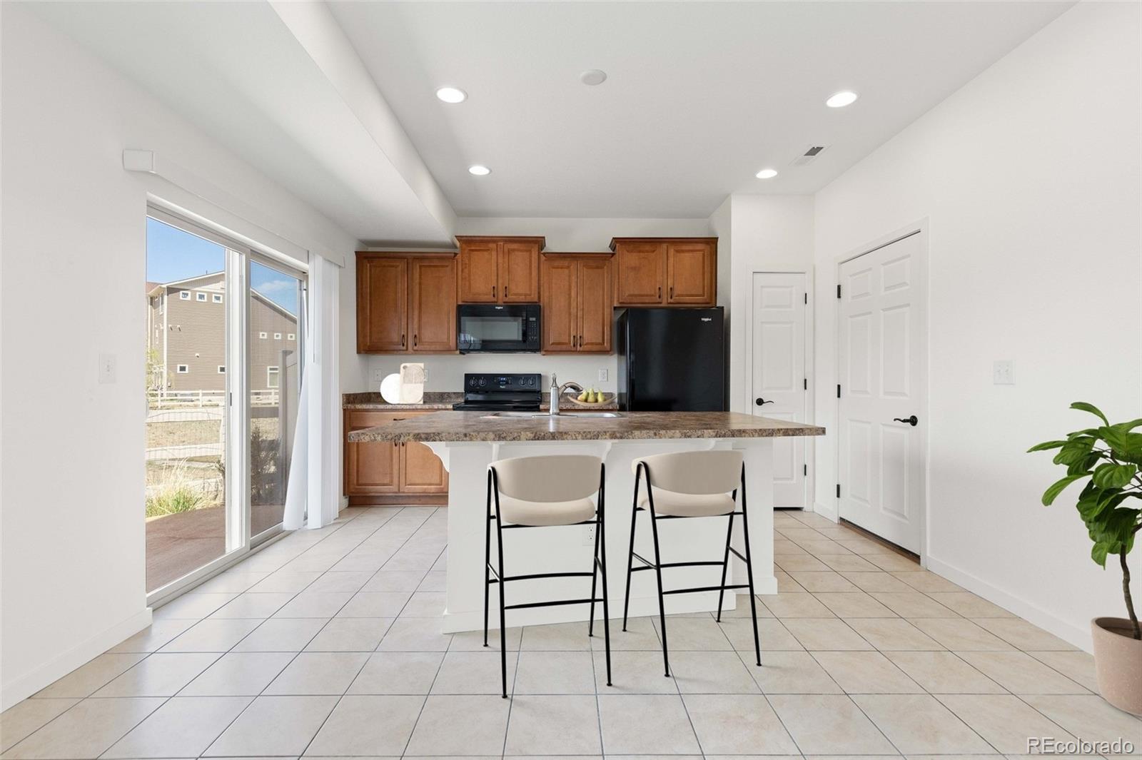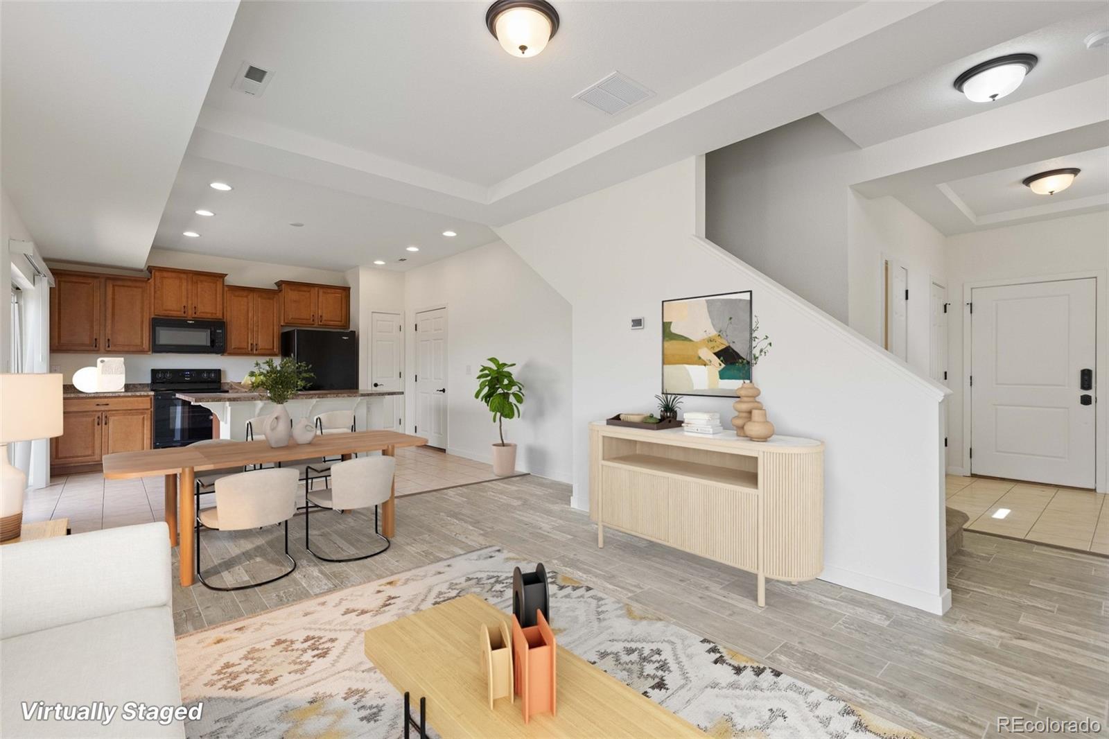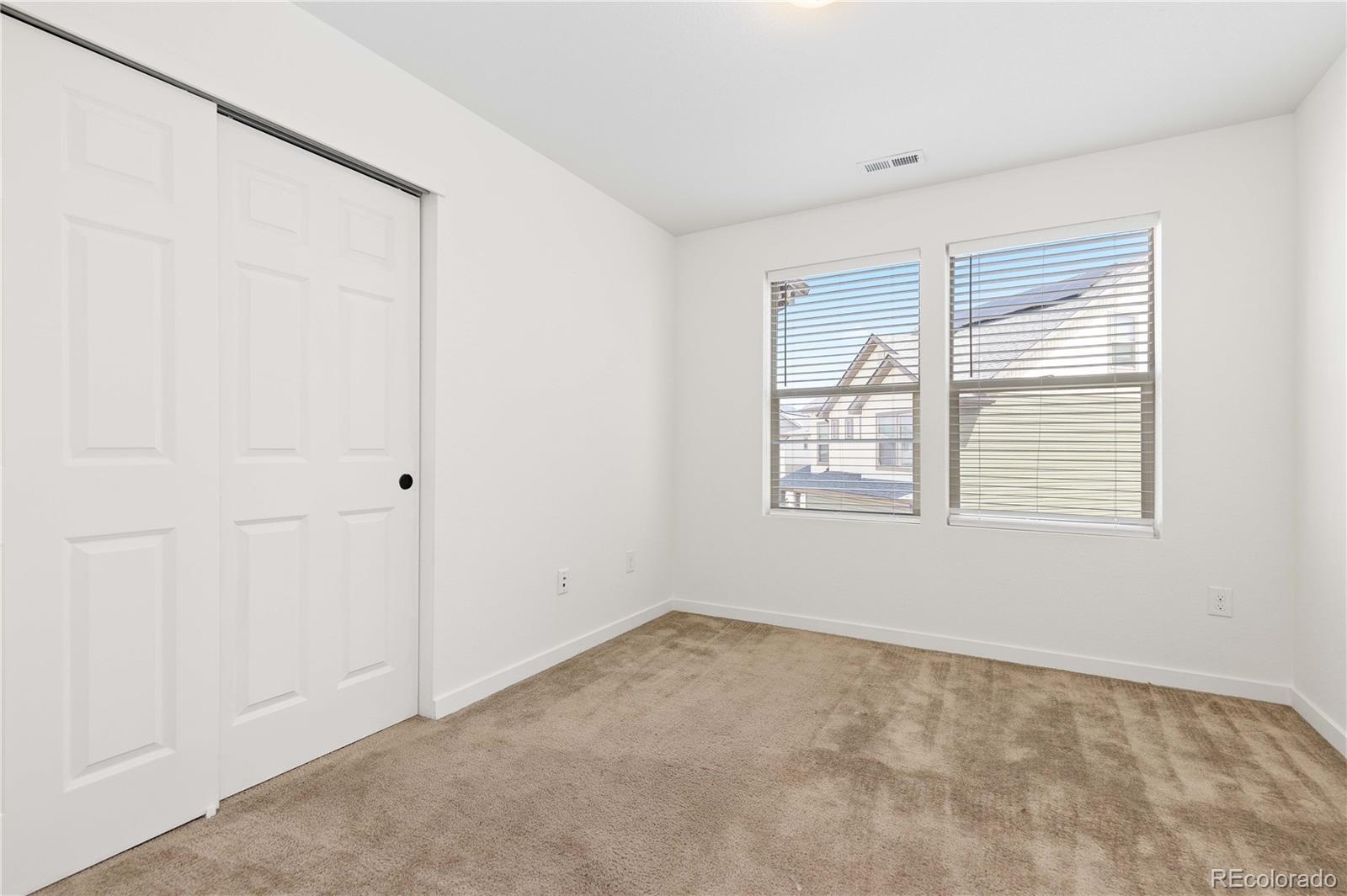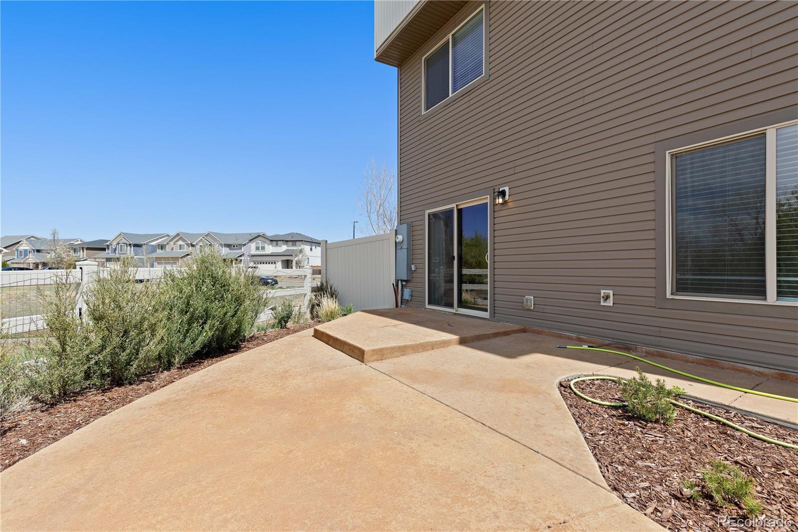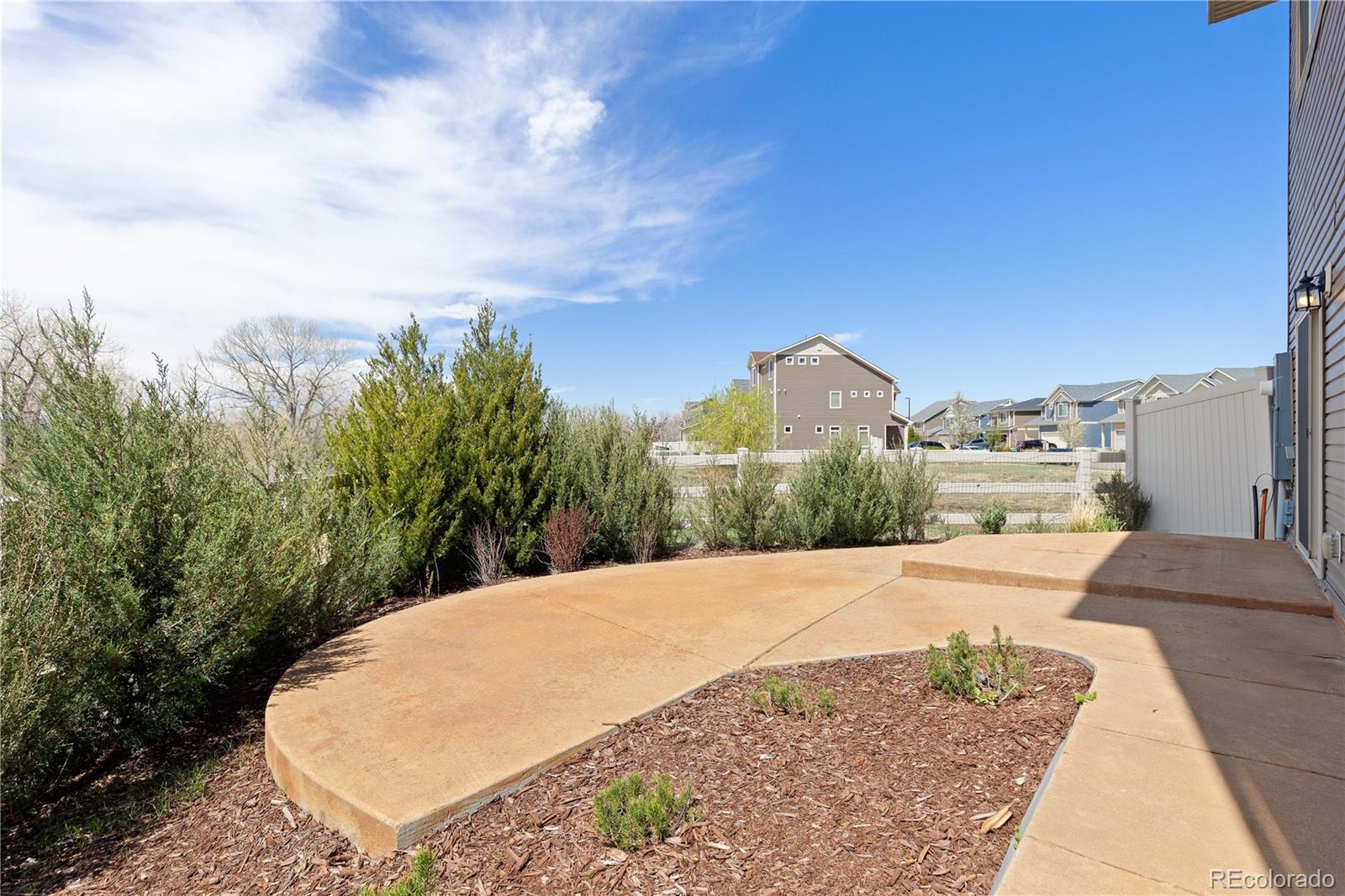 This is a rare opportunity. Home perfectly positioned on a premium lot with just two neighboring properties and quiet surroundings far from noisy, and air-polluted roads. Enjoy peaceful living with scenic greenbelt views and southern exposure that fills the home with natural light year-round—perfect for gardening or simply bright, cheerful interiors. There are no HOA fees for this area. Unlike new construction in the area, this property already offers a fully landscaped, low-maintenance, fully fenced backyard, saving you thousands in time, cost, and effort. The spacious patio is ideal for entertaining, while mature evergreens provide year-round greenery. An 80 sq. ft. storage shed adds convenience, and you’ll never need to worry about front yard upkeep or snow removal—it’s all handled for you. Inside, the open floor plan flows from a modern kitchen with a large island into a welcoming living area. The unique third-floor bonus level—rather than a basement—offers flexible space for a home office, gym, or recreation room. The primary suite features a dual-sink vanity, oversized shower, and large walk-in closet, while two additional bedrooms each have walk-in closets. Other features include carpeted bedrooms, central air, and a 2-car attached garage. Built in 2018, this energy-efficient home includes modern windows, HVAC, and insulation. Its location offers quick access to the recreation center, First Creek Park, golf course, shopping, dining, and the 61st & Peña Light Rail Station, making travel to Downtown Denver or DIA simple. The nearby bike path enhances your connection to the outdoors, and the area’s excellent water quality is free from the unhealthy chemicals found in some of the Denver Metro areas. More info available at request. This is a rare opportunity to own a move-in-ready, energy-efficient home on a premium lot with greenbelt views, no HOA, and low-maintenance outdoor living.