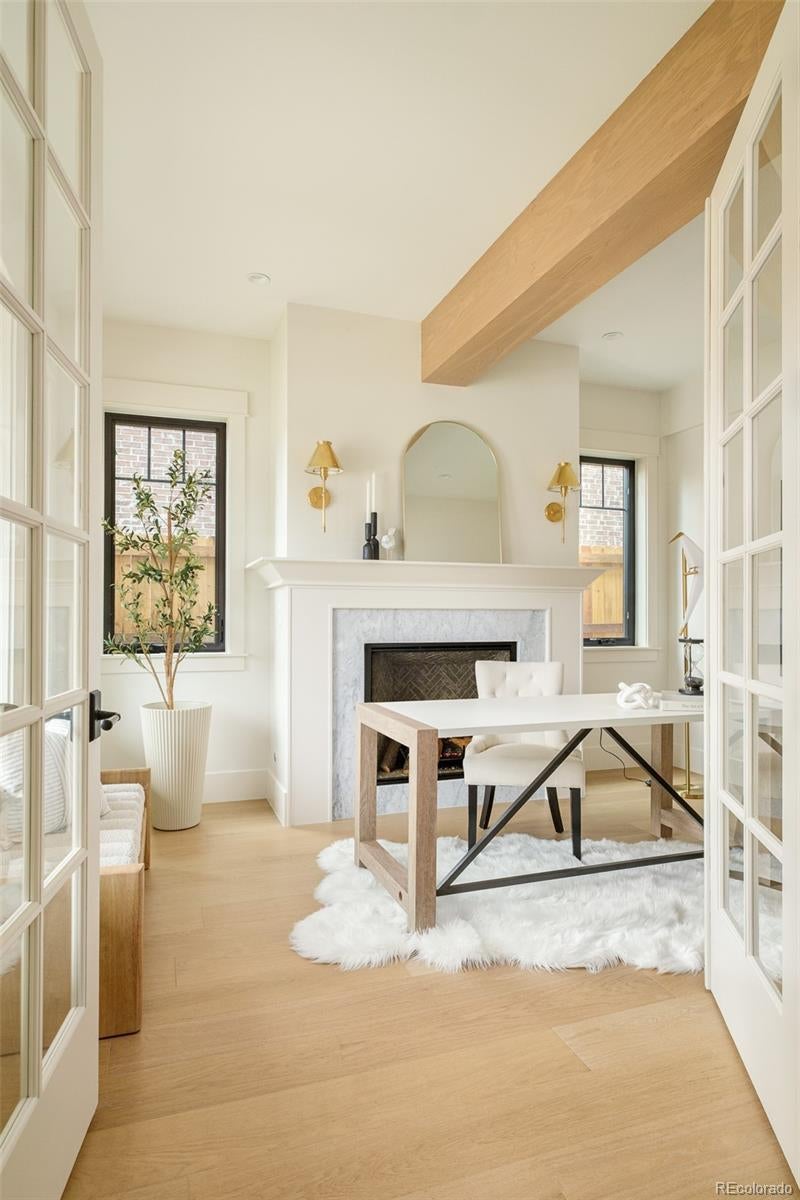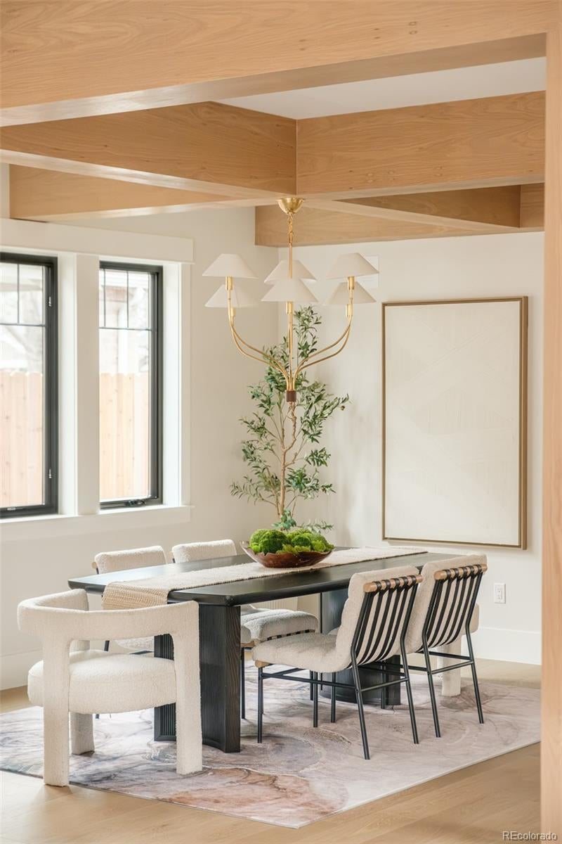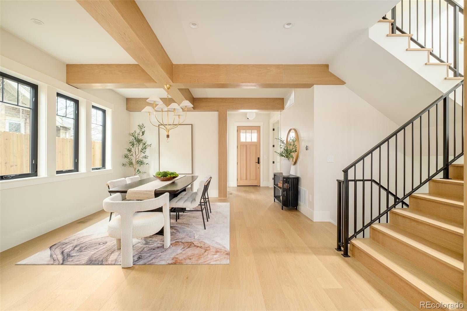 Prepare to be amazed. This new construction East Wash Park home stands out from the crowd with its sophisticated curb appeal and covered front porch. Spanning 4,110 square feet on a 4,680 sq ft lot, this 5-bedroom, 5-bathroom residence is a vision of elevated comfort with a sense of ease throughout. Unlike typical new builds, this home features texture, color and craftsman-style bungalow touches honoring the neighborhood's original architecture. Tiles with rich color saturation create depth beyond what you'll find in competitive homes. Hardwood floors flow throughout the main level. A private office, formal dining room and grand great room with breakfast nook cascade with natural light. Wood beam ceiling accents add architectural interest throughout. A convenient mudroom completes the main level. The upper level features a luxurious primary suite, two spacious bedrooms, a stylish full bath and a convenient laundry space — all designed for elevated everyday living. Entertainers delight in a third-floor rooftop deck featuring a west-facing balcony with views—perfect for hosting holiday gatherings. Downstairs, a fully finished basement is an entertainer's dream with a full bar with seating, a spacious family room, two additional bedrooms and a full bathroom. Outside, a back patio, fenced front yard and a hard-to-find oversized 2-car garage complete this exceptional offering. Walk to beloved Wash Park and South Gaylord Street. This home offers the softness and warmth rarely found in new construction—a truly special place to call home.