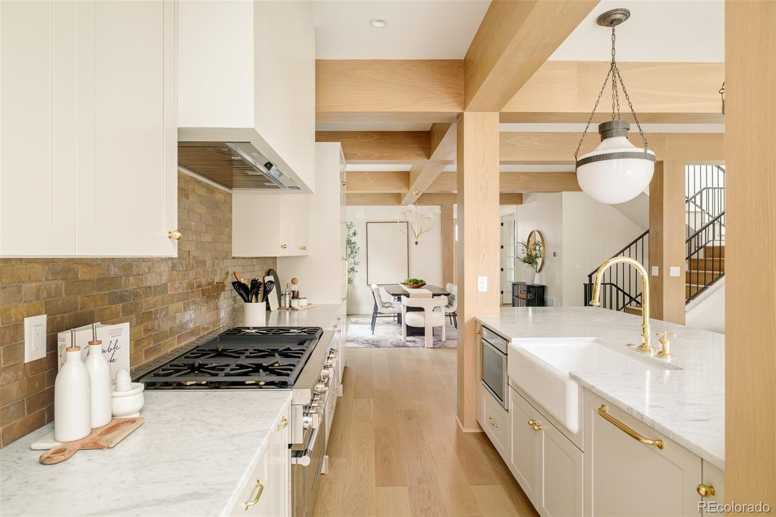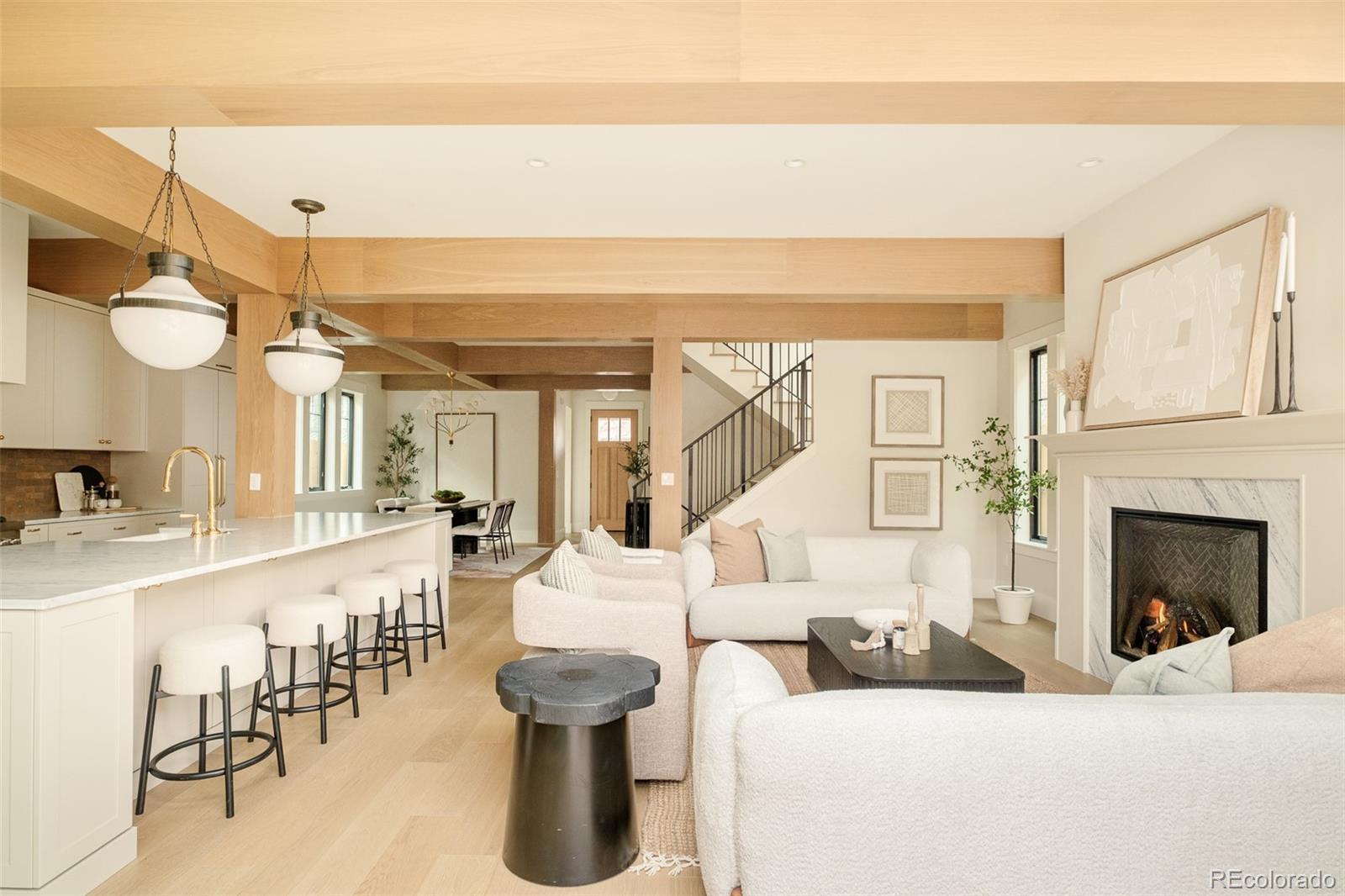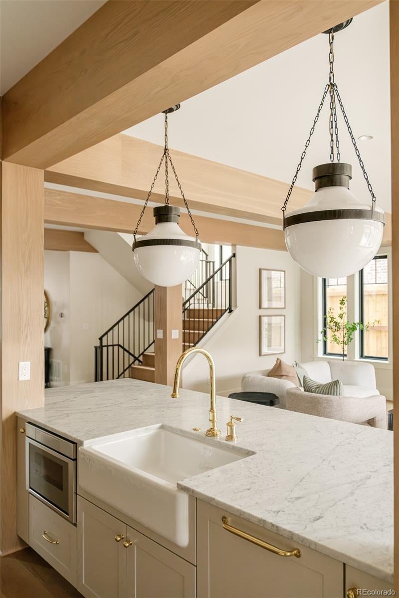 Prepare to be amazed. This new construction East Wash Park home stands out from the crowd with its sophisticated curb appeal and covered front porch. Spanning 4,110 square feet on a 4,680 sq ft lot, this 5-bedroom, 5-bathroom residence is a vision of elevated comfort with a sense of ease throughout. Unlike typical new builds, this home features texture, color and craftsman-style bungalow touches honoring the neighborhood's original architecture. Tiles with rich color saturation create depth beyond what you'll find in competitive homes. Hardwood floors flow throughout the main level. A private office, formal dining room and grand great room with breakfast nook cascade with natural light. Wood beam ceiling accents add architectural interest throughout. A convenient mudroom completes the main level. The upper level features a luxurious primary suite, two spacious bedrooms, a stylish full bath and a convenient laundry space — all designed for elevated everyday living. Entertainers delight in a third-floor rooftop deck featuring a west-facing balcony with views—perfect for hosting holiday gatherings. Downstairs, a fully finished basement is an entertainer's dream with a full bar with seating, a spacious family room, two additional bedrooms and a full bathroom. Outside, a back patio, fenced front yard and a hard-to-find oversized 2-car garage complete this exceptional offering. Walk to beloved Wash Park and South Gaylord Street. This home offers the softness and warmth rarely found in new construction—a truly special place to call home.