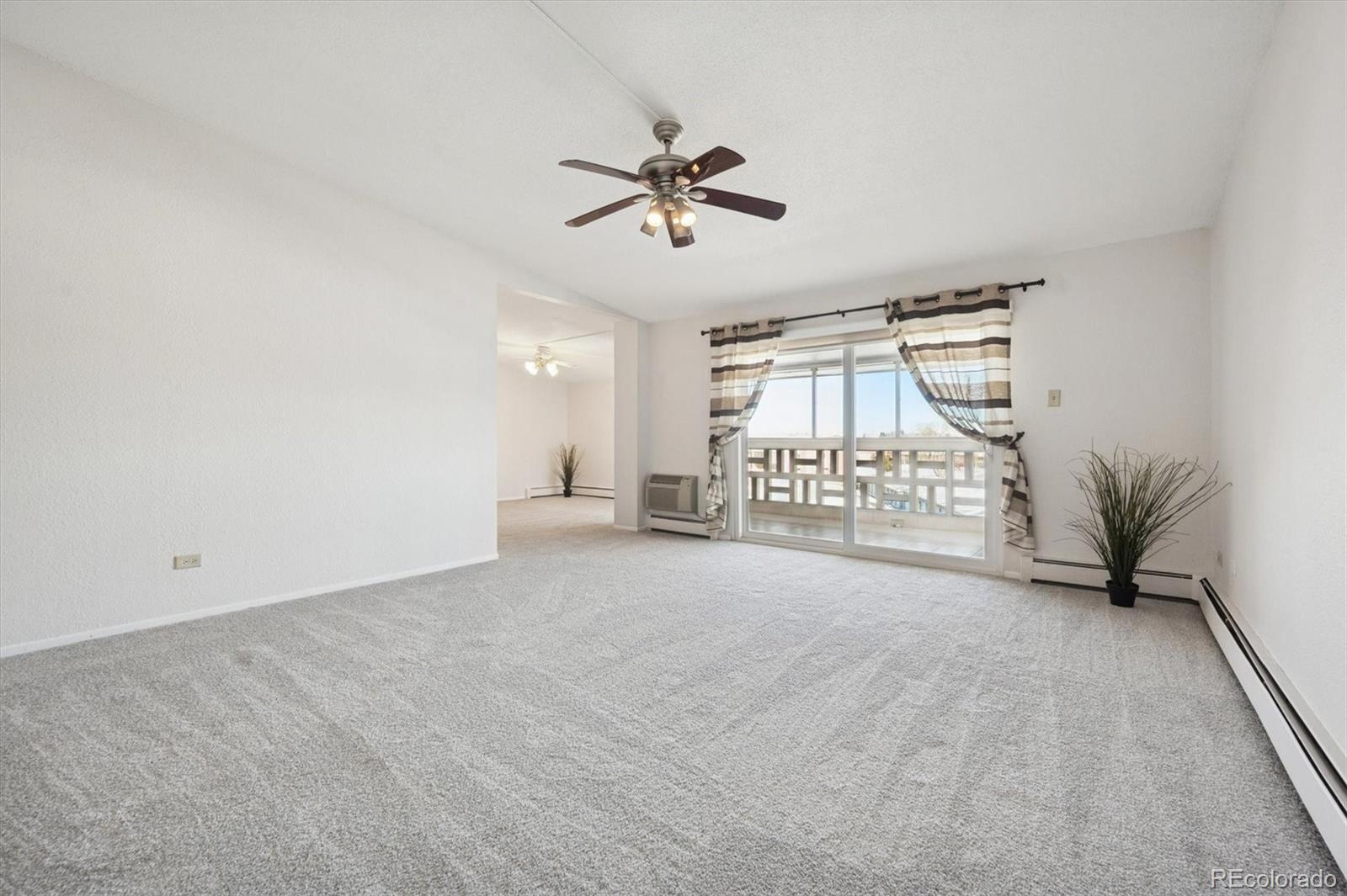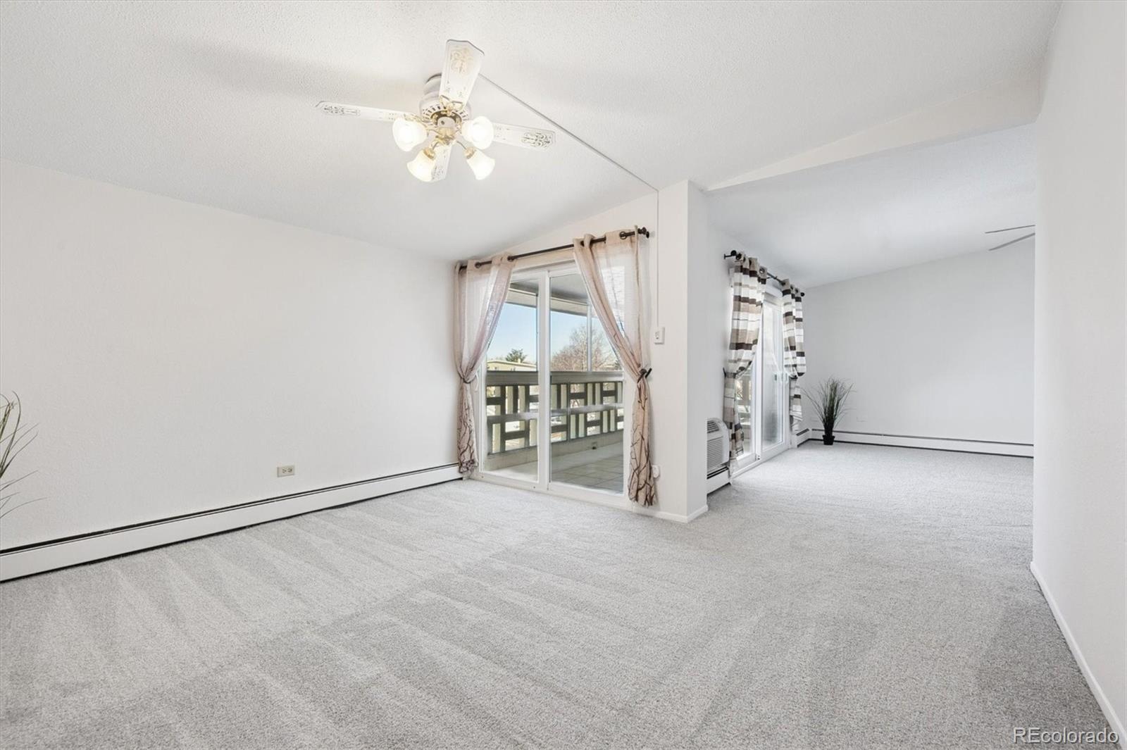 *Remodeled Penthouse Condo!* Move Right In! Views of trees and golf course in the distance! Desirable 1380 sf floorplan features 2 bedrooms, 2 bathrooms, + large bonus den or 3rd room, and an additional multi-purpose room for storage or small hobby/office space! All new paint & carpet! 1 Newer Detached Garage w/Opener included! Remodeled kitchen w/updated: cabinets, quartz countertops, stainless appliances, and tile backsplash. Bathrooms w/updated vanities- granite tops. Primary bedroom oversized with en-suite 3/4 bathroom and spacious walk-in closet. Multi-purpose room is great for storage or mini-office/hobby room. Also included are 3 wall ac units- living room and both bedrooms. Screen enclosed lanai with 2 new slider doors. Penthouse floor has vaulted ceilings! Building close to highline canal. Additional bonus storage room in building on same floor. If you are looking for space and storage, this condo is a great find! **Windsor Gardens is Colorado's Largest Age 55+ Active Adult Living Condo Community. Did you know? Monthly HOA Dues include annual property taxes! And heat, water, sewer, trash, round-the-clock patrolling community responders, full time onsite association management, grounds/building maintenance, and activities department. Enjoy clubhouse amenities such as fitness center, indoor/outdoor pools, hot tub, sauna, billiards, library, craft rooms for ceramics, sewing, woodworking, and 9 hole par 3 golf course and onsite restaurant both open to the public. Stay engaged with a wide array of activities, clubs, and events scheduled every month. Additional features include garden plot program, private walking trail and nature preserve, and RV/Boat storage. The Highline Canal runs full length along south side of the complex. RTD Bus Stops located thru-out the community. FHA/VA approved. Close to restaurants, stores, shopping…Minutes to Lowry, Hwy 225, Cherry Creek…Easy access to DIA and downtown. Come see for yourself what Windsor Gardens has to offer. ©2021