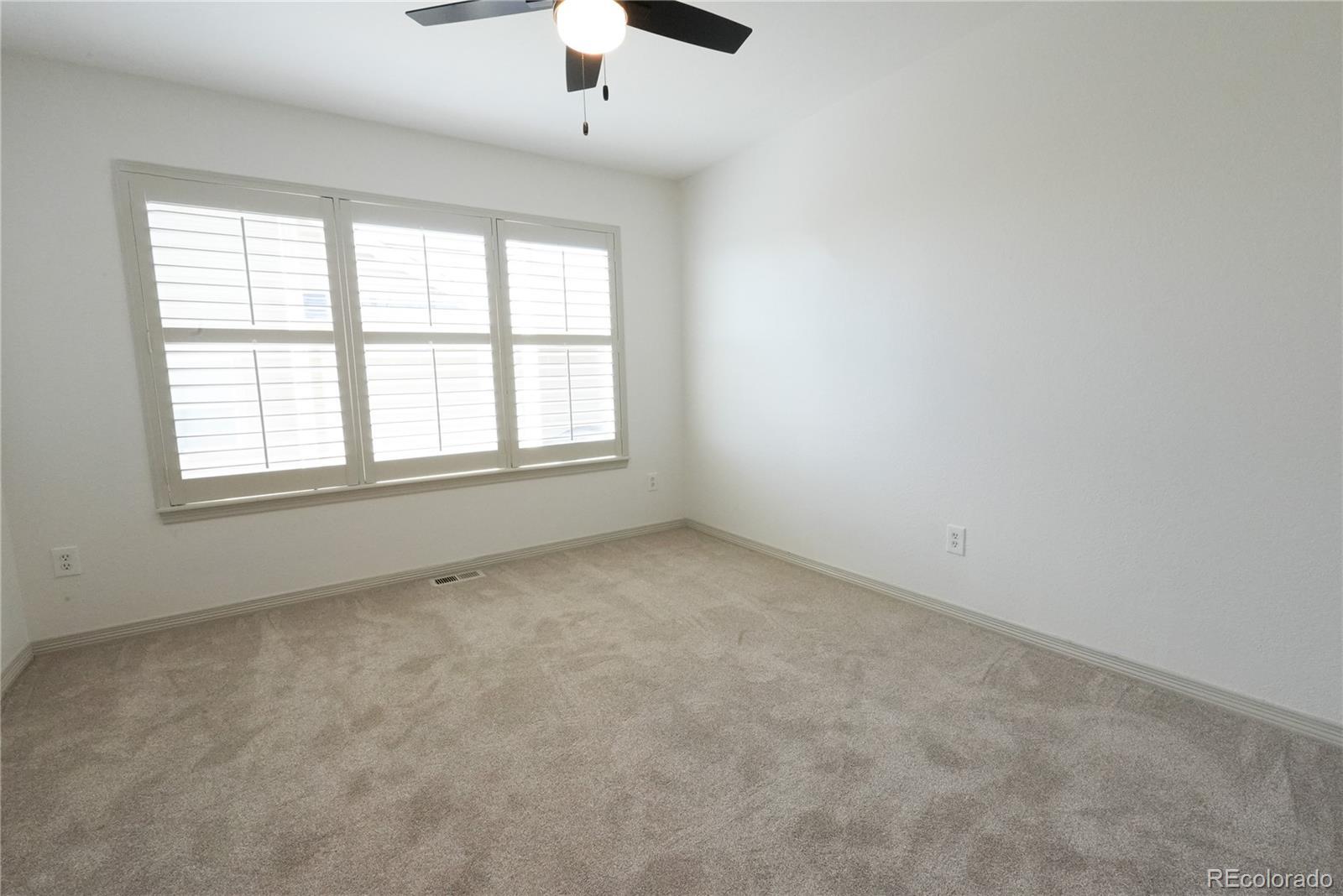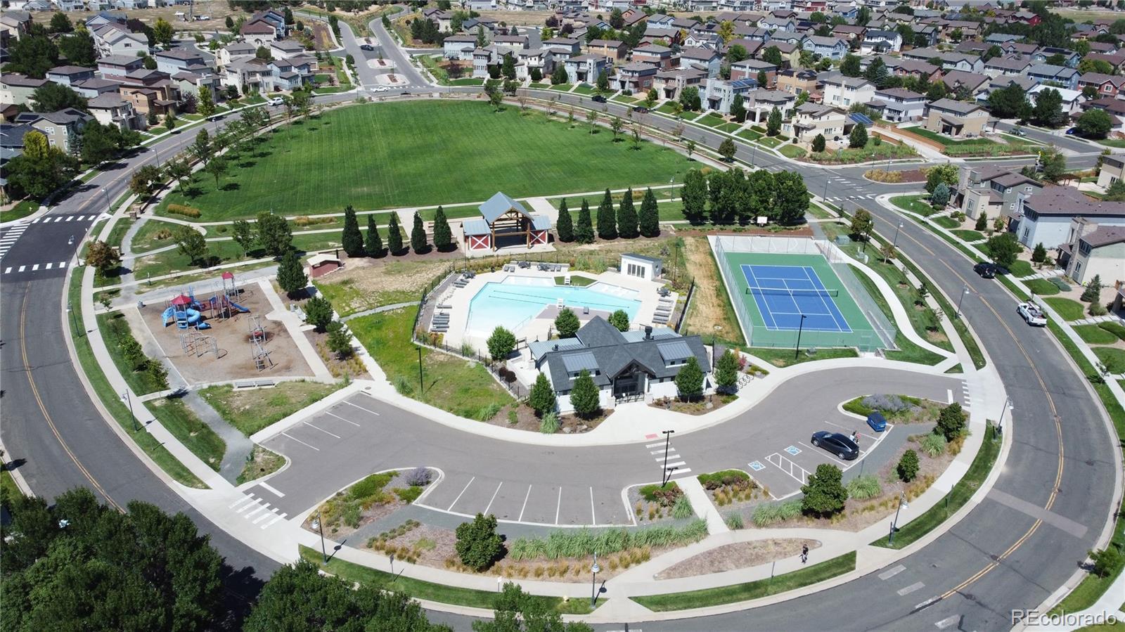Discover the Magic of Reunion! Live where convenience meets community—just steps from scenic parks, an elementary school and future high school, sparkling pool, clubhouse, tennis courts, and more! Perfectly located only 15 minutes from Anschutz Medical Campus, DIA, shopping, and endless walking trails. Step inside this bright, open, and beautifully maintained home that’s truly move-in ready. The main-floor primary suite offers a private retreat perfect for reading, yoga, a nursery—or whatever inspires you. A formal dining room and main-floor office with custom built-in bookshelves add elegance and function. Enjoy granite and quartz countertops throughout, complemented by upgraded lighting, fixtures, plantation shutters, and gleaming hardwood floors. Upstairs, you’ll find three light-filled bedrooms, a spacious loft, and a large bathroom. The finished basement expands your living space with a guest bedroom, full bath, and an oversized rec room—plus tons of storage. Fresh paint, new carpet, and all appliances included make this home completely turnkey. Relax or entertain on the stamped concrete patio overlooking peaceful open space—it’s the perfect spot for morning coffee or sunset gatherings.