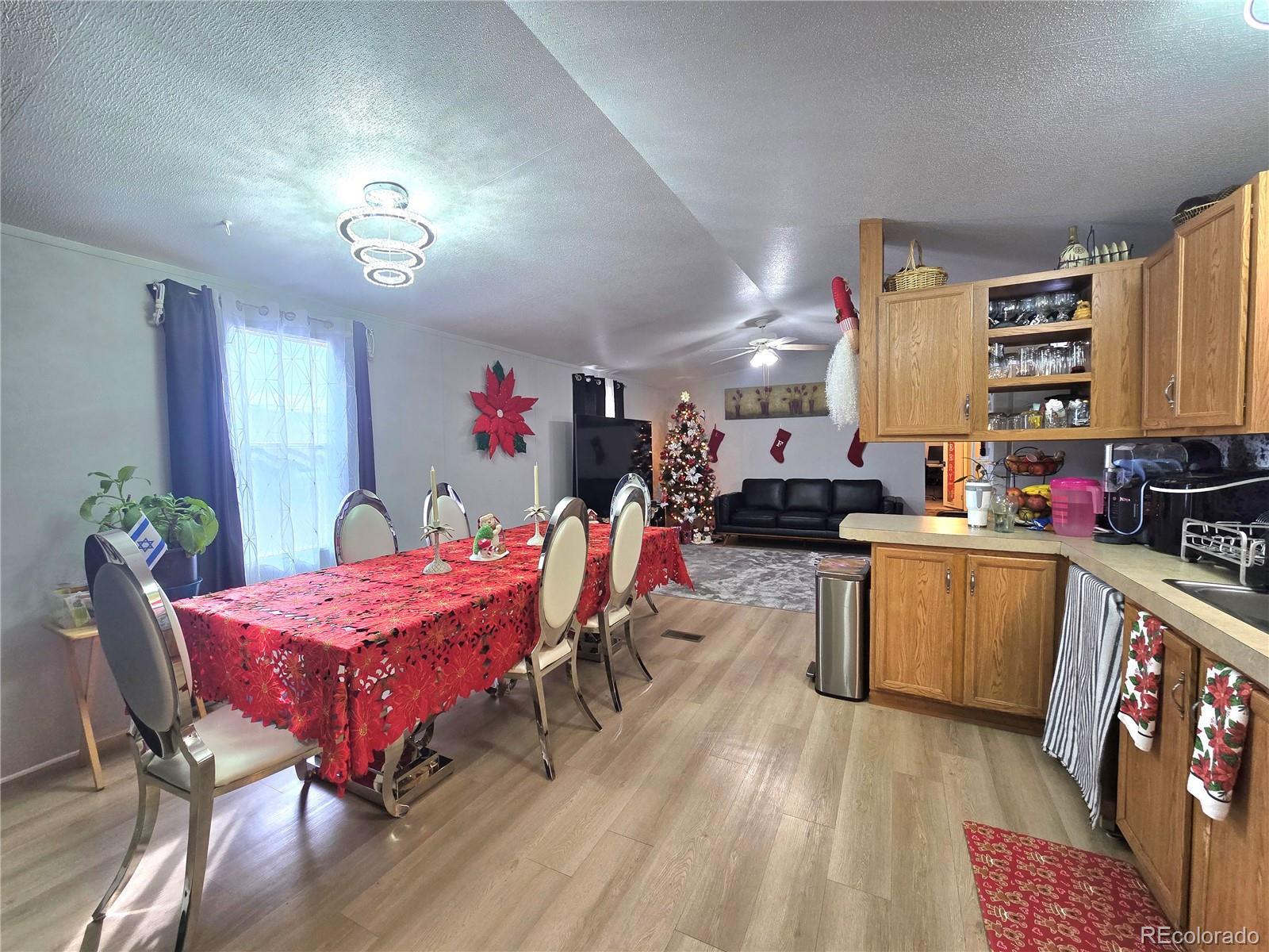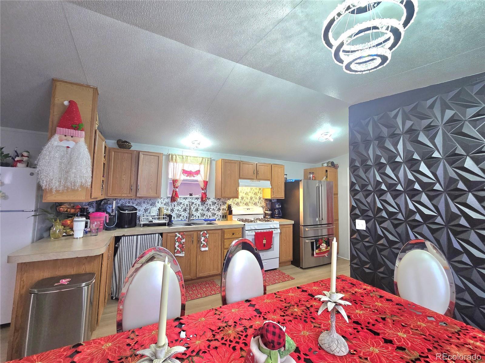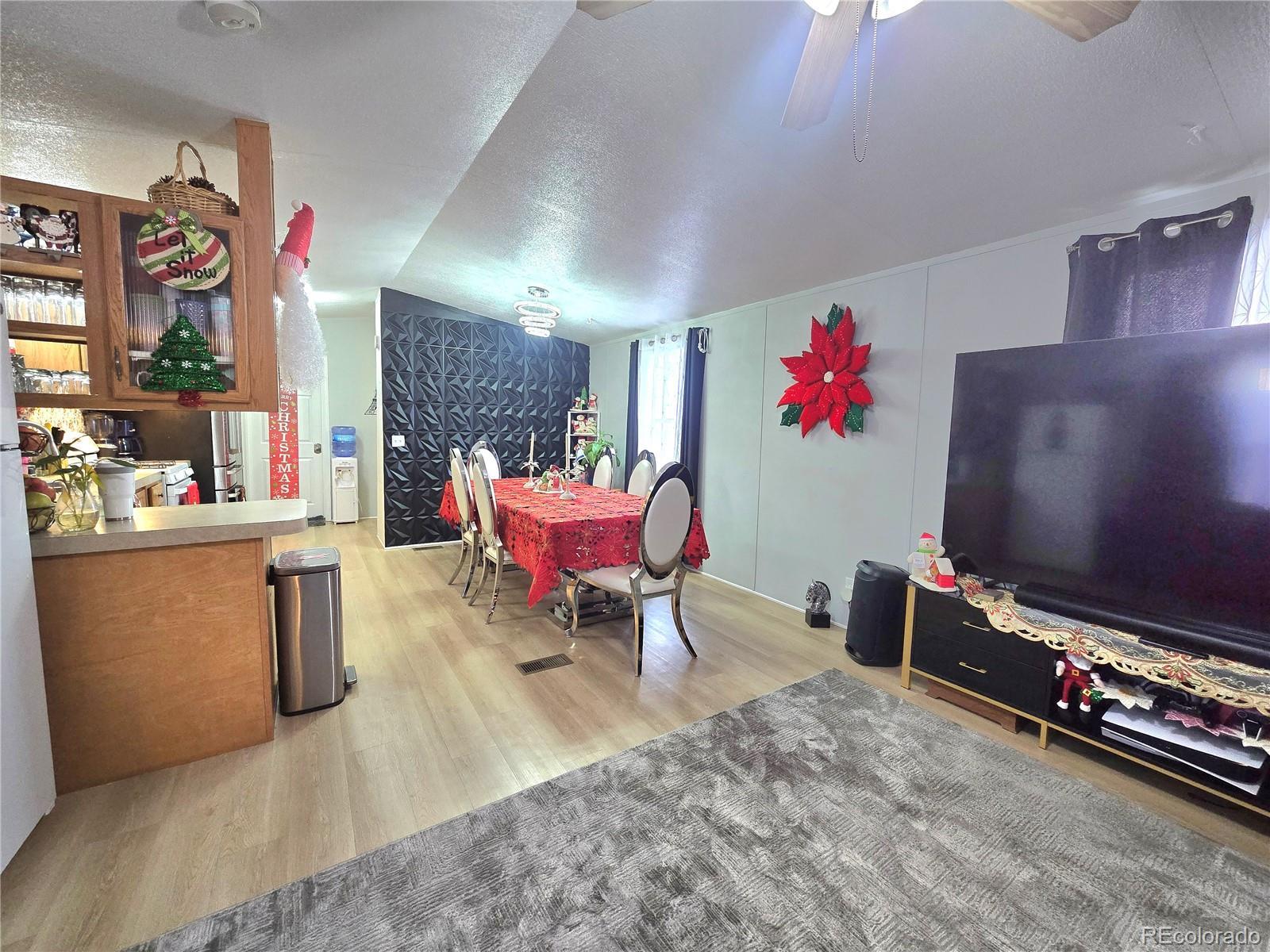 Spacious 3-Bedroom, 2-Bath Home in Friendly Family Community located just minutes from the Denver Flea Market, this well-maintained home offers both comfort and character in a vibrant family-friendly community. Step inside and enjoy the airy feel of vaulted ceilings and a thoughtful floor plan designed for both everyday living and entertaining. The dining area features a stylish black geometric accent wall, adding a touch of contemporary flair to the space. The bright and welcoming kitchen is the heart of the home, offering generous counter space, natural light, and plenty of cabinet storage. Decorative touches like a custom tile backsplash and cheerful window treatments bring personality to the space. The open layout seamlessly connects the kitchen to the dining area, creating a functional flow for entertaining and family gatherings. The primary bedroom is oversized and features dual closets, a private en-suite bathroom with a large vanity, soaker tub, and additional closet for extra storage. The additional bedrooms are also generous in size, offering flexible space for family, guests, or a home office. Outside, the home includes a private driveway with room to park up to 4 vehicles, making parking easy for residents and visitors alike. Located in a vibrant community with easy access to shopping, restaurants, and major roadways, this home offers comfort, space, and convenience at an excellent value.