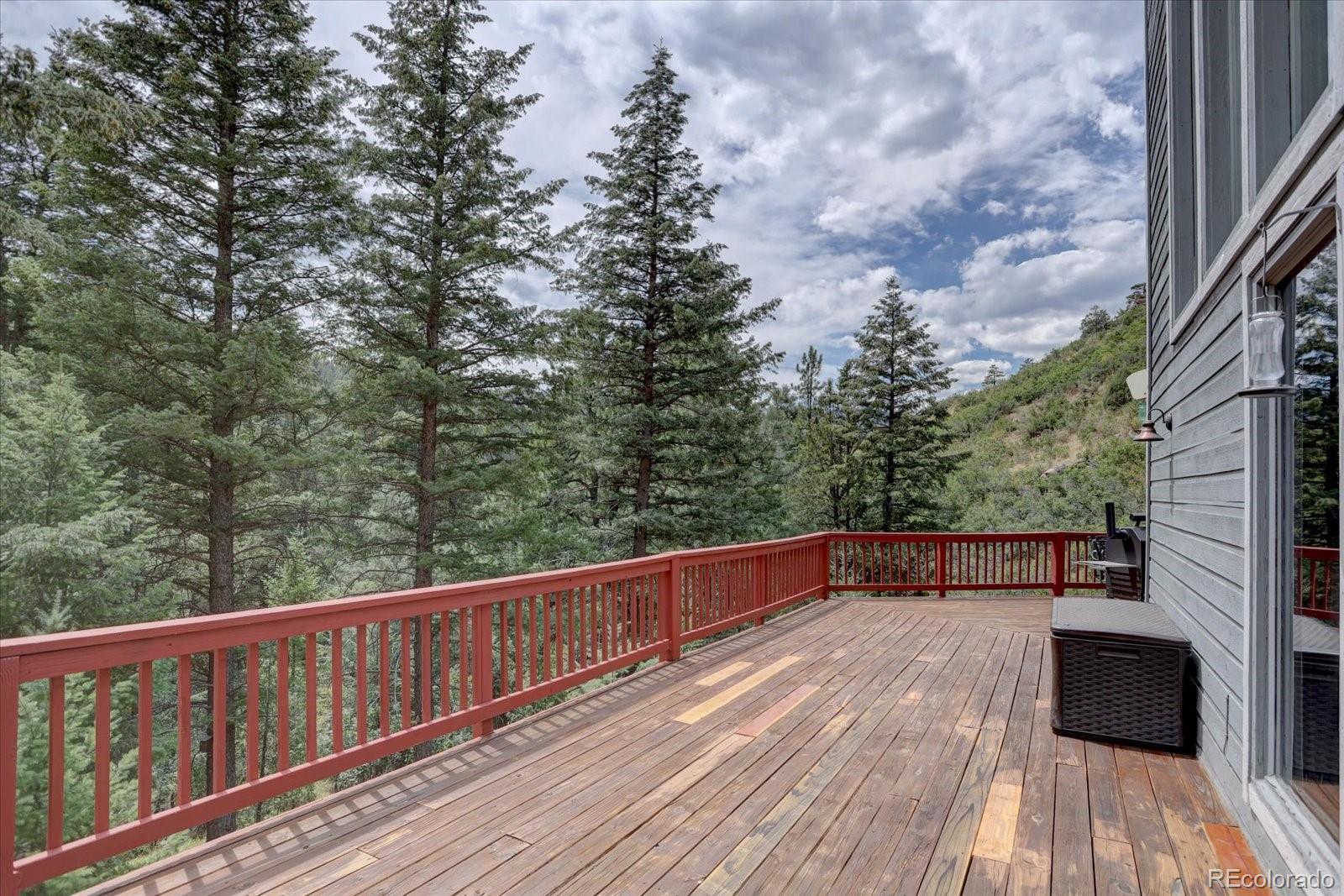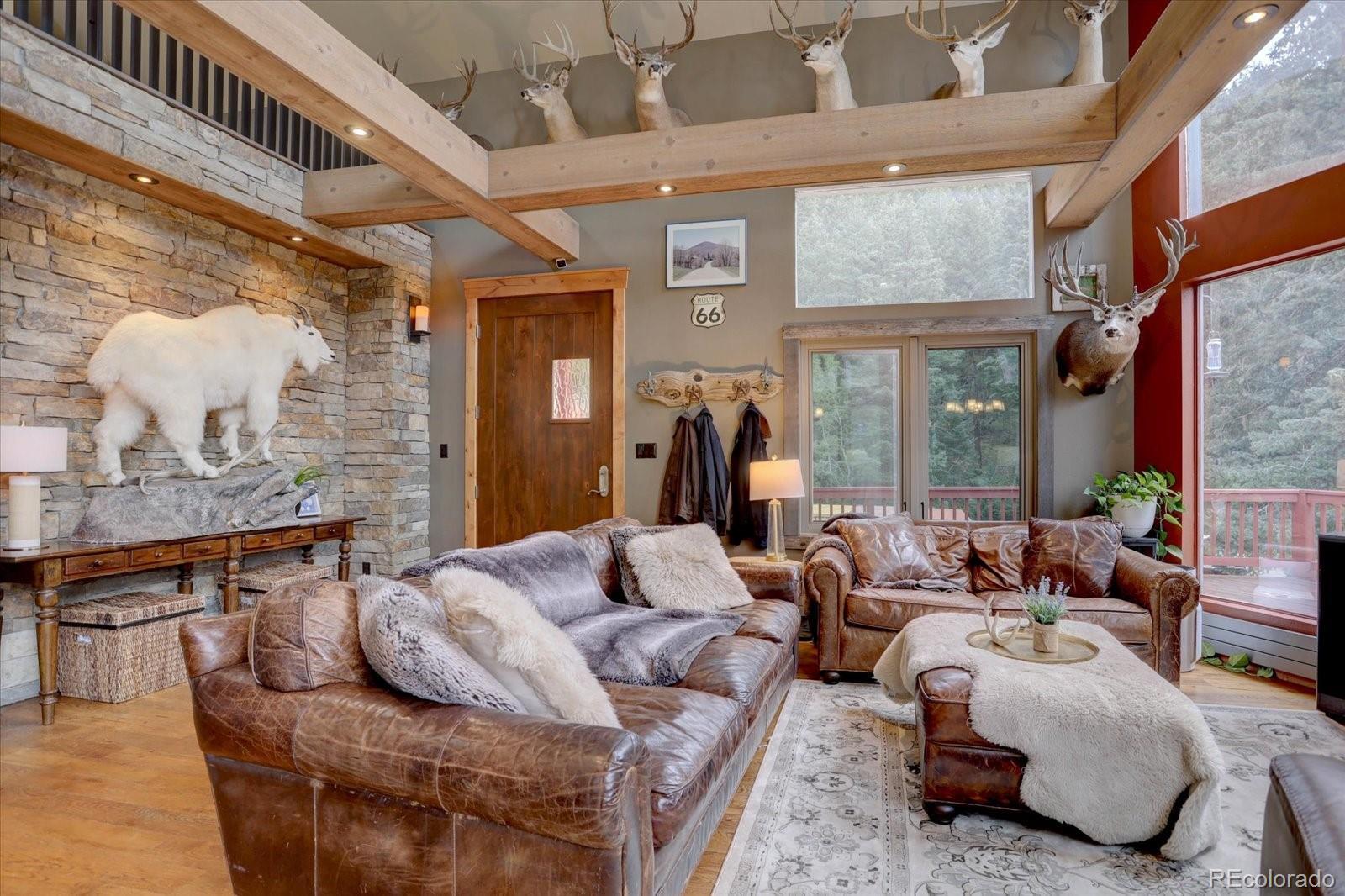 LOCATION, LOCATION, LOCATION! Luxury Mountain Retreat in the Foothills of Littleton – Backing to 1600-acre Deer Creek Open Space Park for endless hiking and biking right out your back door! Welcome to this one-of-a-kind Colorado estate nestled on nearly 22 pristine acres in the foothills of Littleton. This 3 bed, 3 bath home combines timeless, castle-inspired architecture with modern luxury finishes, offering the ultimate private mountain retreat just 4 miles up Deer Creek Canyon. Welcome to seclusion and serenity offering peaceful and extortionary mountain views! This well-loved home is nestled in the foothills of Littleton in Jeffco county offering solitude yet so close to the city! Approximately 10 minutes to C470 & Kipling & only 40 minutes to downtown Denver. Step inside to soaring 27-foot ceilings, walls of windows, & an abundance of natural light that frame breathtaking mountain views. The heart of the home features an expansive great room with a floor-to-ceiling wood-burning fireplace & stone arched hallways with barnwood accents creating a warm and inviting gathering space. The gourmet kitchen is a chef’s dream, showcasing custom 3” concrete waterfall counters, high-end appliances, and a severy pantry with an additional sink & more custom cabinetry for additional storage. The luxurious master suite boasts a spa-like 5-piece bath with heated floors & heated towel rack, glass-enclosed shower, & large soaking tub. Every bathroom in the home features upscale finishes, Euro frameless glass shower doors, body sprays, rainfall heads & shower wands. Every detail of this home has been meticulously maintained, making it truly move-in ready. Enjoy birds, mature pine trees, evergreens, aspens & wildflowers. Whether you’re looking for a serene retreat, a family estate, or a private mountain getaway with easy access to outdoor recreation, this immaculate property delivers it all . *Road maintenace agreement in place - call listing agent