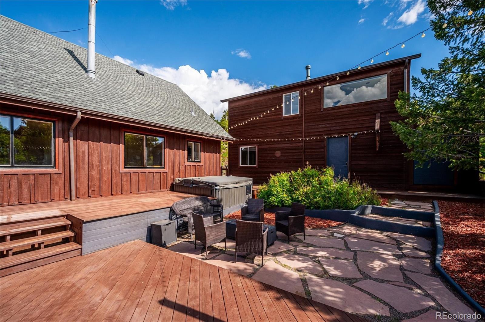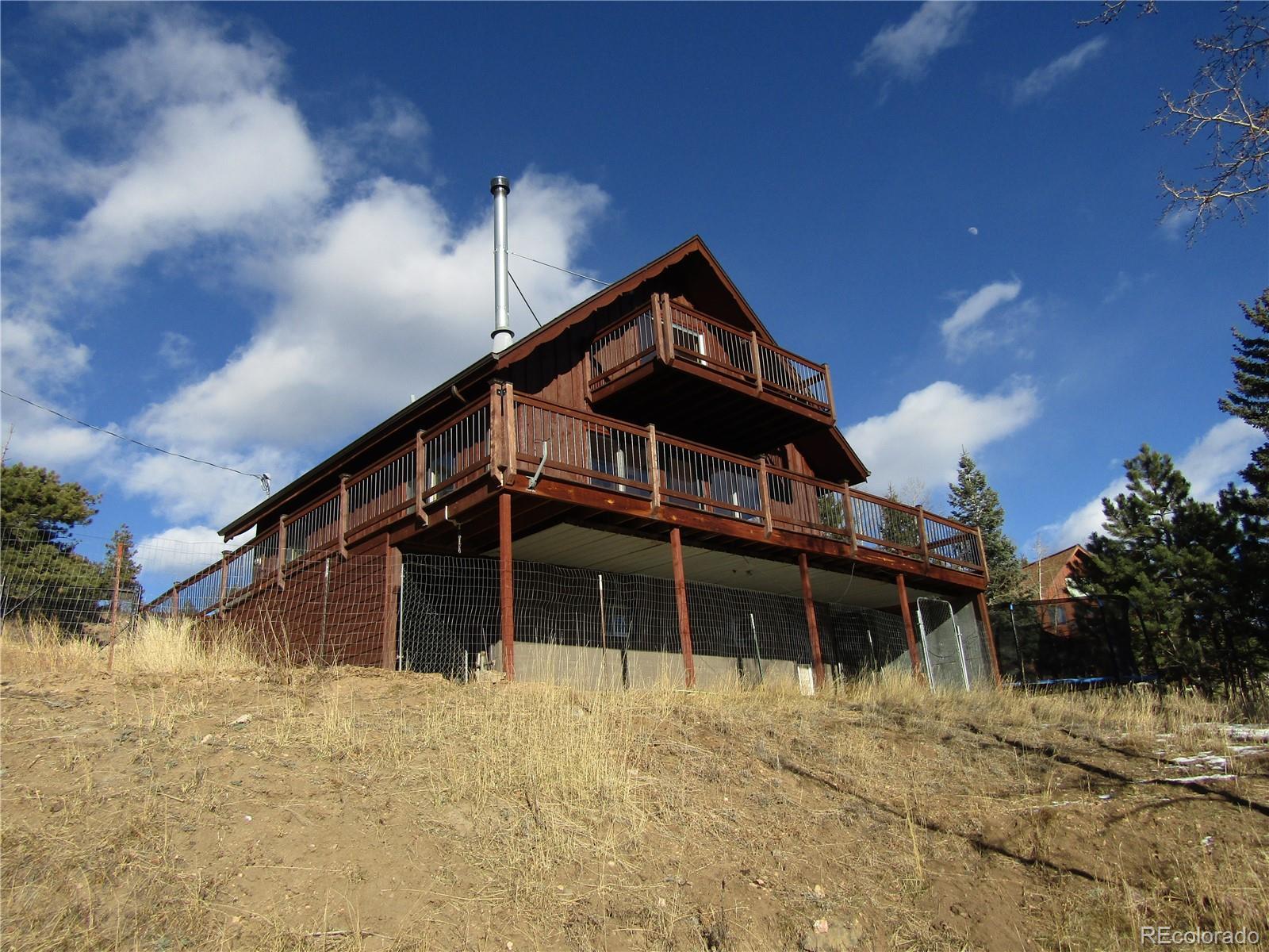 Welcome to Bailey! Enjoy quiet and peaceful living in Burland Ranchettes! Well maintained mountain home with a detached garage that has a finished studio above! Awesome expansive mountain views and sun drenched southern exposure! Light and bright with nice views from every window! Updated fixtures, a new half bath on the main level and gleaming refinished wood floors. The living room features four large windows to bring in the outdoors and a cozy wood stove for warm winter nights. The primary bedroom has a balcony with more serene views! Enjoy quiet sunsets from the wrap around deck! Extensive deck and patio areas great for entertaining and those outdoor get togethers! The walkout basement with rec room also connects to the fenced dog run. There are endless possibilities with the 30' x 22' detached garage that features a work shop w/220V, half bath and natural gas furnace and an additional 660 SF of finished living area upstairs, possible ADU! This home is conveniently located within 5 minutes to Hwy 285, 20 minutes to Conifer shopping and restaurants and an hour to Breckenridge!