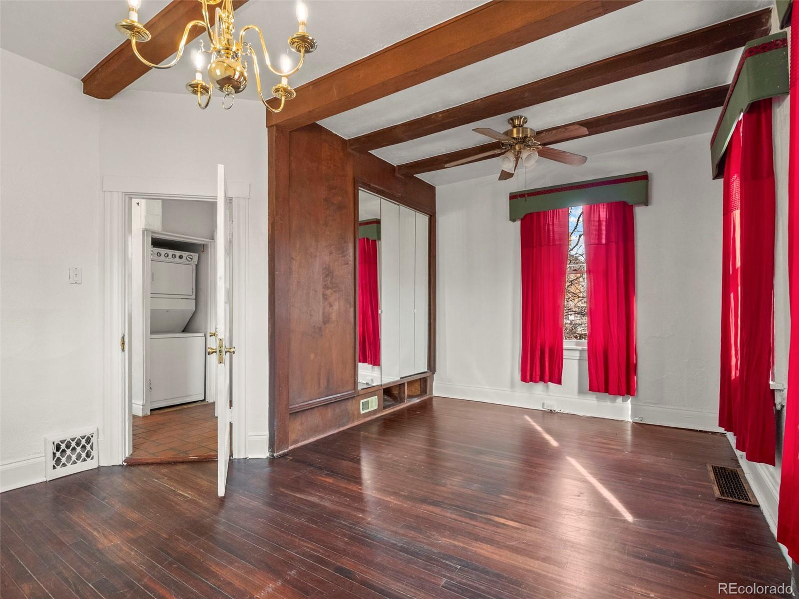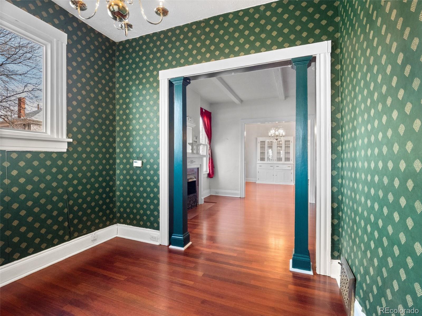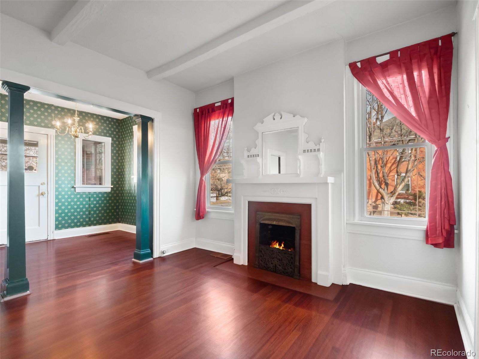 Historic half duplex with stunning original details in Capitol Hill with NO HOA, just a few blocks from Cheesman Park and close to museums, restaurants, and shopping. This home lives like a standalone residence, beginning with a welcoming front porch that leads into a generous living room, anchored by an incredible original fireplace with a tile surround, a wood mantel, and a built-in mirror. Lots of newer windows on the north side add charm while filling the space with natural light. The living and dining rooms connect through a beautifully framed opening that highlights gorgeous built-in storage. The kitchen is bright, with clean countertops, Stainless Steel Appliances, and ample storage. One bedroom sits just off the living room with a large window and original hardwood floors, while the primary bedroom is privately located toward the back of the home. The Primary was originally two bedrooms that could be easily converted back. The basement offers excellent storage and bonus space ideal for a bedroom, home gym or office. Enjoy a private backyard and patio perfect for grilling or relaxing. The backyard backs to the alley, offering potential for off-street parking or a future garage. Full of natural light and original character, this beautifully updated 2-bedroom (potentially 3), 1-bath home blends historic charm with modern convenience in one of Denver’s most desirable neighborhoods. Located minutes from Cheesman Park, the Capitol, great restaurants, and downtown Denver—this is a rare opportunity you won’t want to miss.