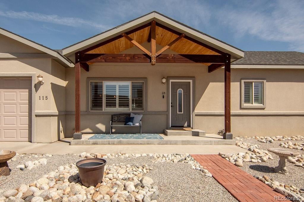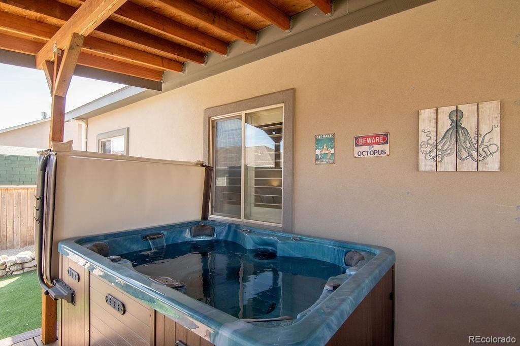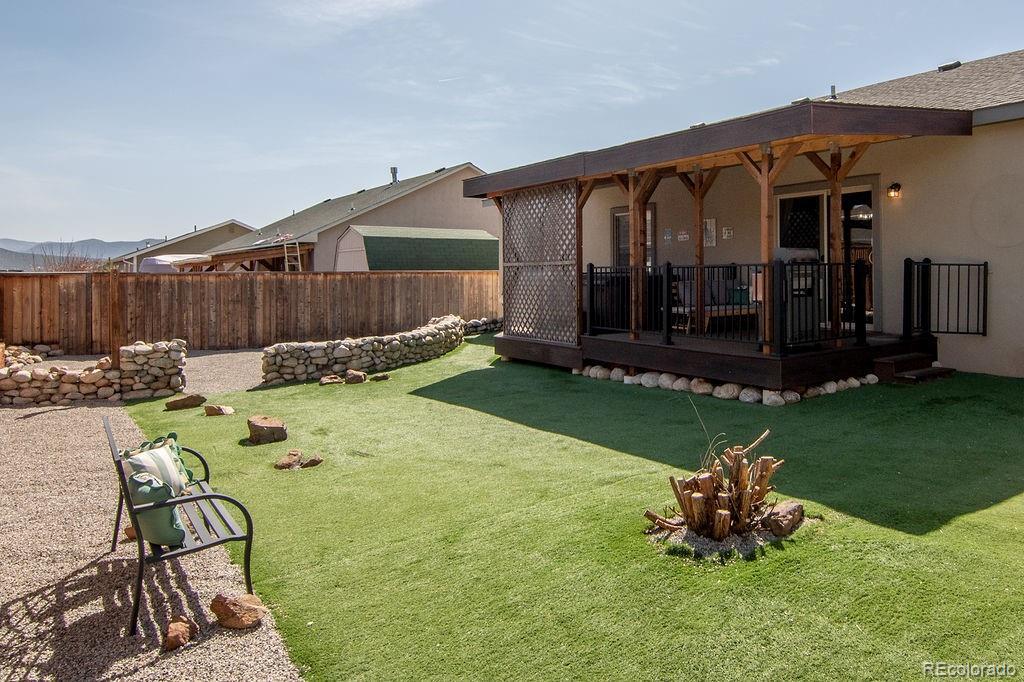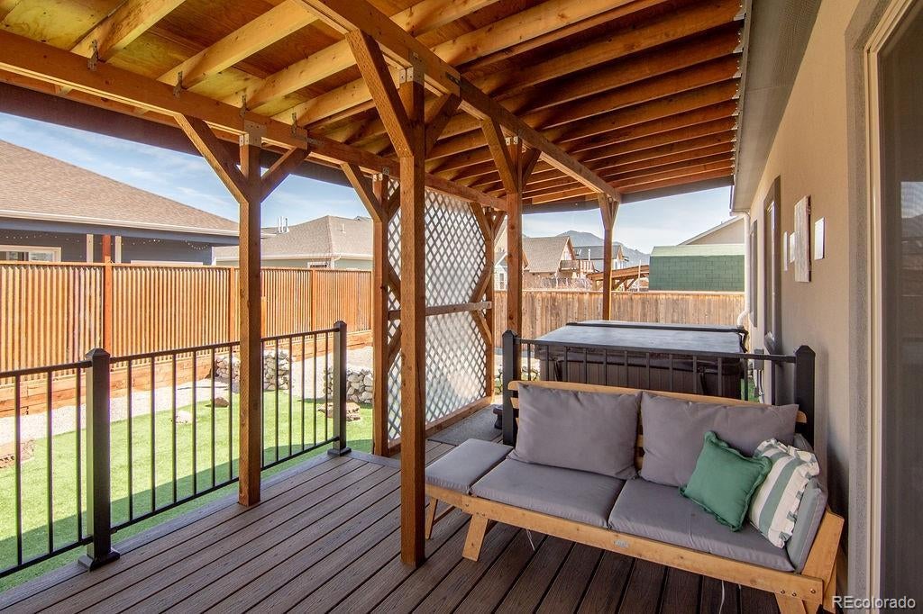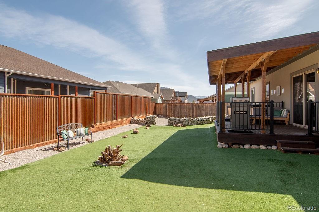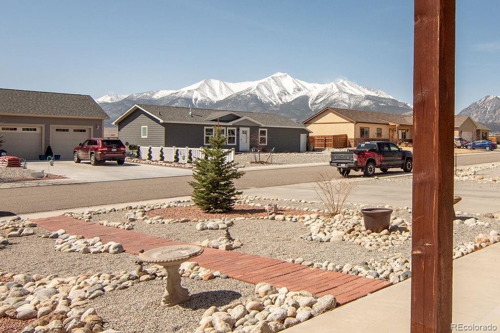 This beautifully upgraded 3-bedroom, 2-bath home offers 1,619 square feet of thoughtfully designed living space with mountain views, high-end finishes, and an exceptional outdoor retreat. From the moment you step inside, vaulted ceilings, a stunning floor-to-ceiling built-in bookcase with rolling ladder, and sweeping Mt. Princeton views create a warm and impressive focal point. The open living space flows into a well-appointed kitchen featuring tall cabinetry, generous counter space, a large bar-top island, walk-in pantry, and a built-in workstation, making it perfect for entertaining, everyday living, or working from home. The primary suite is a peaceful retreat with space for a king-size bed and sitting area, a walk-in closet with custom shelving, a second storage closet, and a spacious en-suite bath with double vanities and a walk-in shower. Two additional bedrooms, each with custom closet organizers, share a stylish full guest bath. Wood plantation shutters add timeless character throughout the home. The oversized laundry and mudroom includes excellent storage, a broom closet, and a smart electronic pet door, while the immaculate insulated two-car garage and radon mitigation system provide both convenience and peace of mind. Step outside to a private backyard oasis with a covered Trex deck and hot tub, low-maintenance turf and xeriscaping, a rock wall, in-ground fire pit, extra-tall privacy fencing, a double side gate, and a detached storage shed for all your Colorado gear. Just minutes from downtown Buena Vista, local shops and restaurants, and the Arkansas River, this home offers the perfect blend of comfort, style, and mountain-town living. Schedule your private showing today.