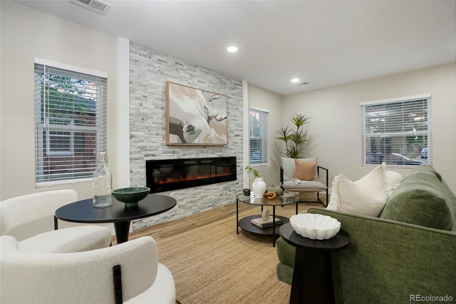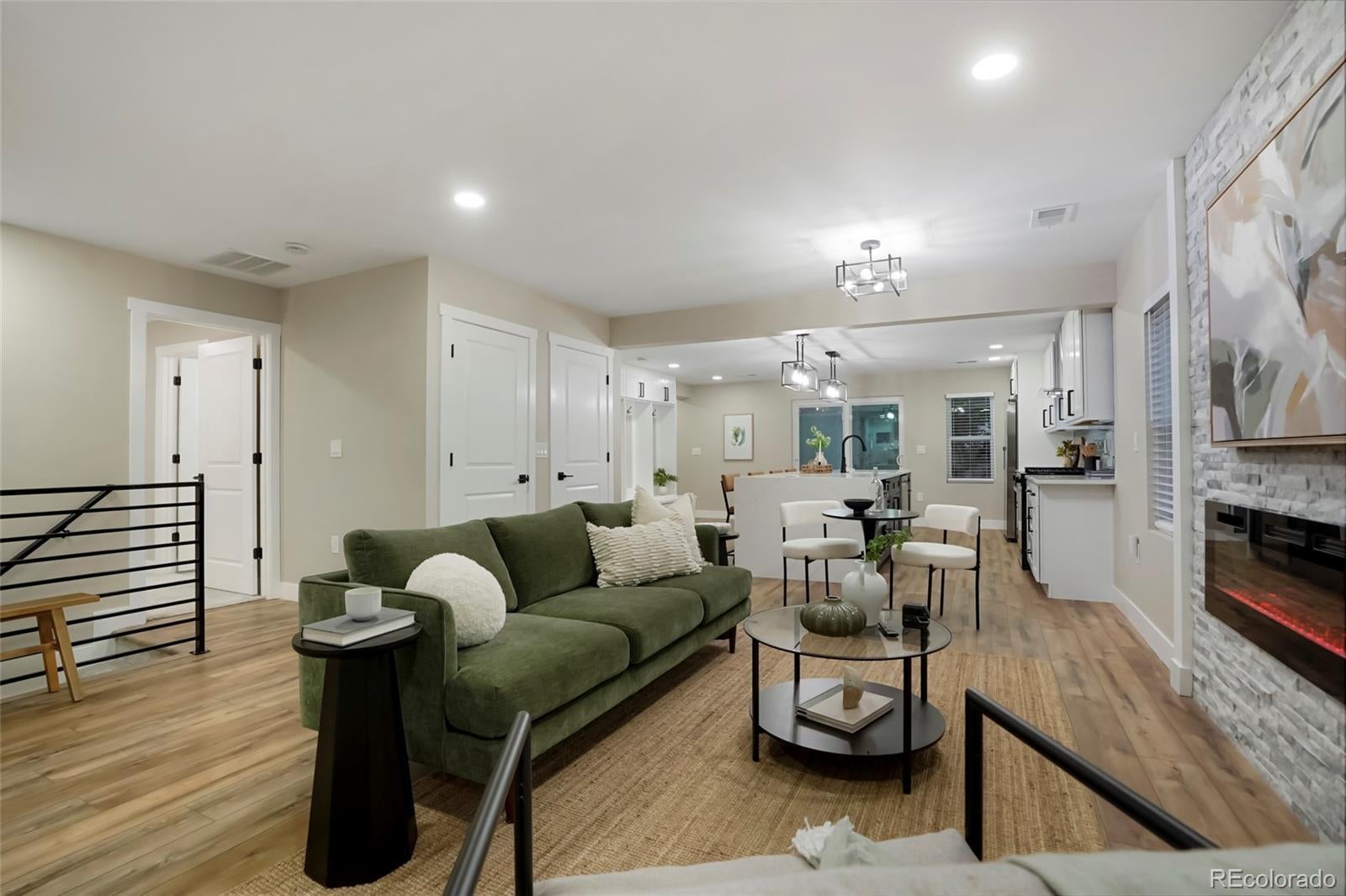 0.6 mi to City Park • EV-ready garage • Finished basement with flex space Fully remodeled 4-bed, 3-bath home offering 2,701 sq ft of modern living near City Park and downtown Denver. A 1945 classic reimagined with contemporary systems and design. The open-concept main level centers on a chef’s kitchen with quartz countertops, large island, blue subway-tile backsplash, and stainless appliances. Dual linear fireplaces warm the living and dining areas. The primary suite includes a custom tile shower and heated bathroom floors. One additional bedroom and a full bath, with heated floors complete the main level. The finished basement adds a versatile flex room ideal for office, gym, or media use plus two additional bedrooms and bath, with heated floors. Upgrades include new furnace, central A/C, tankless water heater, smart lighting, and updated plumbing and electrical. Detached two-car garage features epoxy flooring and EV outlet. Landscaped front and back yards with irrigation and privacy fencing provide outdoor space for dining or gardening. Located in Denver’s City Park North area, approx 0.3 mi to Honey Hill Café, 0.5 mi to City Park Golf Course, and 1.0 mi to the Denver Zoo. Easy access to Colorado Blvd, I-70, and downtown. Honey Hill Café – 0.3 mi City Park Golf Course / City Park – 0.5 mi Denver Zoo & Museum of Nature and Science – 1.0 mi Spinelli’s Market – 0.7 mi RTD Bus Stop (Colorado Blvd) – 0.4 mi I-70 Access – 1.2 mi Downtown Denver – ~2.5 mi