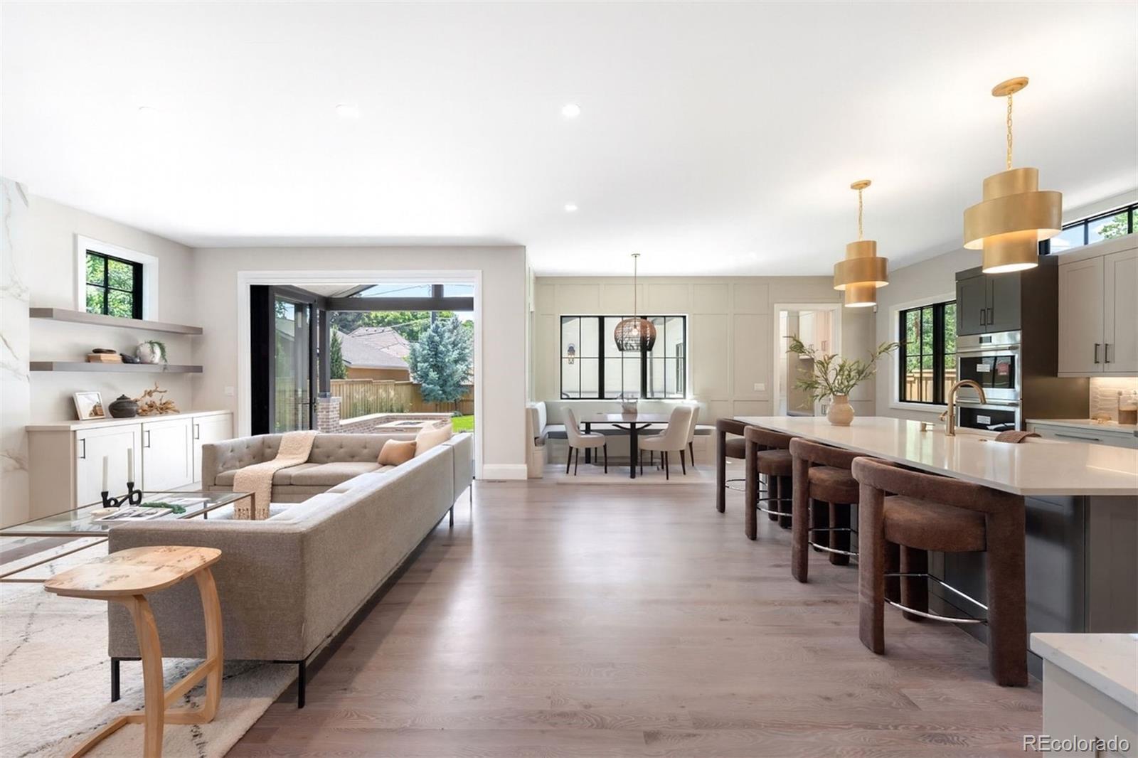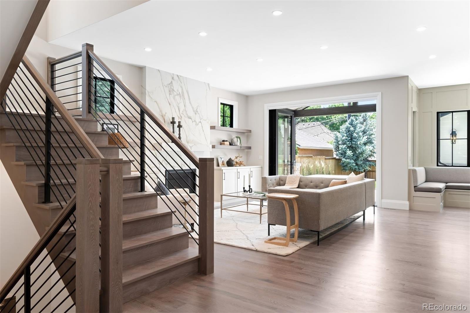 Positioned prominently on an east-facing lot in Observatory Park, this extraordinary new construction estate by Wiggs Custom Homes instantly impresses with over 6,100 square feet of innovative design and luxurious comfort. Custom site-finished white oak hardwood floors lead through an open floor plan perfectly crafted for elegant entertaining and effortless daily living. The formal dining room dazzles with statement lighting, while the expansive living room seamlessly transitions outdoors to a covered patio featuring a cozy built-in firepit and beautifully landscaped yard. The gourmet kitchen is a showstopper, featuring top-of-the-line Wolf & Sub-Zero appliances, chic textured tile, stunning quartz countertops, and sophisticated antique brass fixtures. Adjacent, a bright breakfast nook invites relaxed meals and intimate conversations. The main level also offers a stylish home office, a luxurious guest suite with a private bath, and a thoughtfully designed mudroom connecting to the attached two-car garage. Upstairs, unwind in the luxurious primary suiteāa serene escape with a lavish five-piece bath showcasing a soaking tub, steam shower, glamorous gold Brizo fixtures, and a spacious walk-in closet. Three additional bedrooms, each with private baths, a flexible loft perfect for relaxation or inspiration, and a conveniently located laundry room complete the upper level. The fully finished lower level is your entertainment oasis, boasting an expansive recreation room with a sleek wet bar, a dedicated media room ideal for movie nights, and two versatile bedrooms perfect as guest rooms, home gym spaces, or additional offices. Ideally positioned near top-rated Denver-1 schools, vibrant parks, and urban conveniences, this Observatory Park home offers an unmatched lifestyle defined by modern luxury and effortless style.