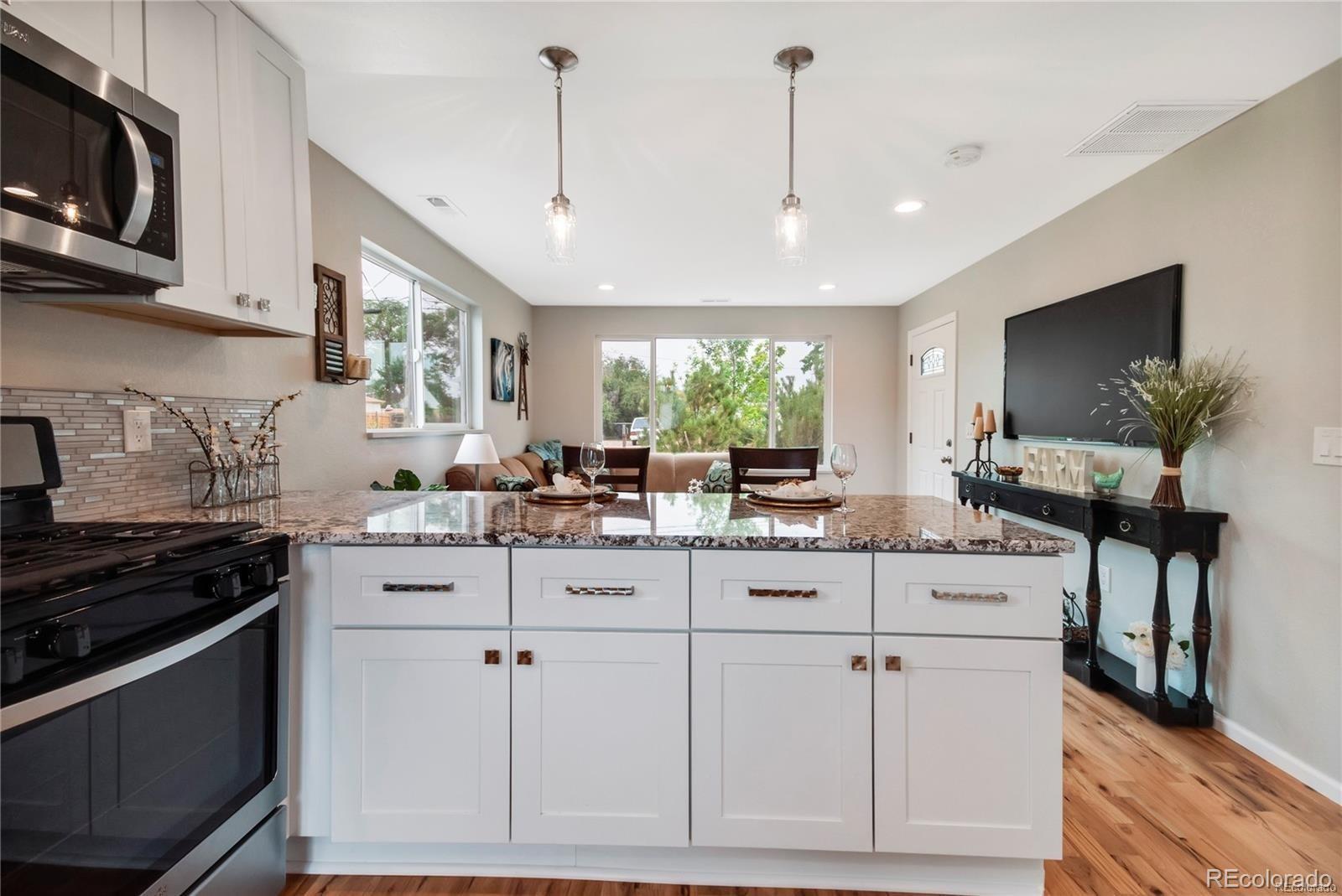Turn-Key Stunner on an Exceptional Lot – Prime Location & No HOA! This fully remodeled gem combines stylish interior upgrades with a one-of-a-kind outdoor retreat—all in a highly sought-after location with no HOA restrictions. Move-in ready, this home offers comfort, convenience, and endless opportunities for entertaining. Step into your private backyard oasis, where outdoor living takes center stage. A detached finished structure provides the perfect flex space for a home office, gym, or creative studio. The property also includes an oversized 409 sq. ft. detached garage, abundant off-street parking, and room to park an RV or boat—a rare combination of functionality and flexibility. Just off the kitchen, a 200 sq. ft. covered patio invites you to enjoy meals, morning coffee, or quiet moments outdoors, while the expansive backyard is ideal for both cozy evenings and lively gatherings. Inside, the upgrades continue with granite countertops, stainless steel appliances, and beautiful wood floors throughout. The open-concept layout is thoughtfully designed for modern living, blending everyday comfort with easy entertaining. And the location? Unbeatable. 5 minutes to Old Town Arvada 15 minutes to both Downtown Denver and scenic Downtown Golden 5 minutes to Costco, Walmart, Willis Case Golf Course, and Regis University With upscale finishes, versatile detached spaces, and an exceptional central location, this home is truly the complete package. Quick Close and buyer takes possession the day of closing. Photos are of 6245 W 53rd Ave (other side of the duplex that the owner sold 06-17-2025). ***** 6247 is the exact same floor plan and level of finishes as 6245.
