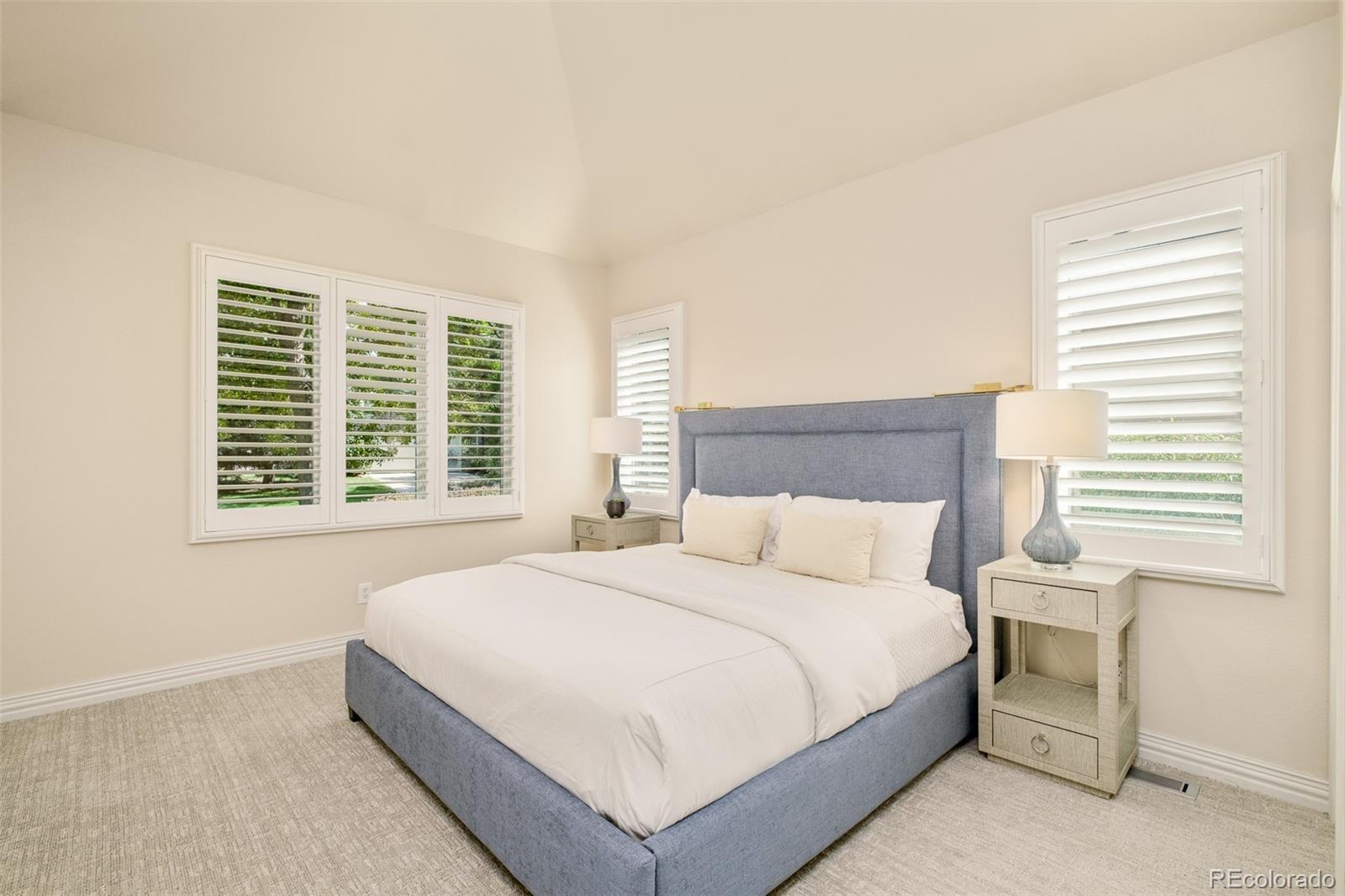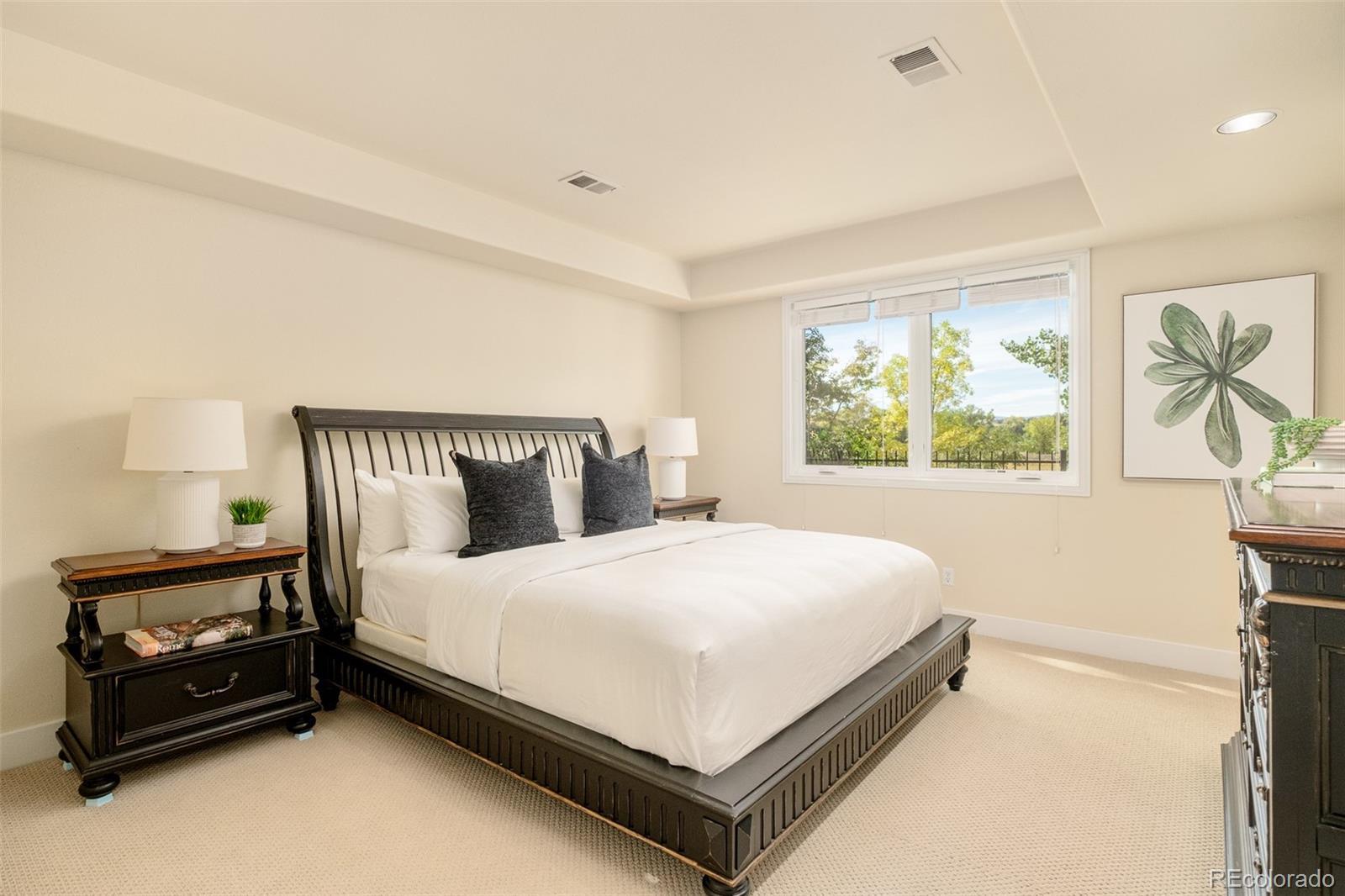 Welcome to 19 Blue Heron Drive, a rare opportunity to enjoy serene privacy and luxury main-floor living with breathtaking views backing directly to the Highline Canal. This 6-bedroom, 5-bathroom home is designed for comfort, elegance, and effortless entertaining. The main level is open and inviting, featuring a dedicated office, formal dining room, spacious living and family rooms, and a well-appointed kitchen with easy flow to the expansive upper deck - perfect for relaxing or hosting while overlooking the canal. A main-level guest suite provides convenience, while the highlight is the stunning primary suite with walls of windows framing the natural landscape. The spa-like primary bath boasts dual vanities, walk-in shower, and two private water closets. A massive walk-in closet with custom built-ins connects directly to a versatile bonus room ideal for a home gym, craft room, bedroom or second office. The main level is completed by a laundry room and abundant storage. The fully finished basement offers endless possibilities for entertaining with a spacious family room, access to the lower patio, and a beautifully designed bar. A second primary suite with sitting area, oversized walk-in closet, and luxurious bath creates a private retreat, while two additional bedrooms with a shared bath provide comfortable accommodations for family or guests. Located in the sought-after Bateleur community, this updated home combines timeless elegance with modern functionality, all set against the peaceful backdrop of the Highline Canal. Don’t miss your chance to own this one-of-a-kind retreat in Greenwood Village.