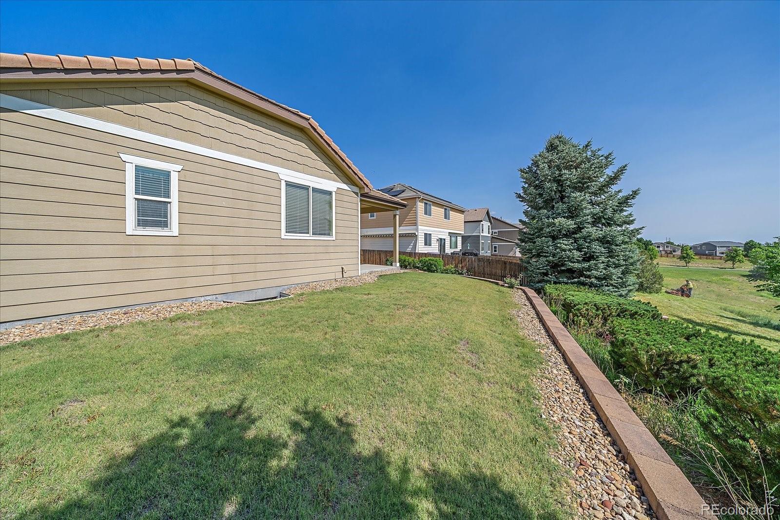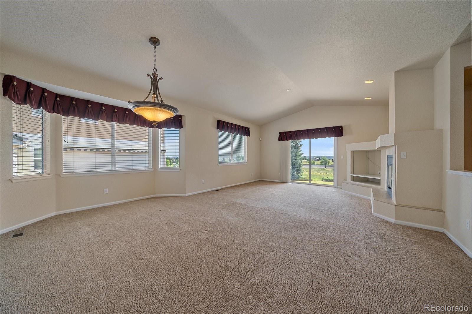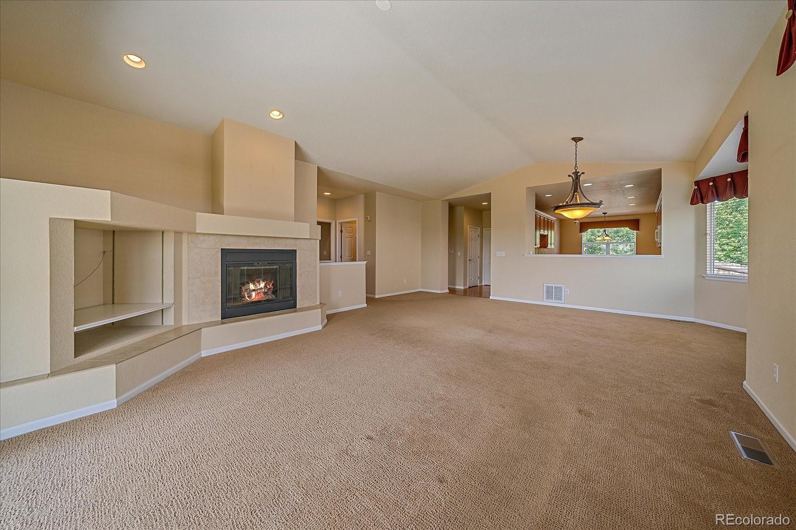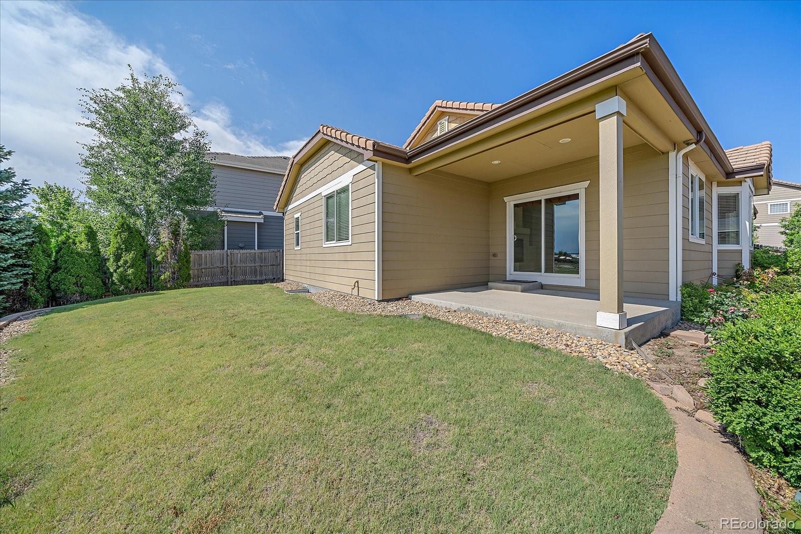 You won't want to miss this awesome ranch at the latest new price on open space in great neighborhood. It features an open floor plan with great room/dining room/kitchen all flowing together. You will love the vaulted ceilings and bright light throughout. The large great room showcases a gas fireplace and has ample room for all your furnishings. Step right outside onto the covered patio perfect for relaxing on or for cookouts and overlooks the peaceful open space. The kitchen featuring rich wood 42" cabinets with abundant space for all your things, wonderful counter space for meal prep, and wood floor. The eating nook is framed by a window letting in plenty of sunlight. The dining room is the ideal setting for casual get togethers or elegant dining parties. The spacious primary bedroom has a vaulted ceiling and adjoins a 5 piece bath with garden tub, large walk in closet, and heated tile floor. There is instant hot water in both the primary bath and secondary one. The colors are neutral throughout this home. The secondary bedrooms are both a good size with a convenient full bath in the hall. The yard is the perfect size and the cement tile roof is designed to stand strong against the elements and hail. The full unfinished basement is waiting for your design to finish how you like. This home is in the highly demanded Douglas County schools and is close to dining and shopping. The original owners have had such pride of ownership and this home is in perfect condition. Incredible new price reduction - priced to sell, come take a look.