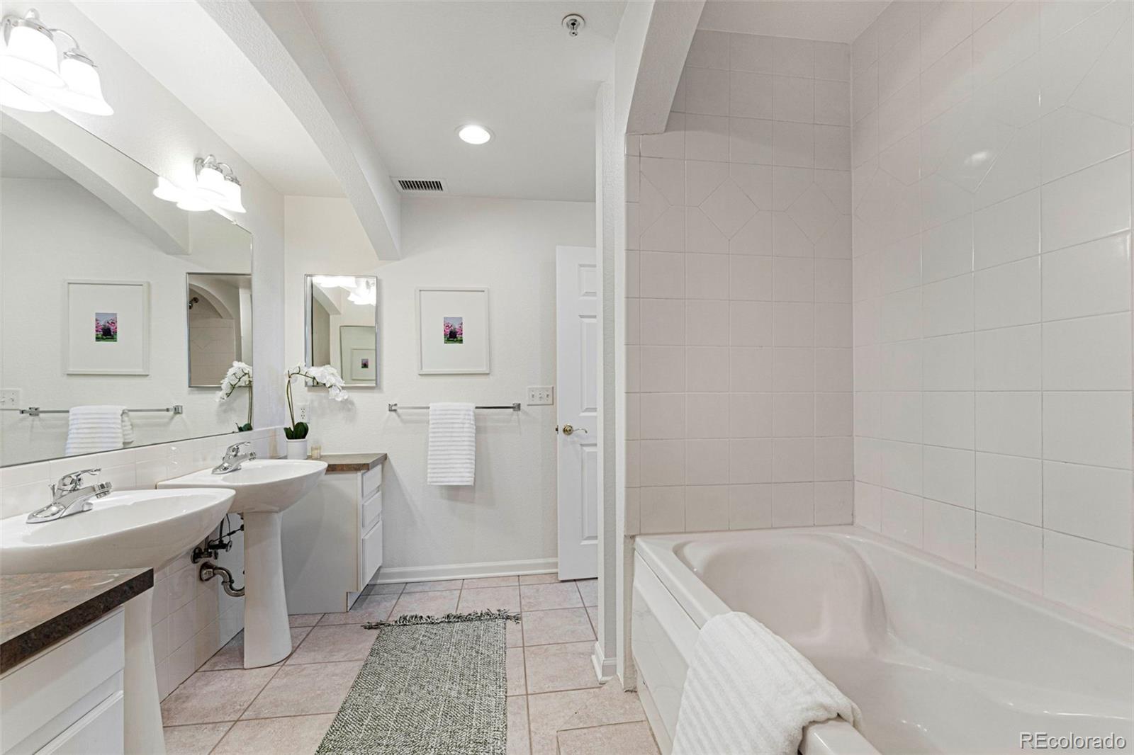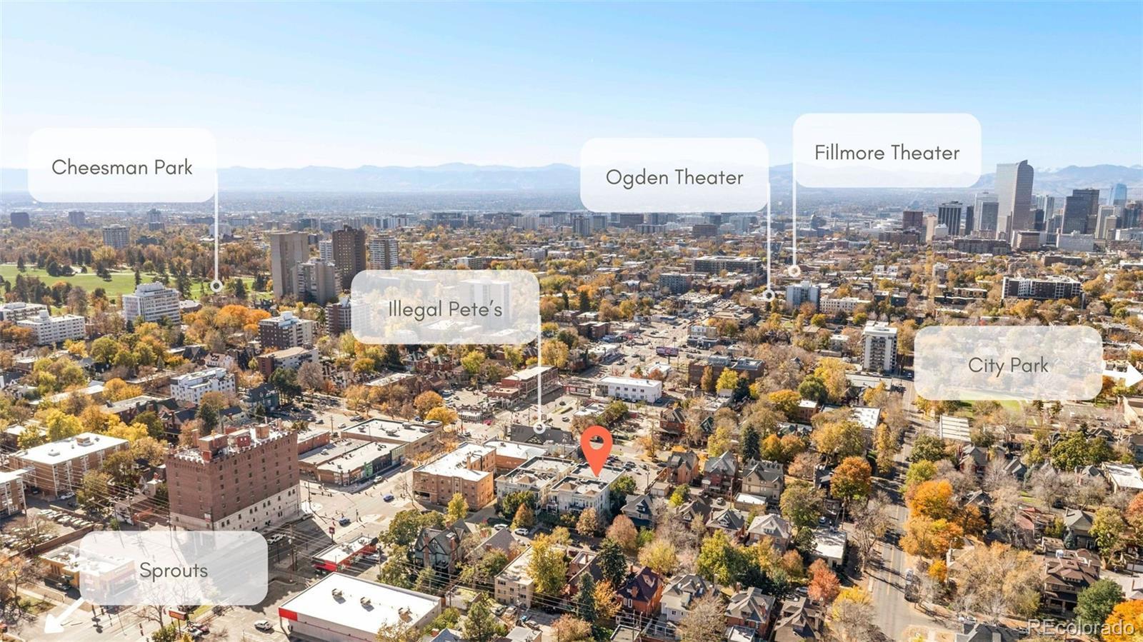 Welcome to this light-filled main floor condo in the heart of West City Park, offering unbeatable walkability to Denver’s favorite restaurants, coffee shops, parks, and entertainment, all just minutes from your front door. Freshly painted throughout, this spacious end unit features two large bedrooms and two full bathrooms, with abundant natural light from west-facing windows and 9-foot ceilings that enhance the open, airy feel. The primary suite features new carpet, a generous walk-in closet, and an en-suite bath with dual sinks and built-ins. The second bedroom works perfectly as a guest room or home office, complete with its own full bath and large closet. The living and dining areas flow seamlessly together, highlighted by engineered hardwood floors and a cozy gas fireplace. The updated kitchen boasts quartz countertops, a new refrigerator, sink, and faucet, plus an inviting eat-up bar, ideal for entertaining or casual dining. Step outside to enjoy one of the largest wrap-around patios in the building, perfect for morning coffee or evening gatherings. Additional features include: In-unit washer and dryer (included), secured heated garage parking with one assigned parking spot, private storage, and high-speed internet included with the HOA. Situated just steps from Colfax Avenue’s revitalizing corridor, this condo offers more than a home, it’s a stake in Denver’s future. The upcoming Colfax Bus Rapid Transit line, enhanced walkability, and exciting new mixed-use developments bring fresh retail and dining to this vibrant neighborhood. Perfect for those seeking a low-maintenance, urban lifestyle in one of Denver’s most dynamic areas.